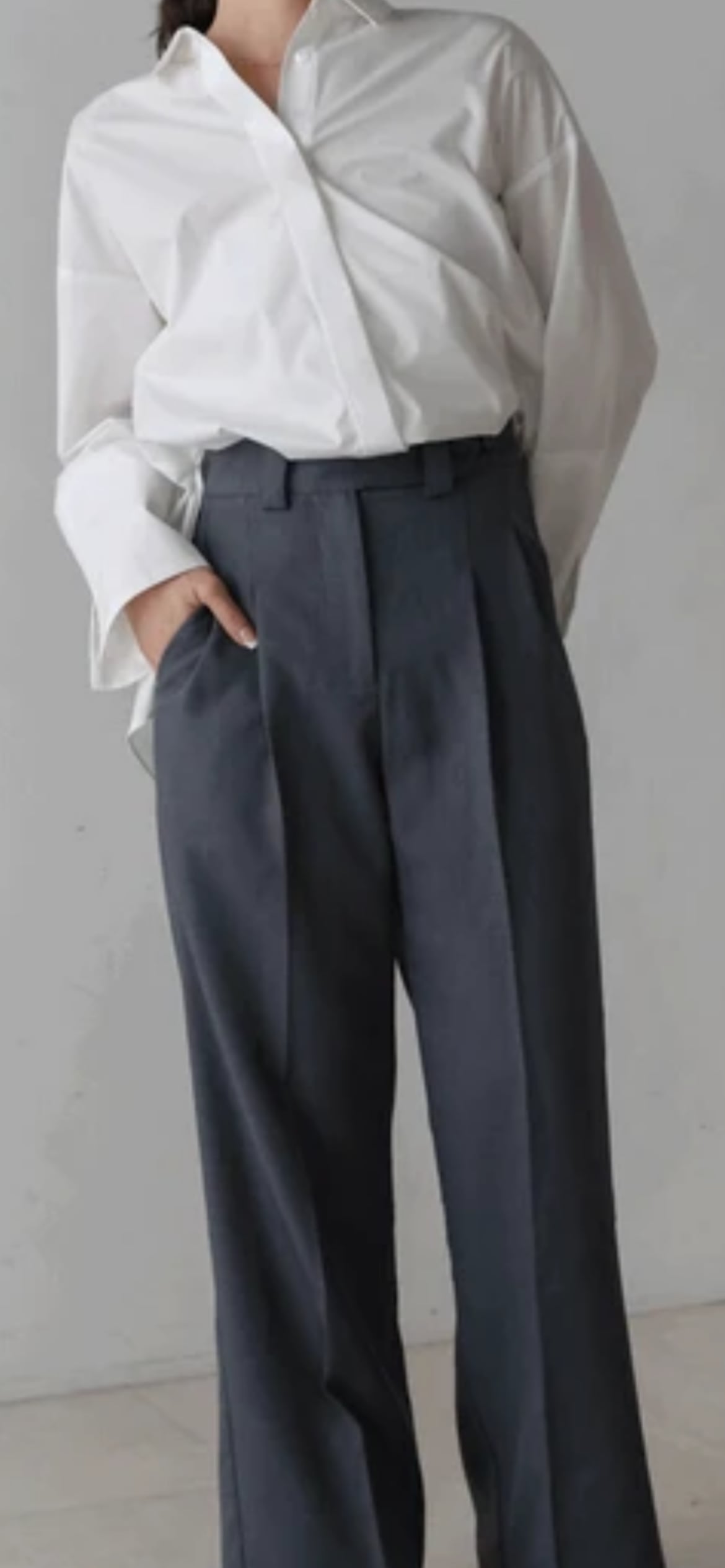 ハイウエストシルエットが気になる腰回りをすっぽりとカバーしてくれる、着痩せパンツ。