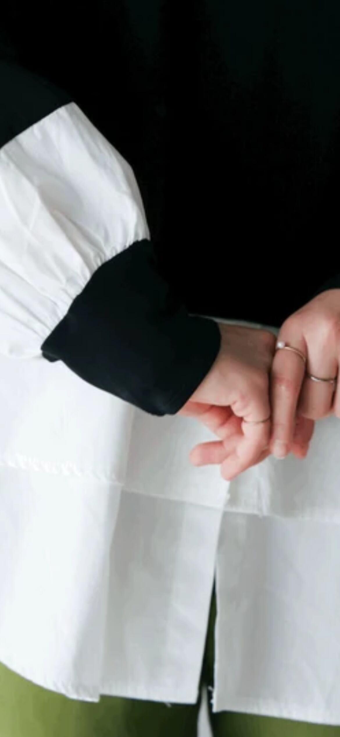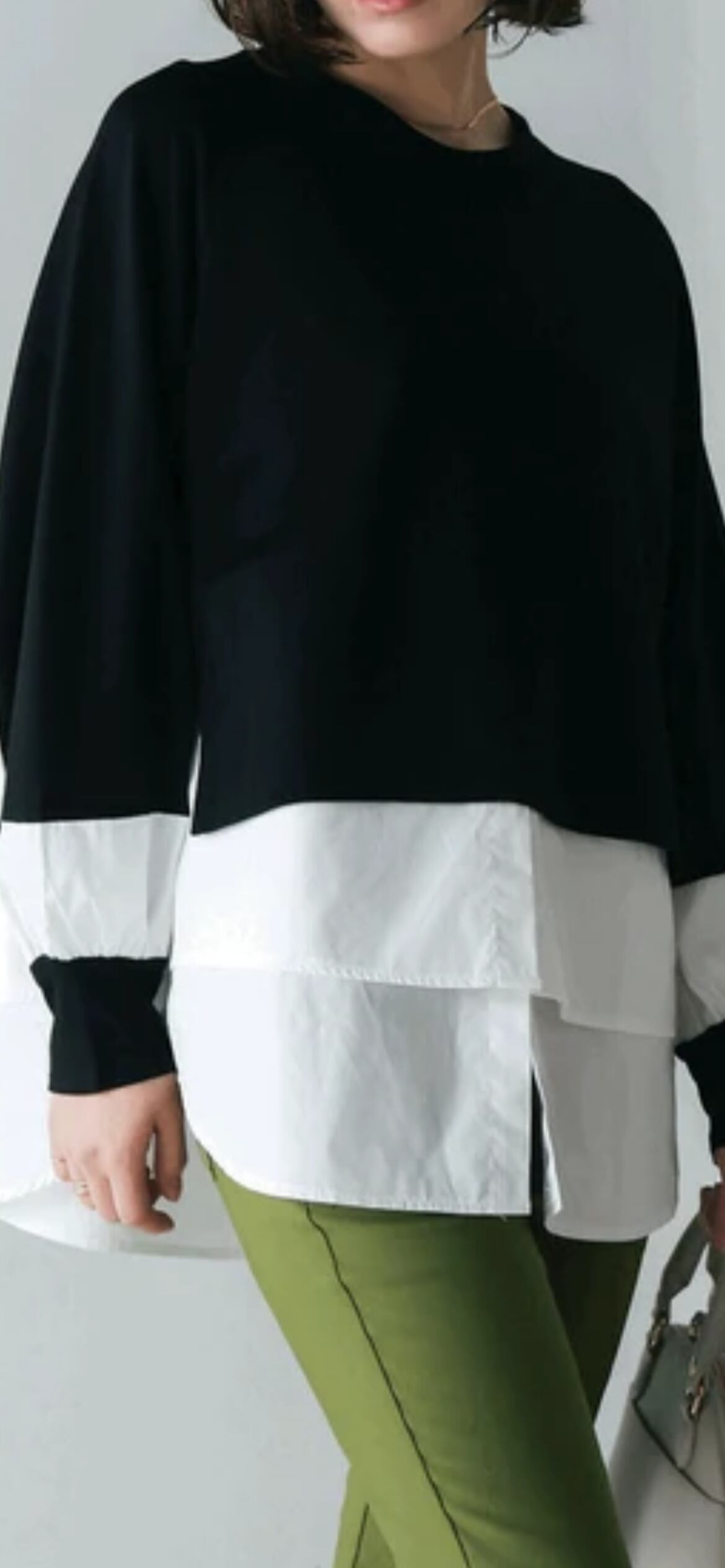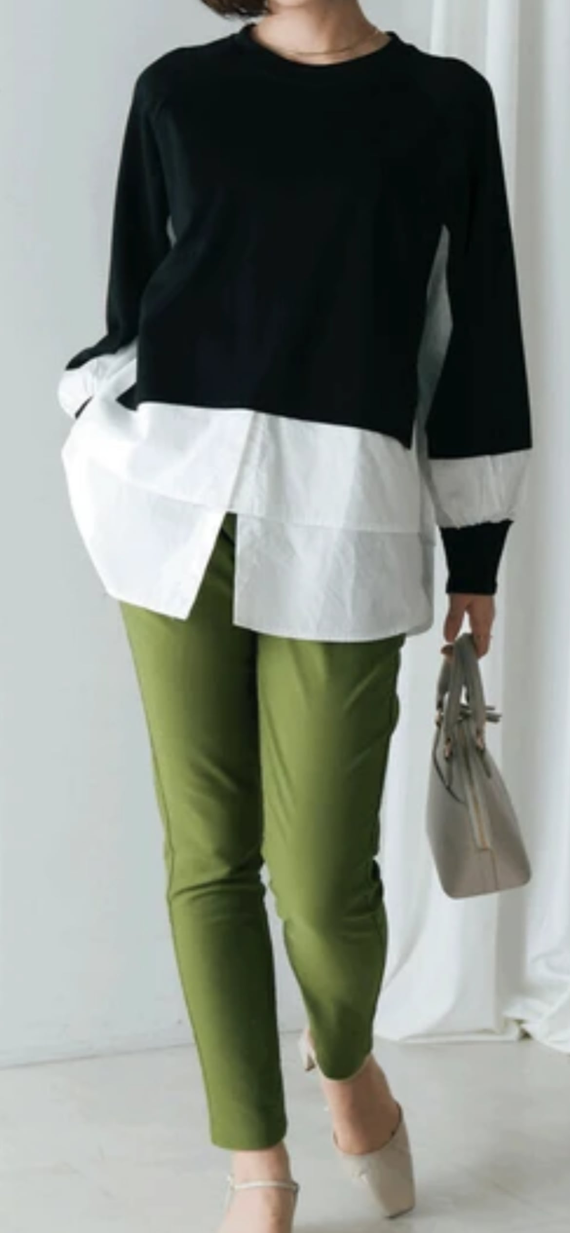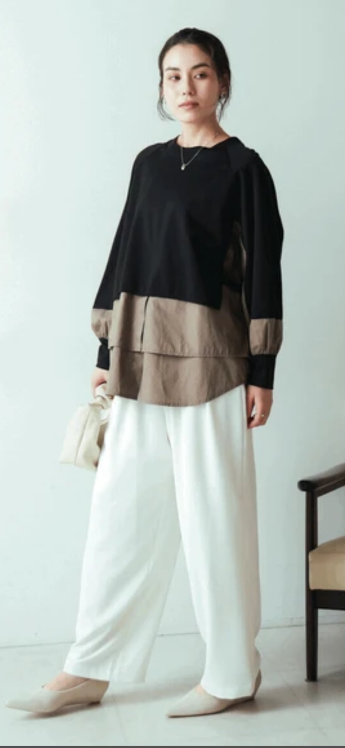 裾の異素材の切り替えが、さりげなく個性を楽しめます。