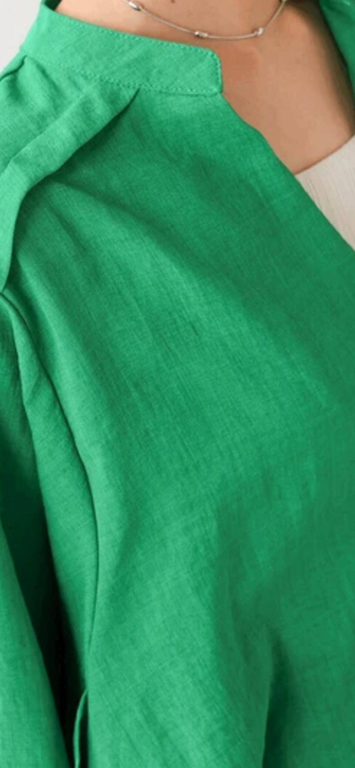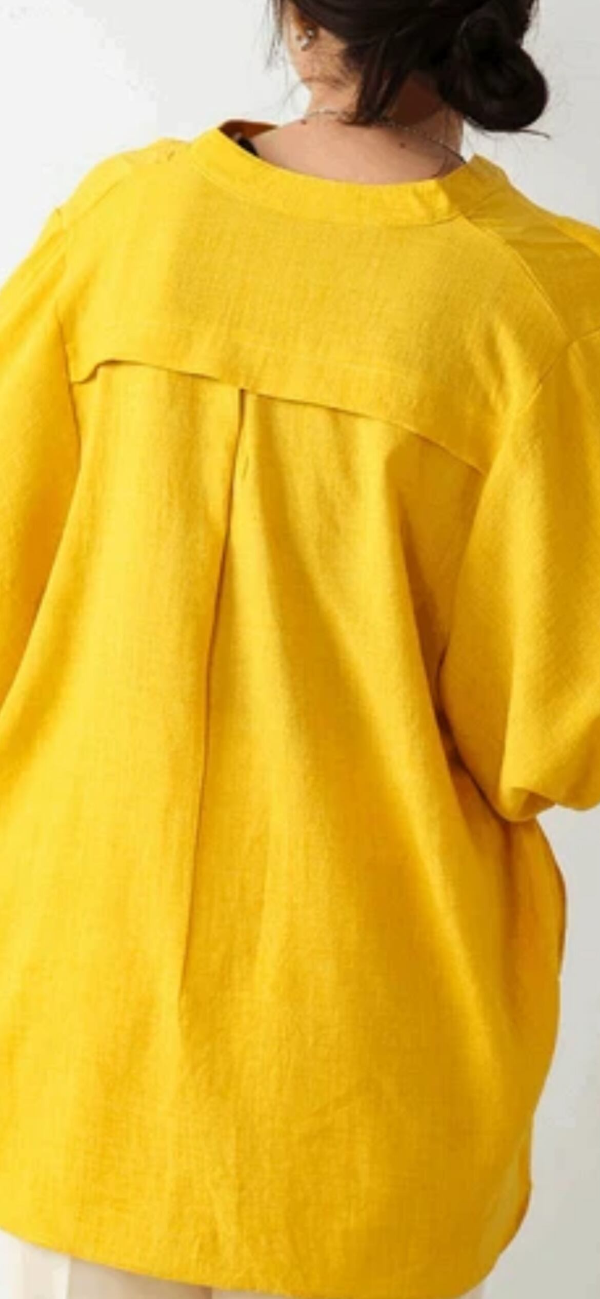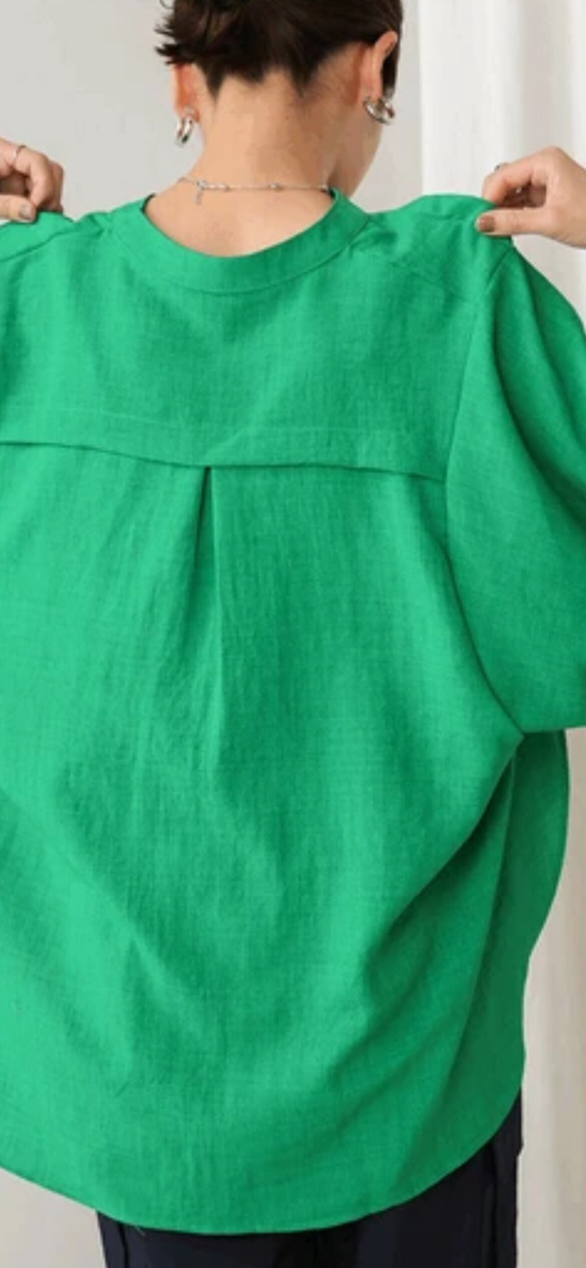長すぎない着丈と、スキッパーデザインがすっきりとした印象に。