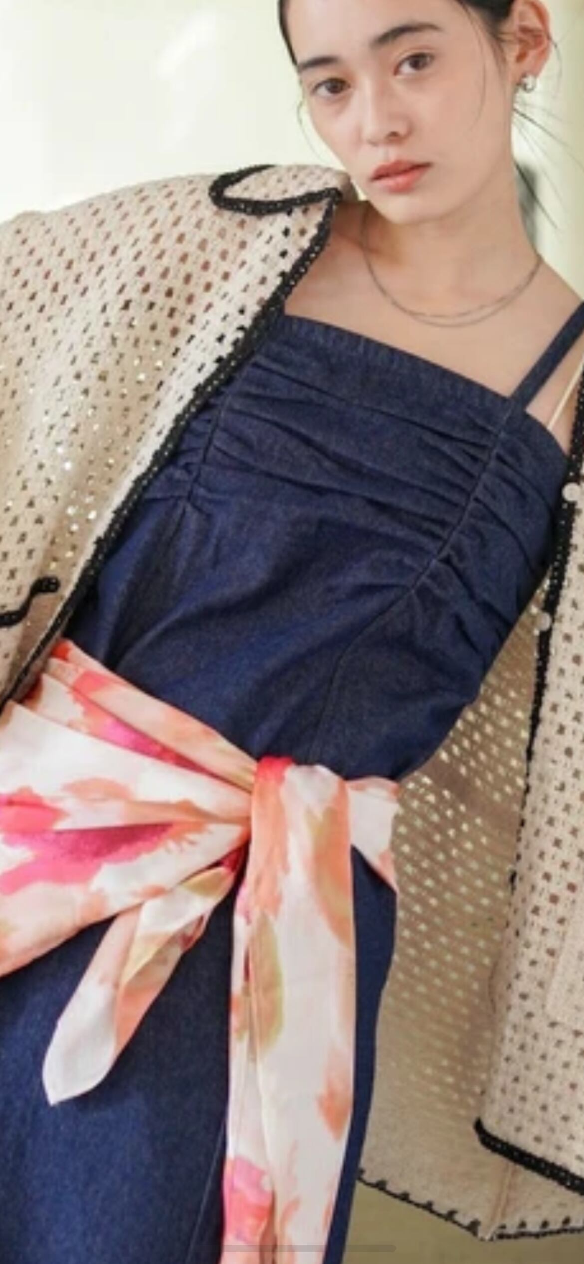 大判サイズなのでシンプルなトップスの上からたすき掛けにしたり、デニムパンツの上から腰に巻いたり幅広くお使いいただけます。