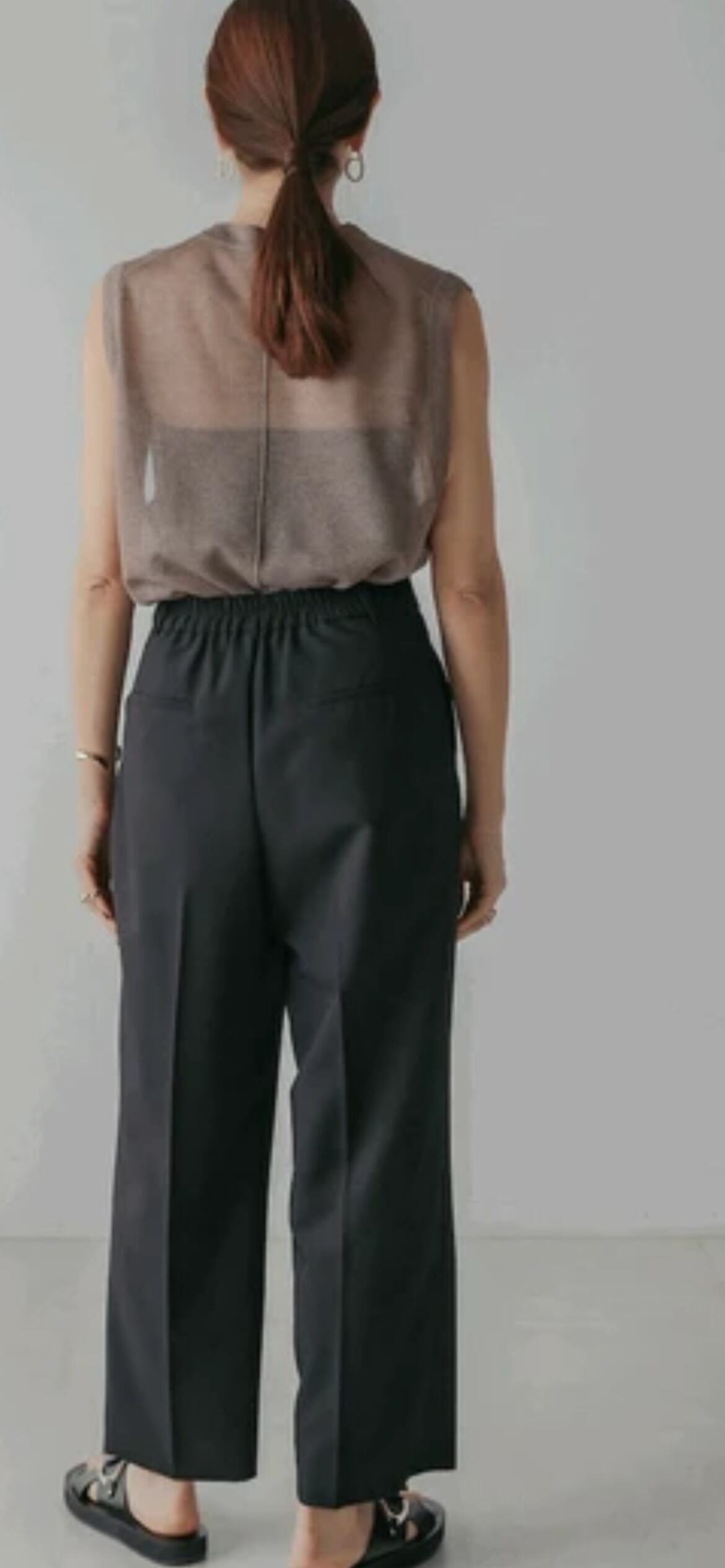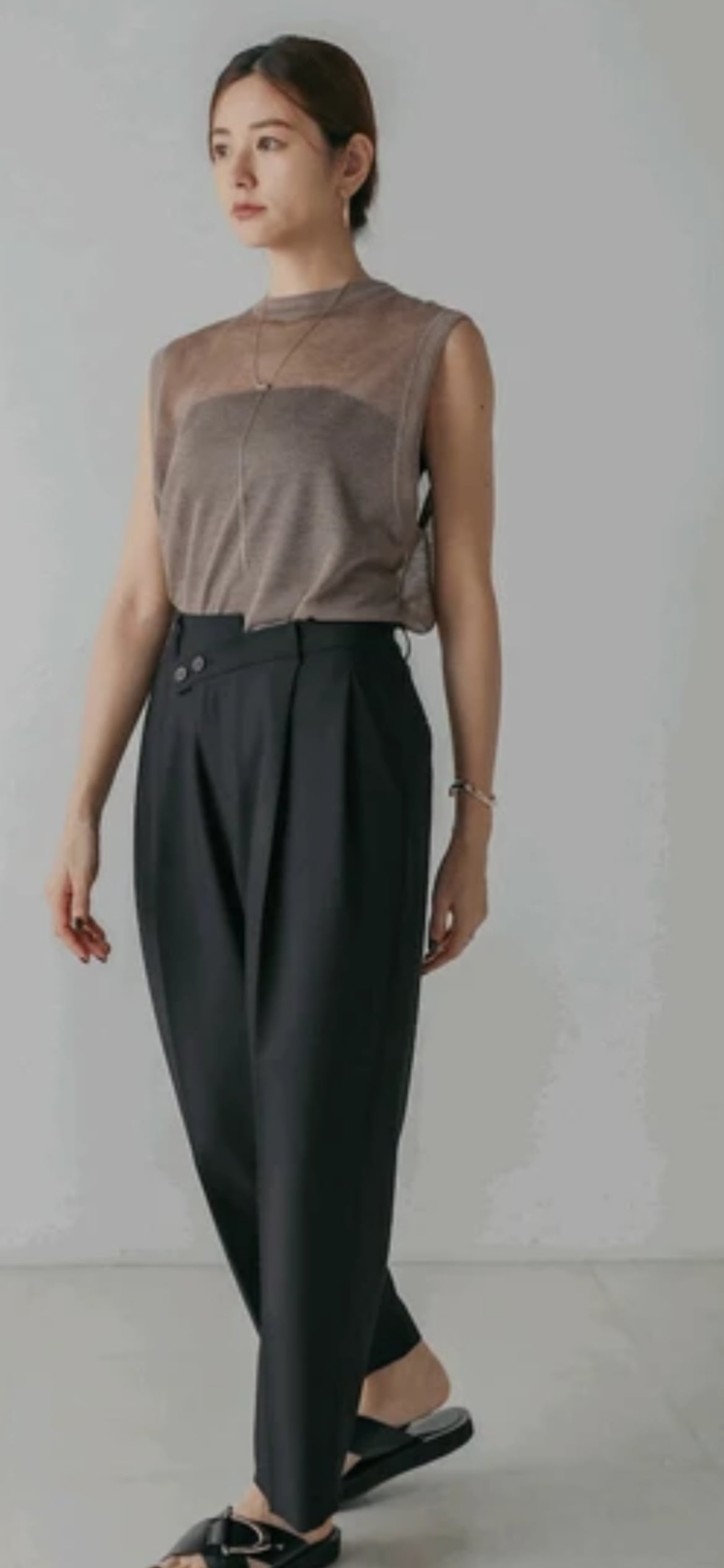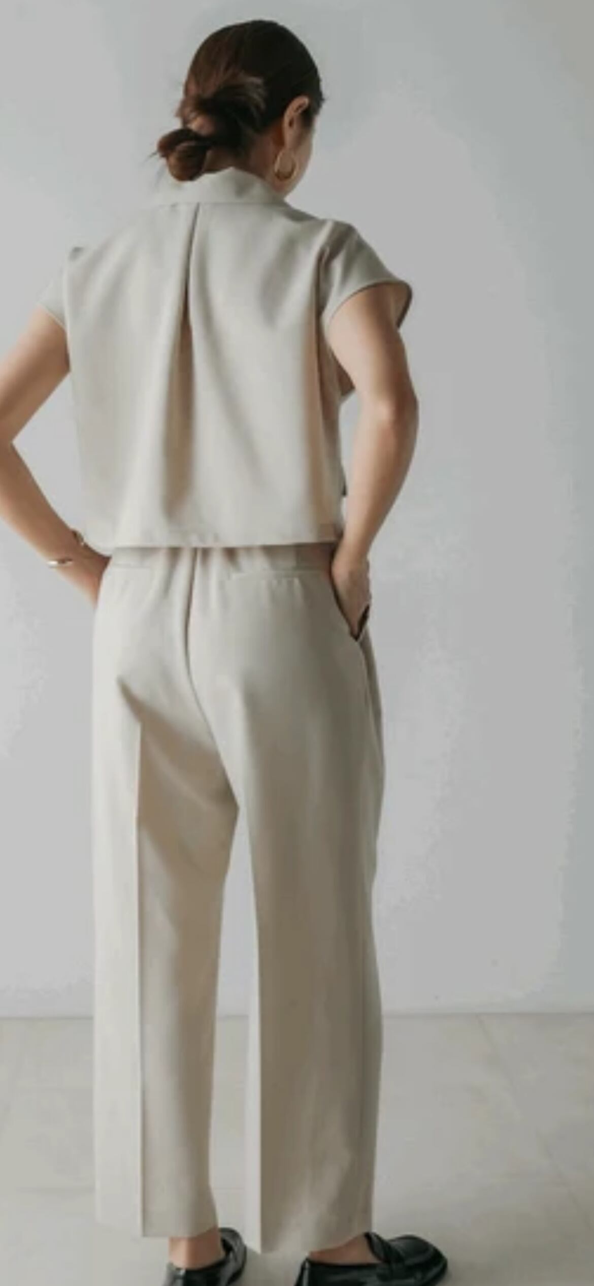 深めに入ったタックが縦ラインを強調してくれます。