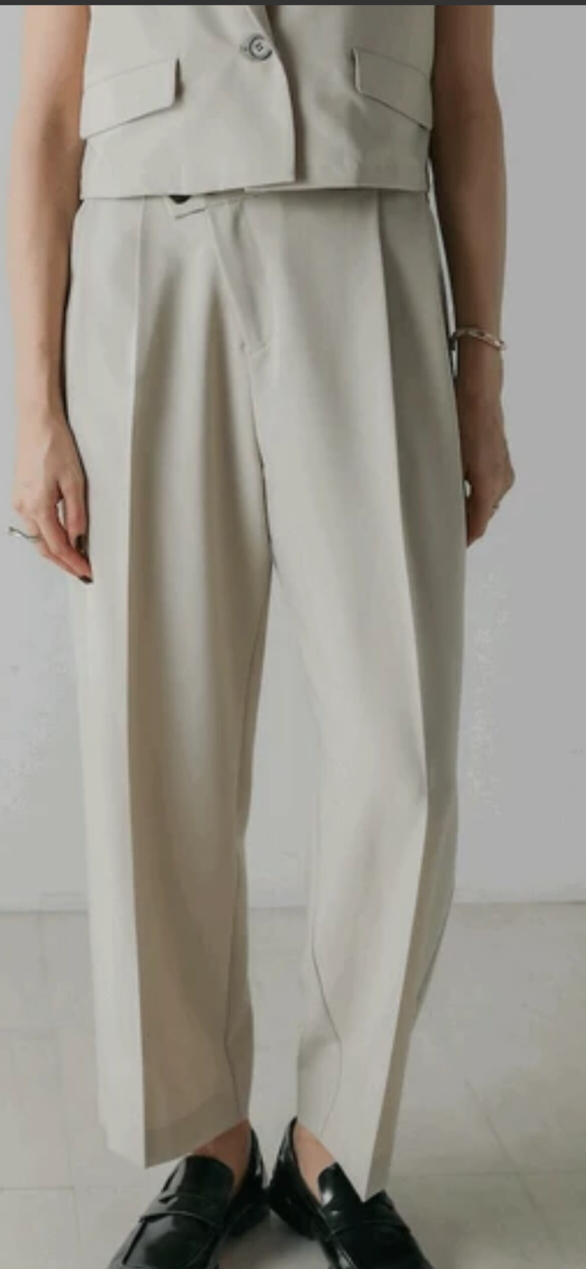 ウエストのクロスがアクセントの効いた”美”シルエットパンツ。