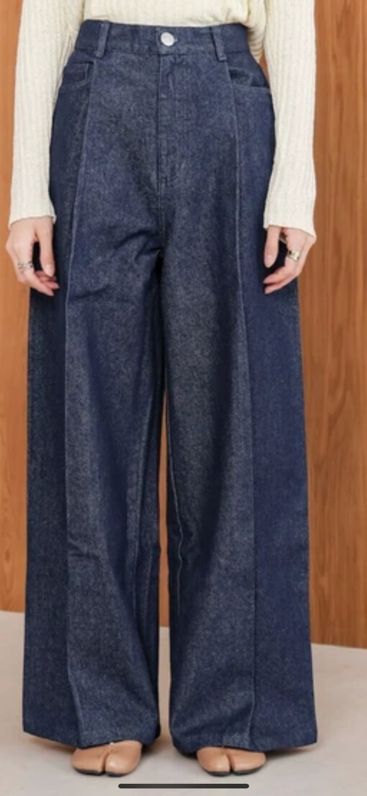 フロントのタックが脚長効果バツグンのデニムパンツの登場です!計算されたパターンで360度どこから見ても綺麗なシルエットを実現してくれます◎縦のラインを意識したタックは深めに取っており、裾に向かって広がるラインはお尻回りもすっきり見せてくれる優秀なアイテムです。普段ワイドパンツを穿かない方も、また普通のデニムに飽きた方にもぜひ手に取っていただきたい1本です。