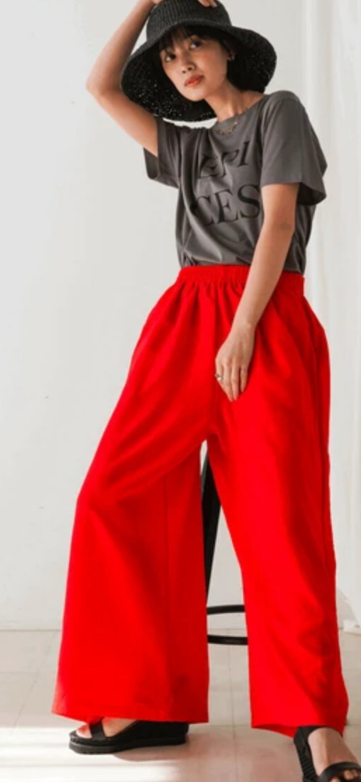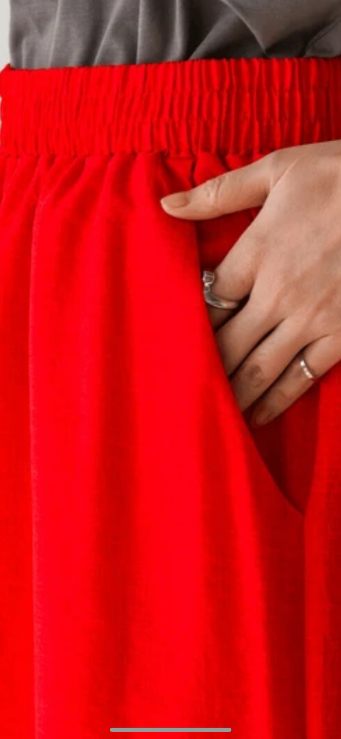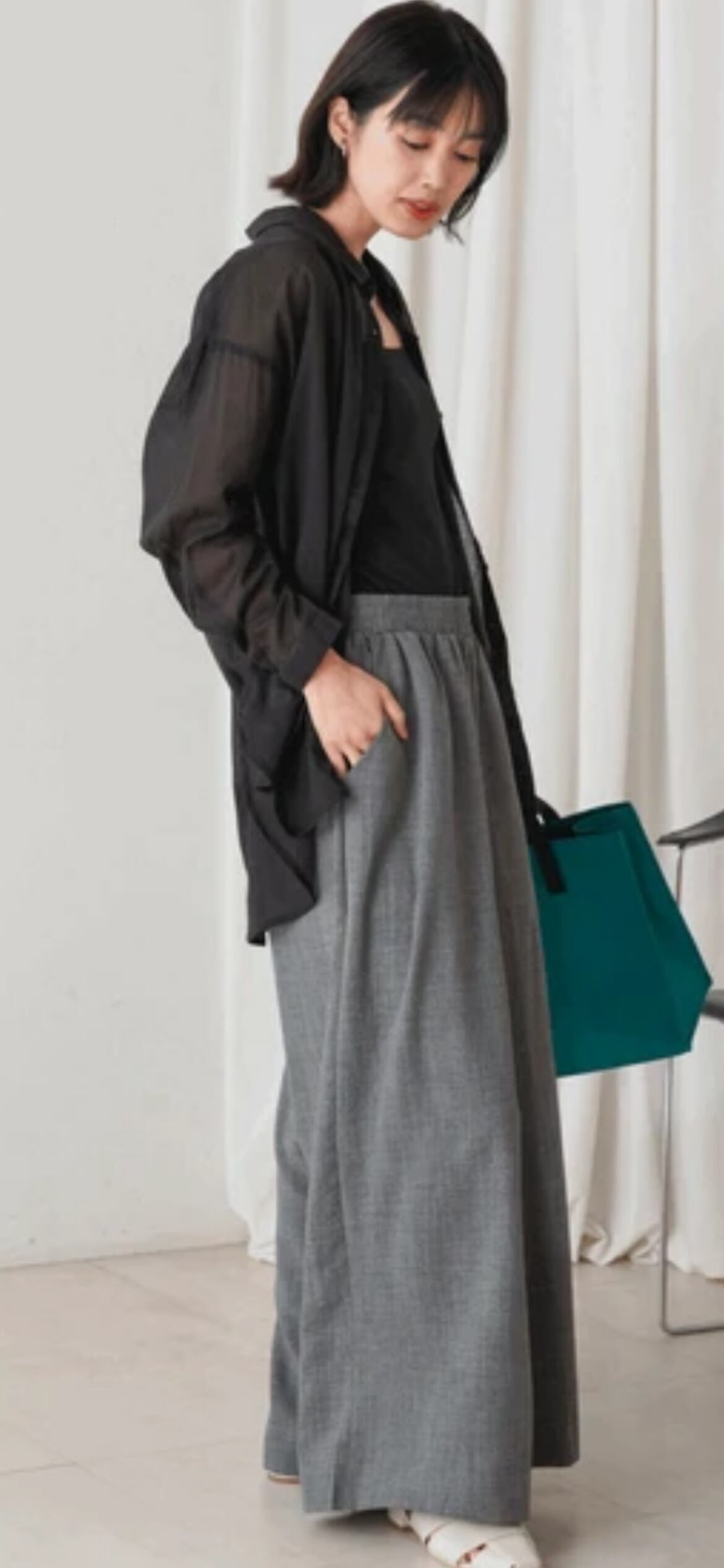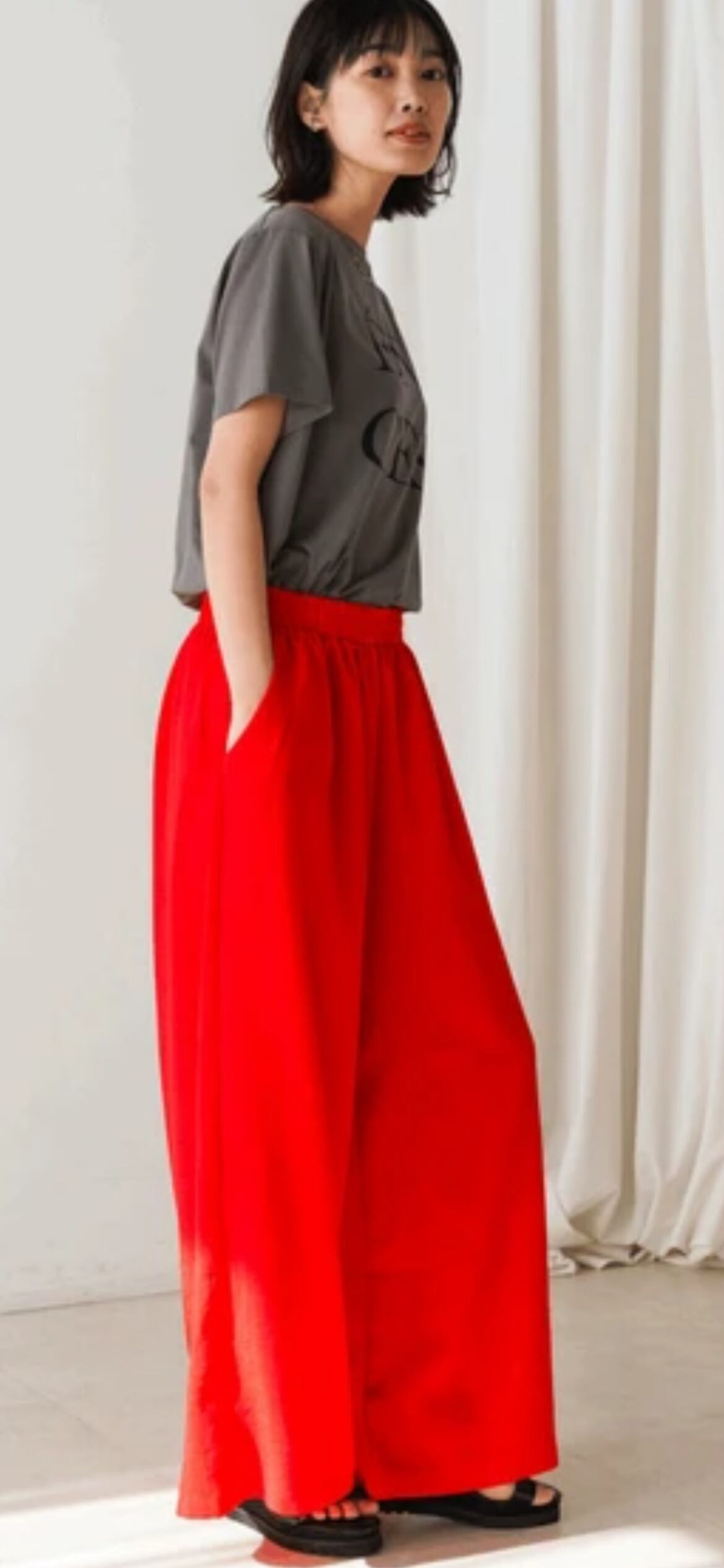 ワイドなシルエットが気になる部分をカバーしながらも、動くたびにふんわり揺れて女性らしさを演出します。
