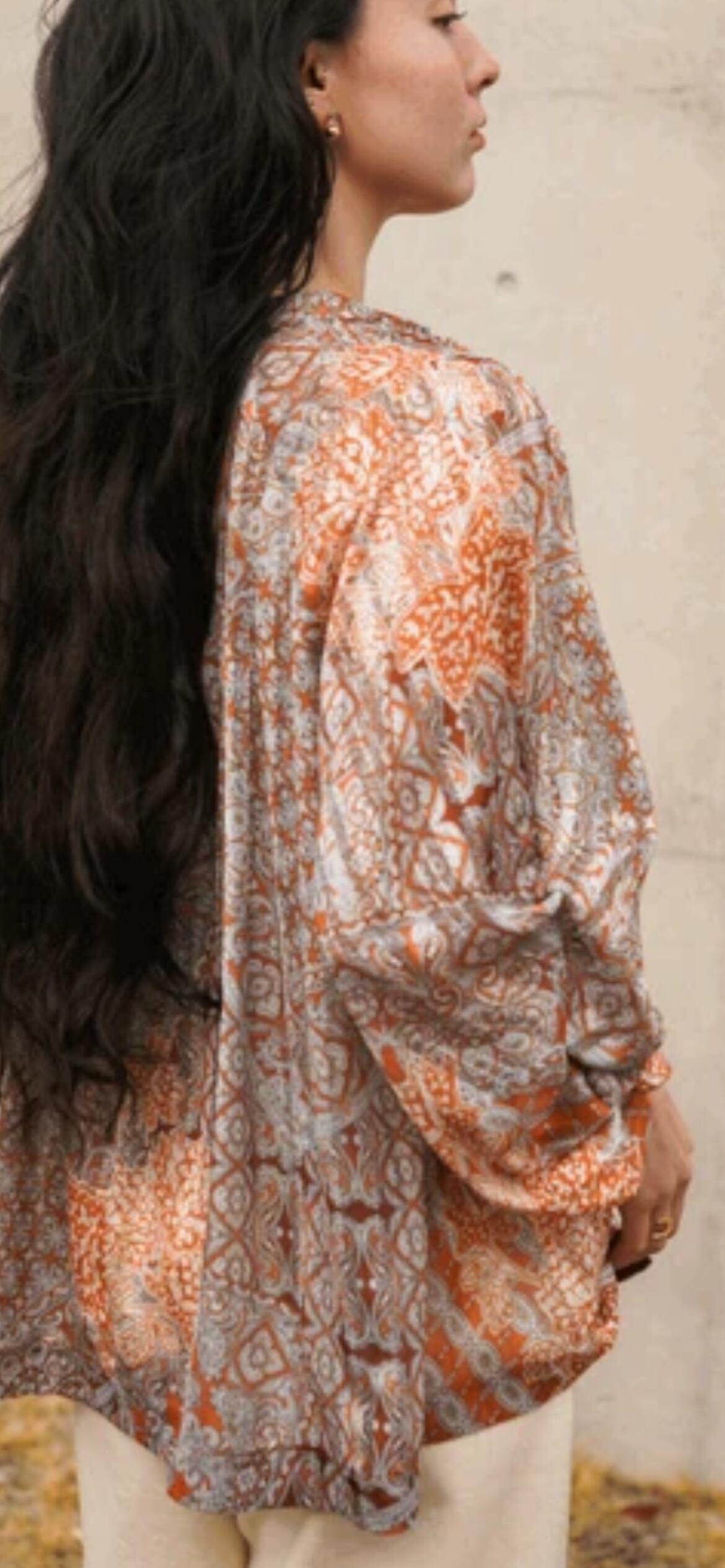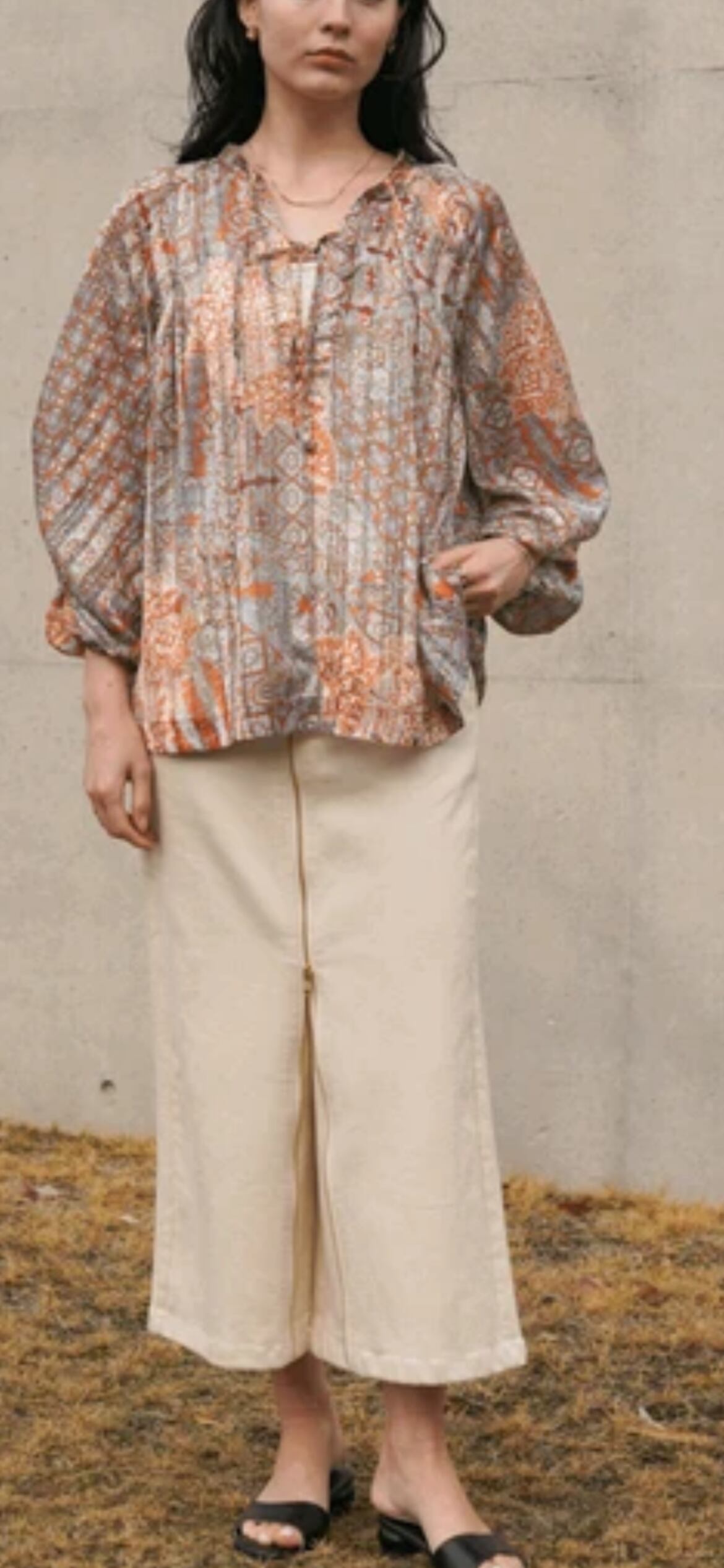 袖のボリュームと裾のふんわり感でニュアンスのでて、一枚で印象的になれます。