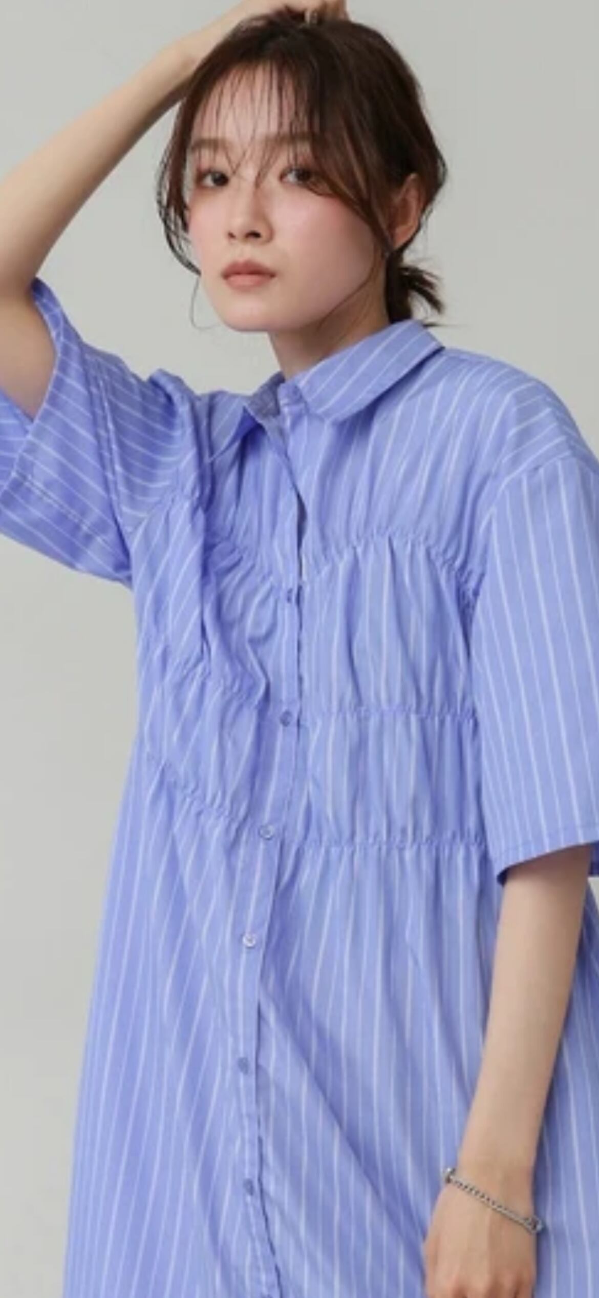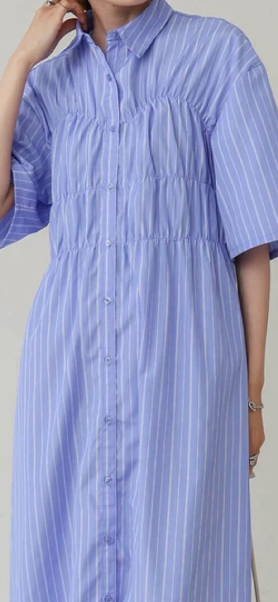 1枚でさらりと着るのはもちろん、デニムやレギンスとレイヤードしても◎パンプスやサンダル合わせて、オンオフ問わず活躍する一着に。トレンドを押さえながらも落ち着いた印象で、大人女子にもおすすめの一枚です。