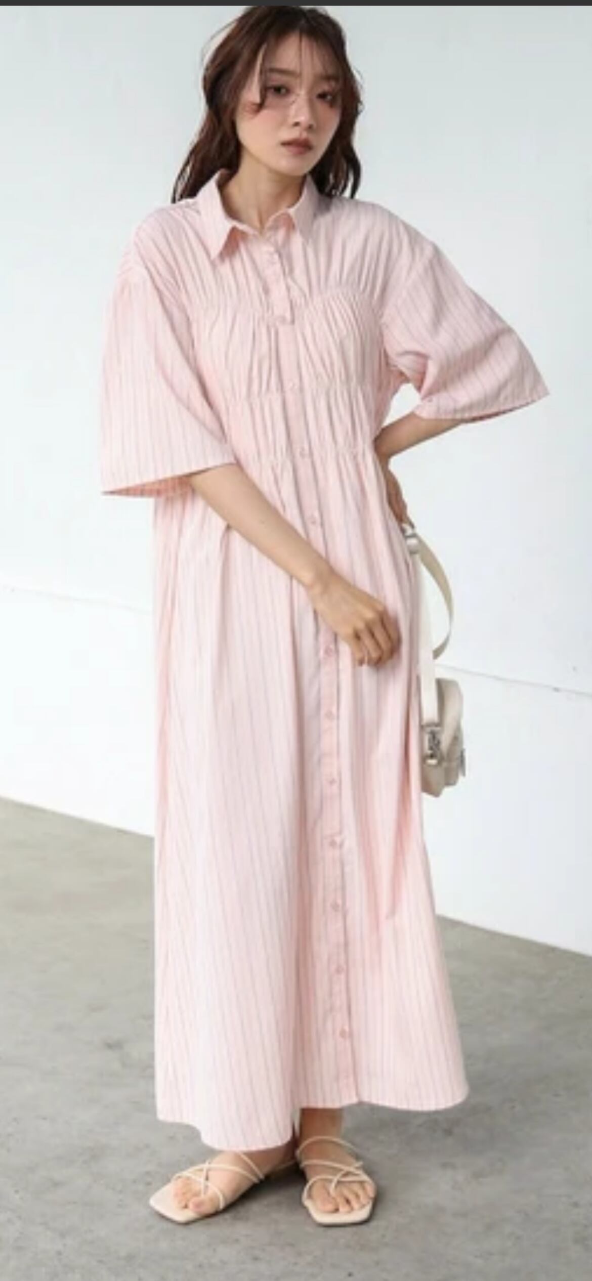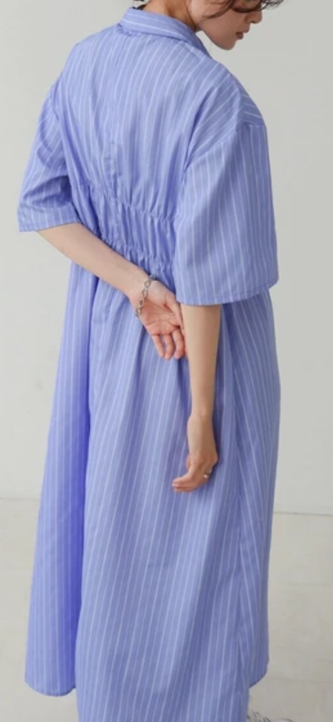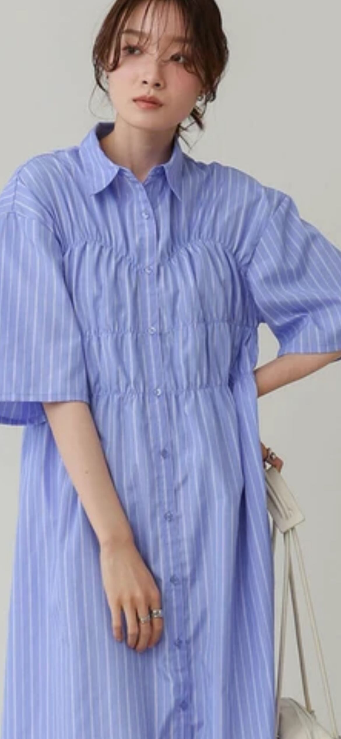 さりげなくビスチェを感じさせる縫い目が目を惹くトレンド感たっぷりのシャツワンピースが登場!ウエストの切り替えでスタイルアップ効果も抜群。シャツのきちんと感とビスチェ風ディテールの甘さが絶妙にマッチし、きれいめにもカジュアルにも対応できる万能ワンピースです。