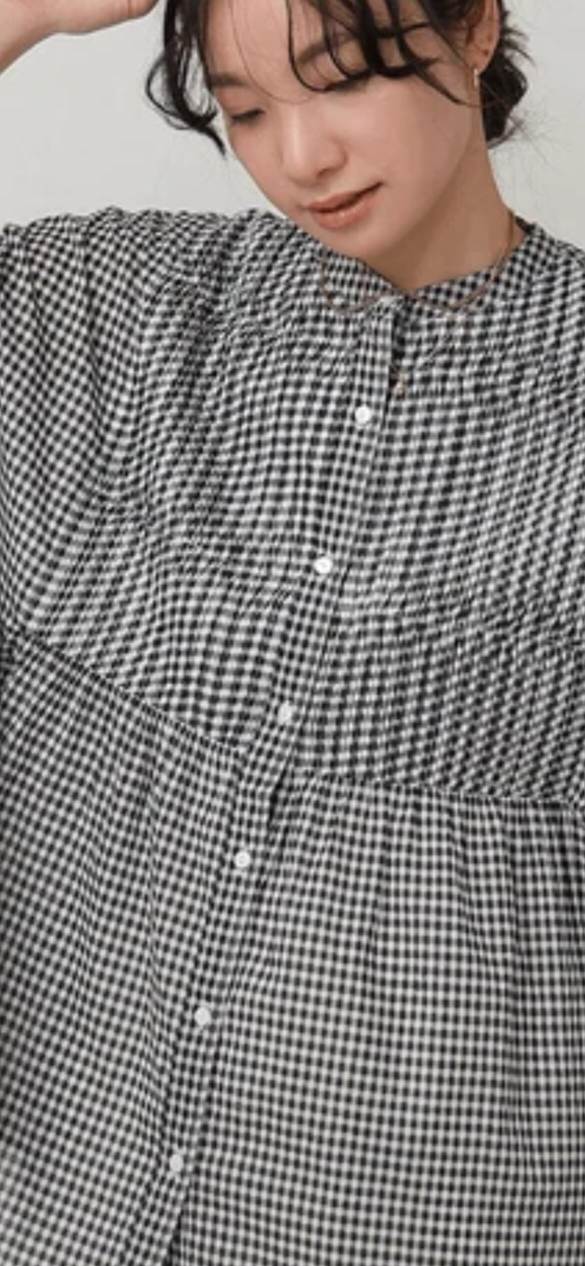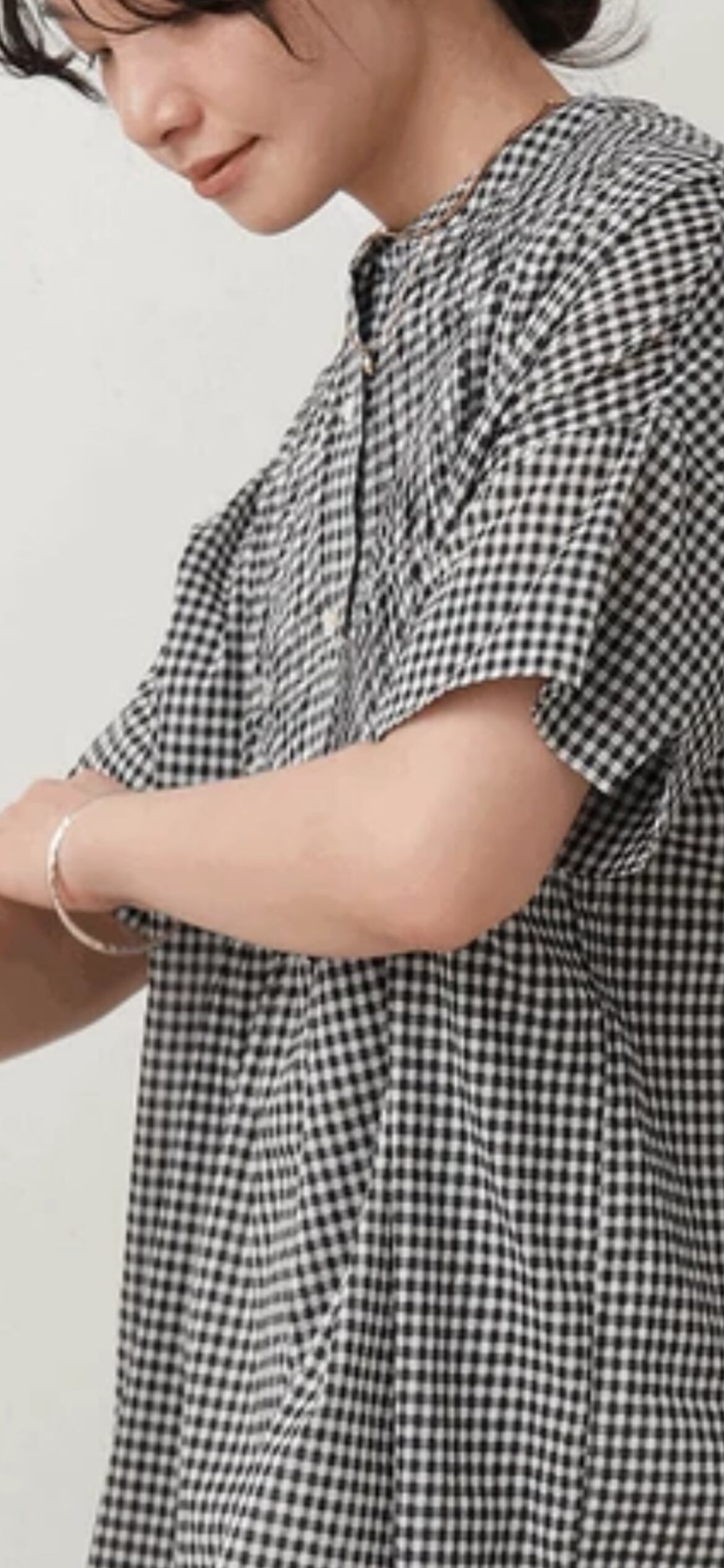 胸下からギャザーを施し、ふんわりと広がるシルエットに。気になる腰周りも自然にカバーしてくれます◎