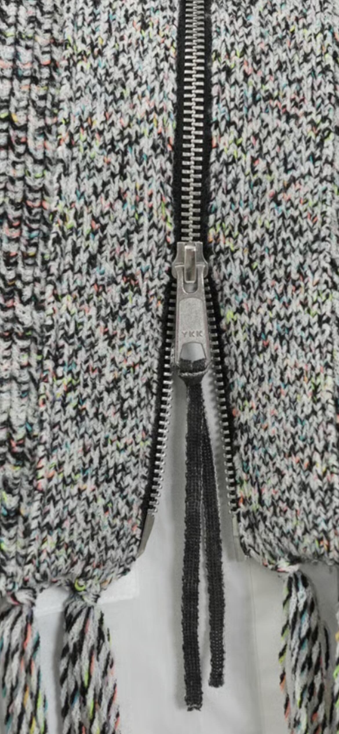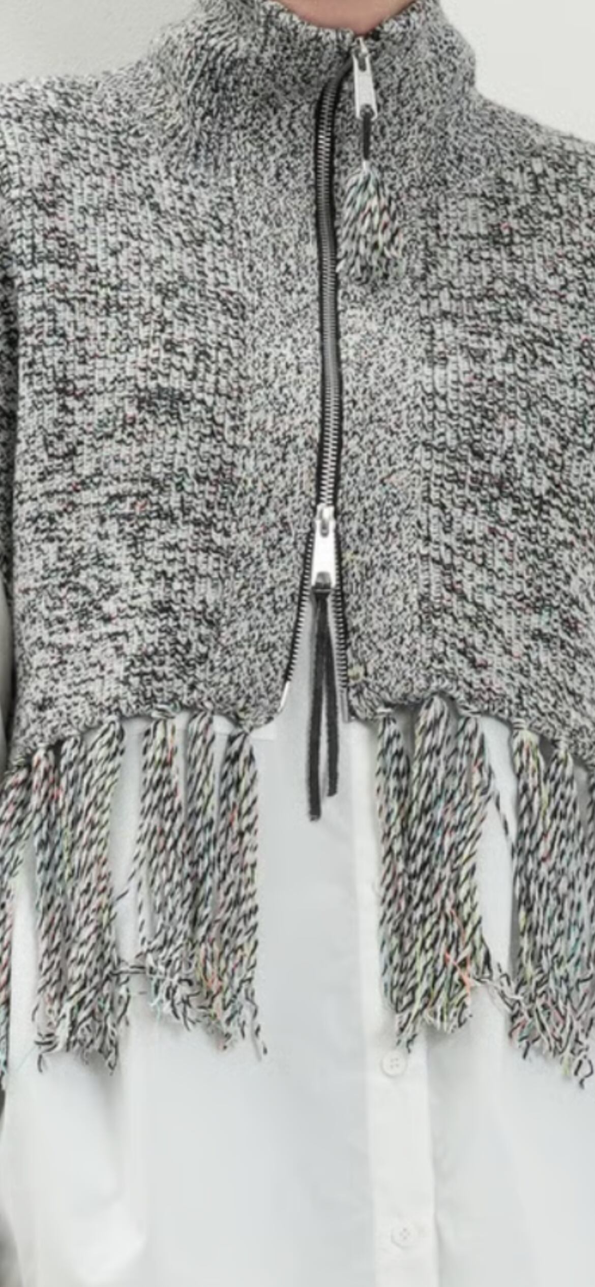 表情豊かな多色カラーネップ糸を用いた畦編みが奥行きと表情を添えるニットベスト。ZIP-UP仕様とフリンジがモダンなスパイスに。クロップド丈×スクエアシルエットがレイヤードで個性を引き立てる1枚で、今季らしい主役級ベストでインナープラスやアウターインにも映えます。