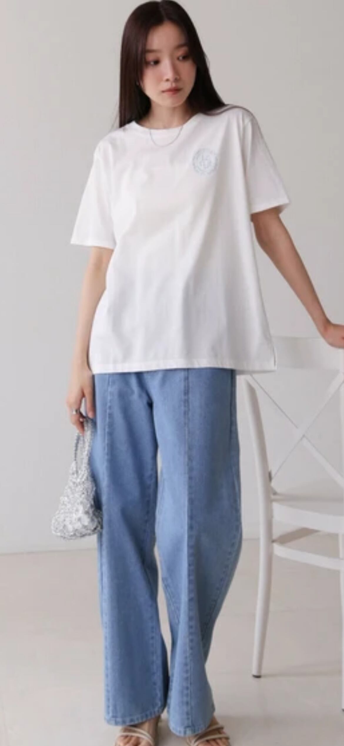 背面の立体的な刺繍が目を惹くTシャツが登場!柔らかい色味の刺繍使いでカジュアルながら大人っぽく仕上がります。身体のラインを拾い過ぎないリラックス感のあるシルエットで1枚で着ても◎生地も厚すぎないのでボトムにインしてもごわつきません。