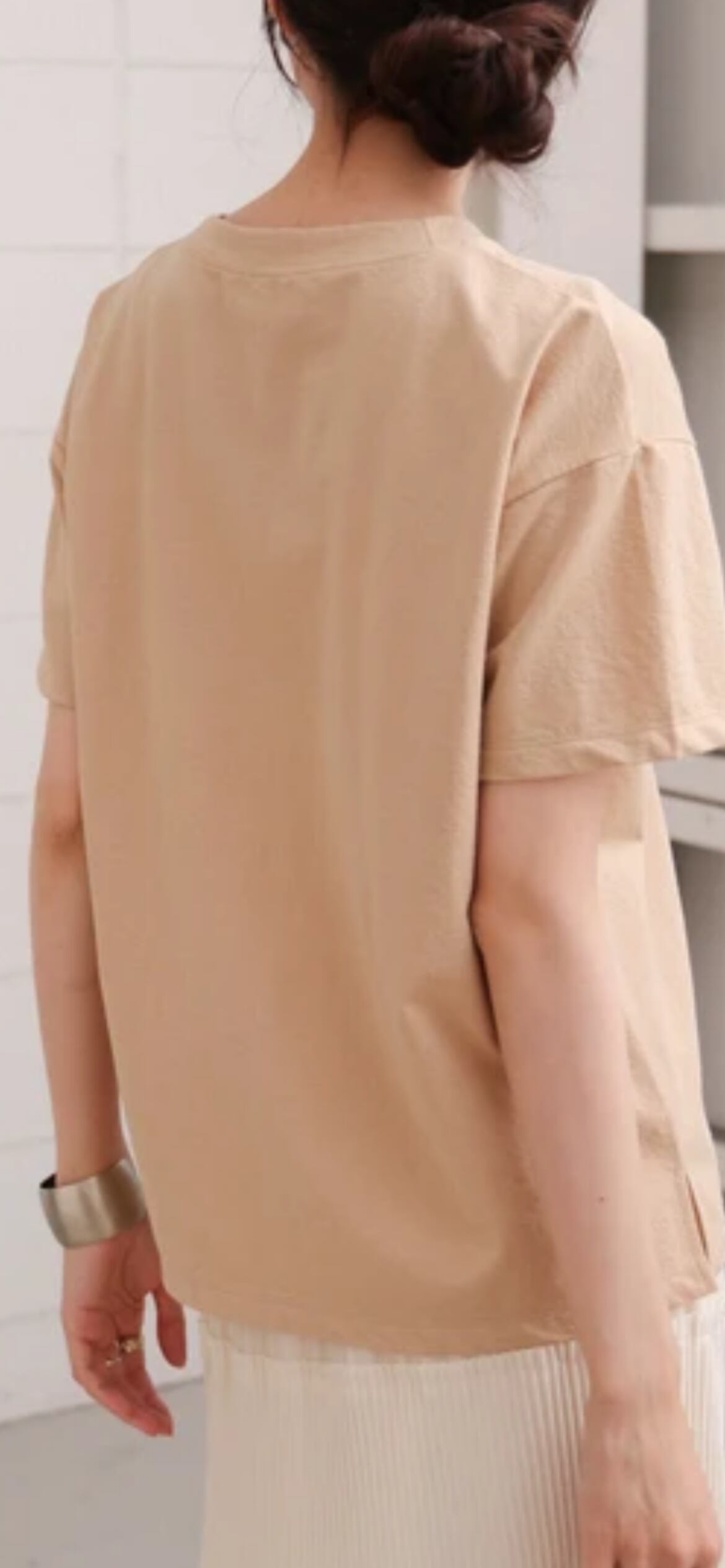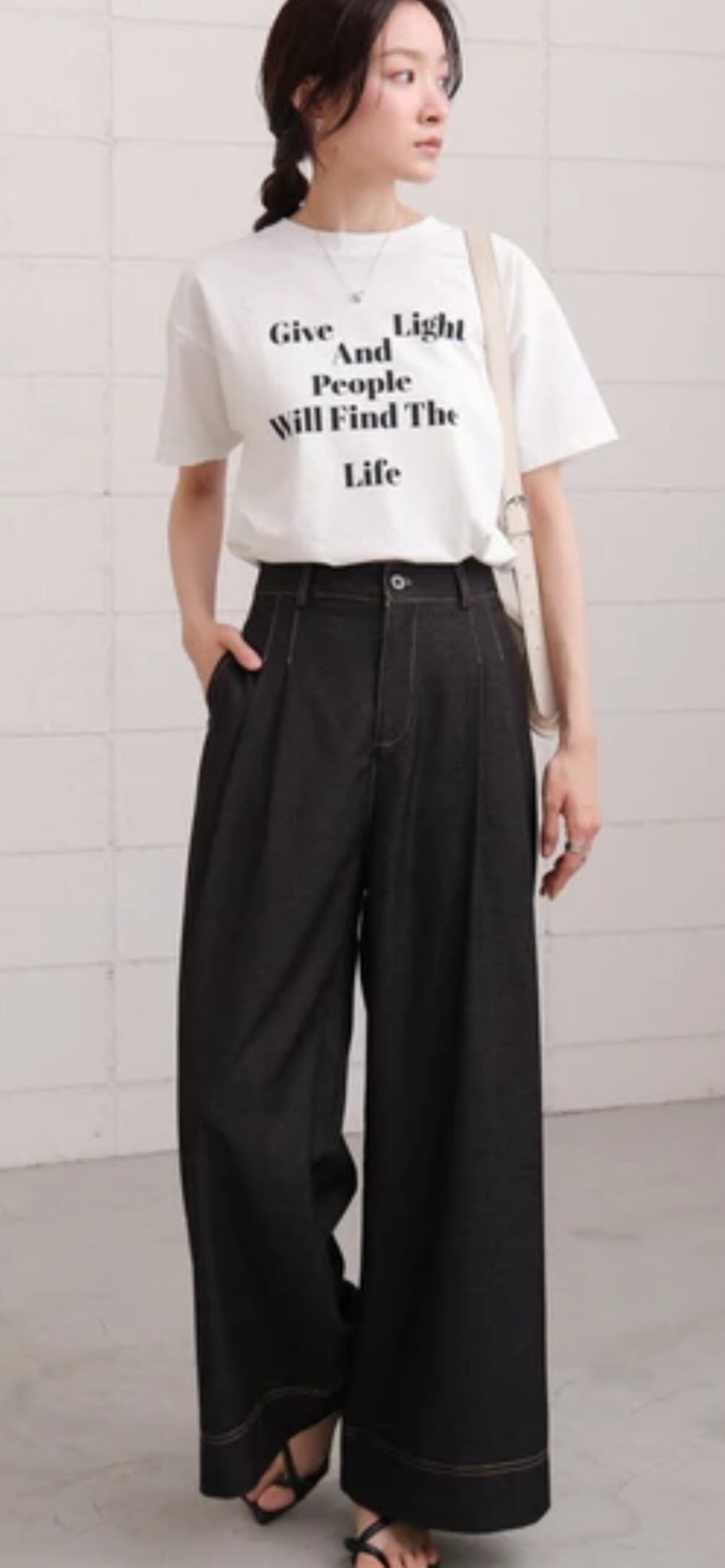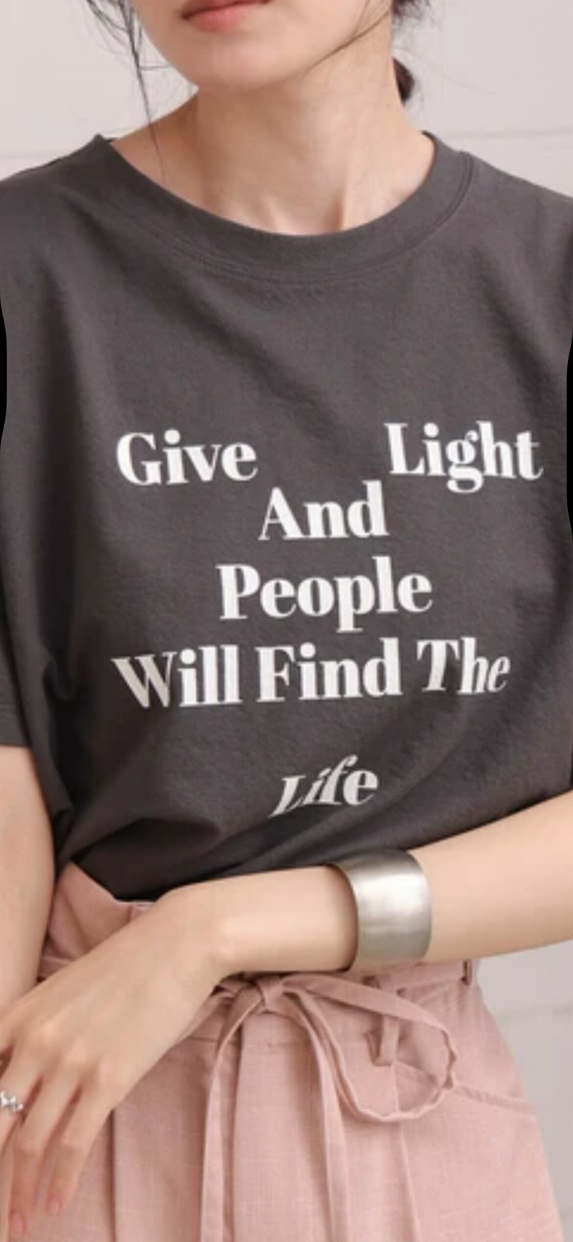 シンプルなデザインなので、パンツやスカートだけでなく、ワンピースに合わせても◎ざっくりとしたベストを合わせたり、シンプルなジャケット、シャツなどのインナーとしてロゴをアクセントに着用するのもおすすめ。