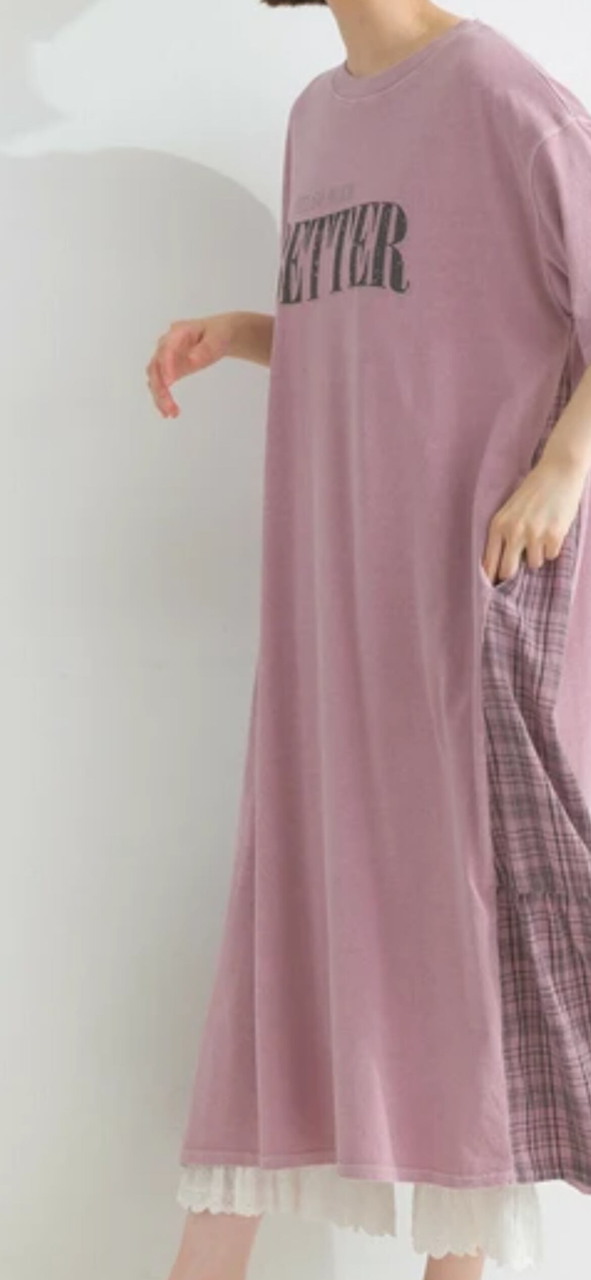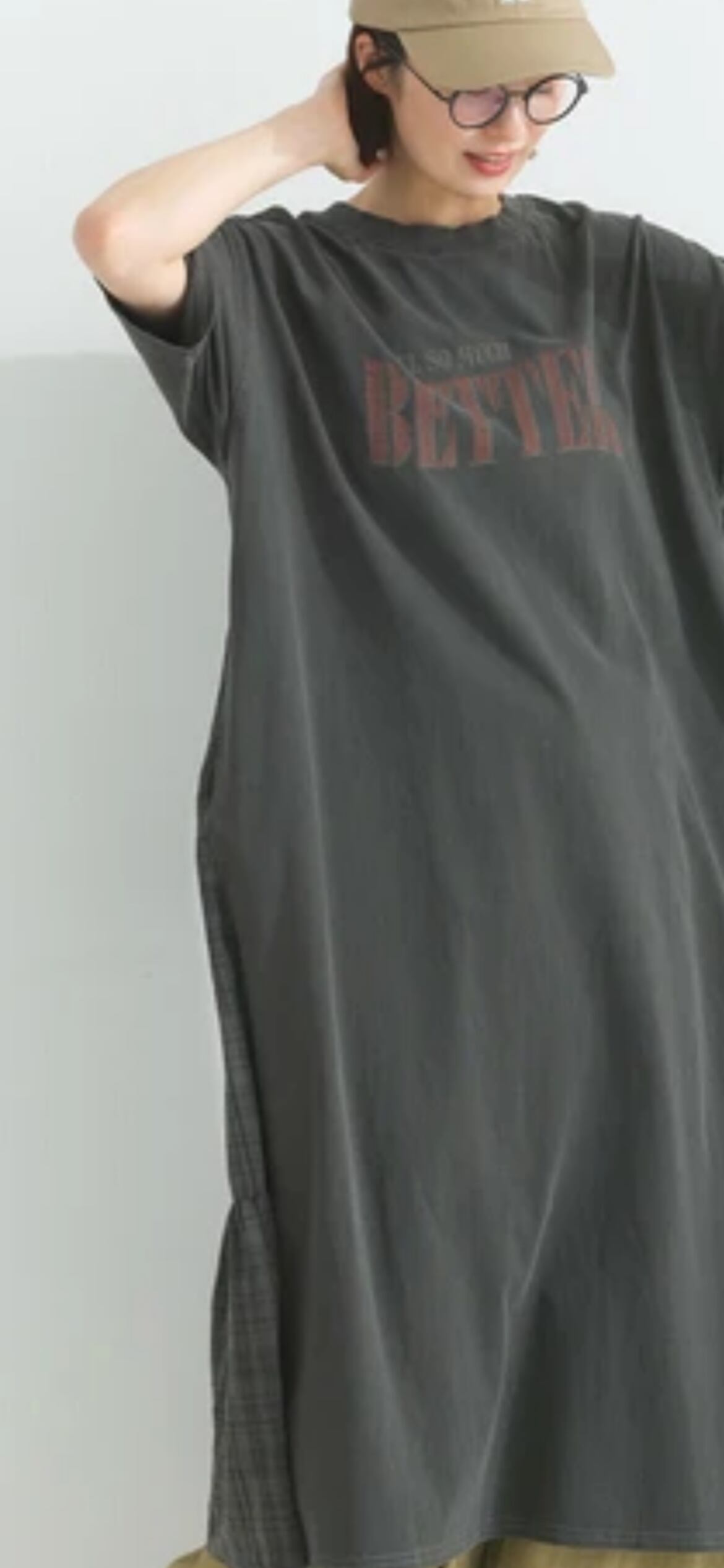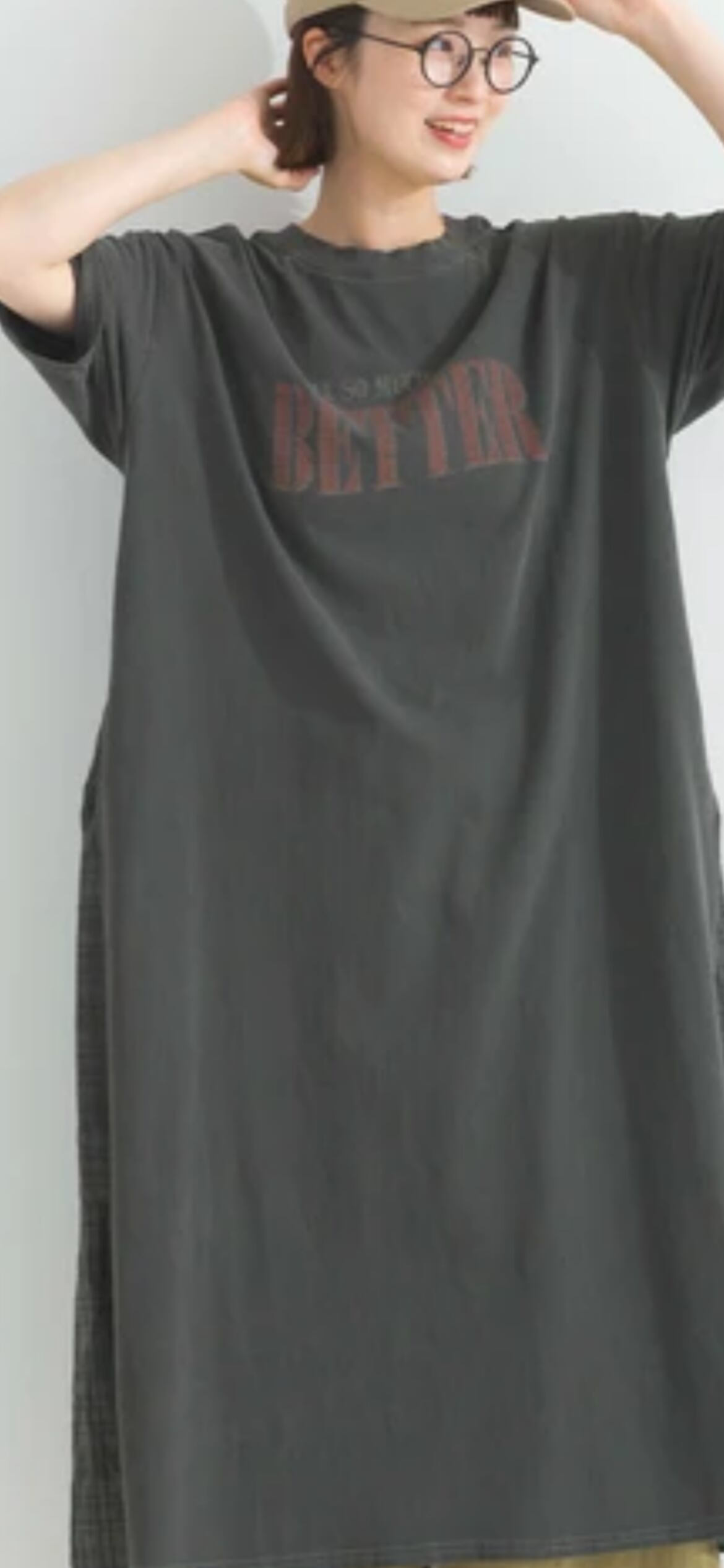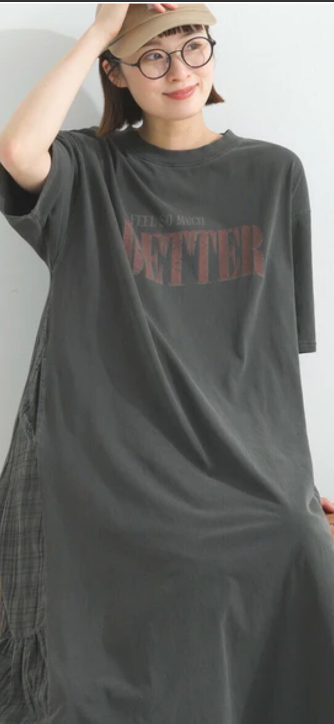 18S天竺ピグメント 布帛切替 ロゴプリント ワンピース