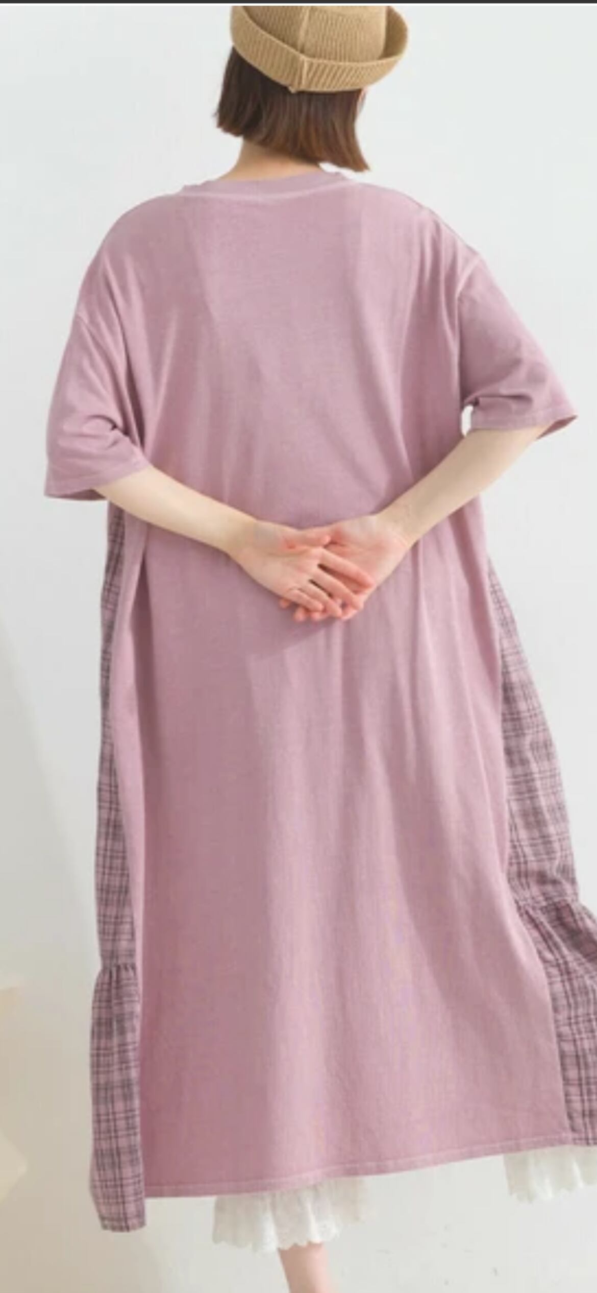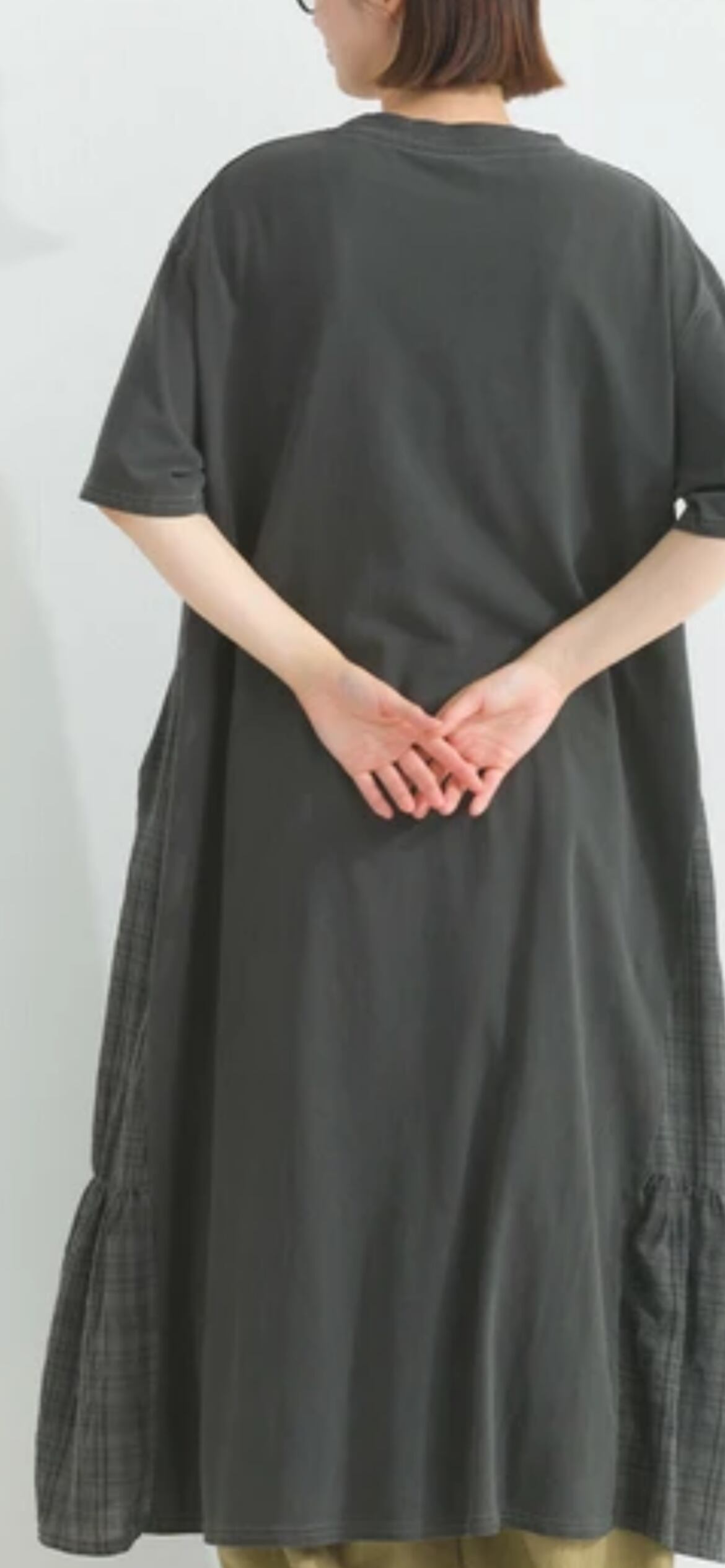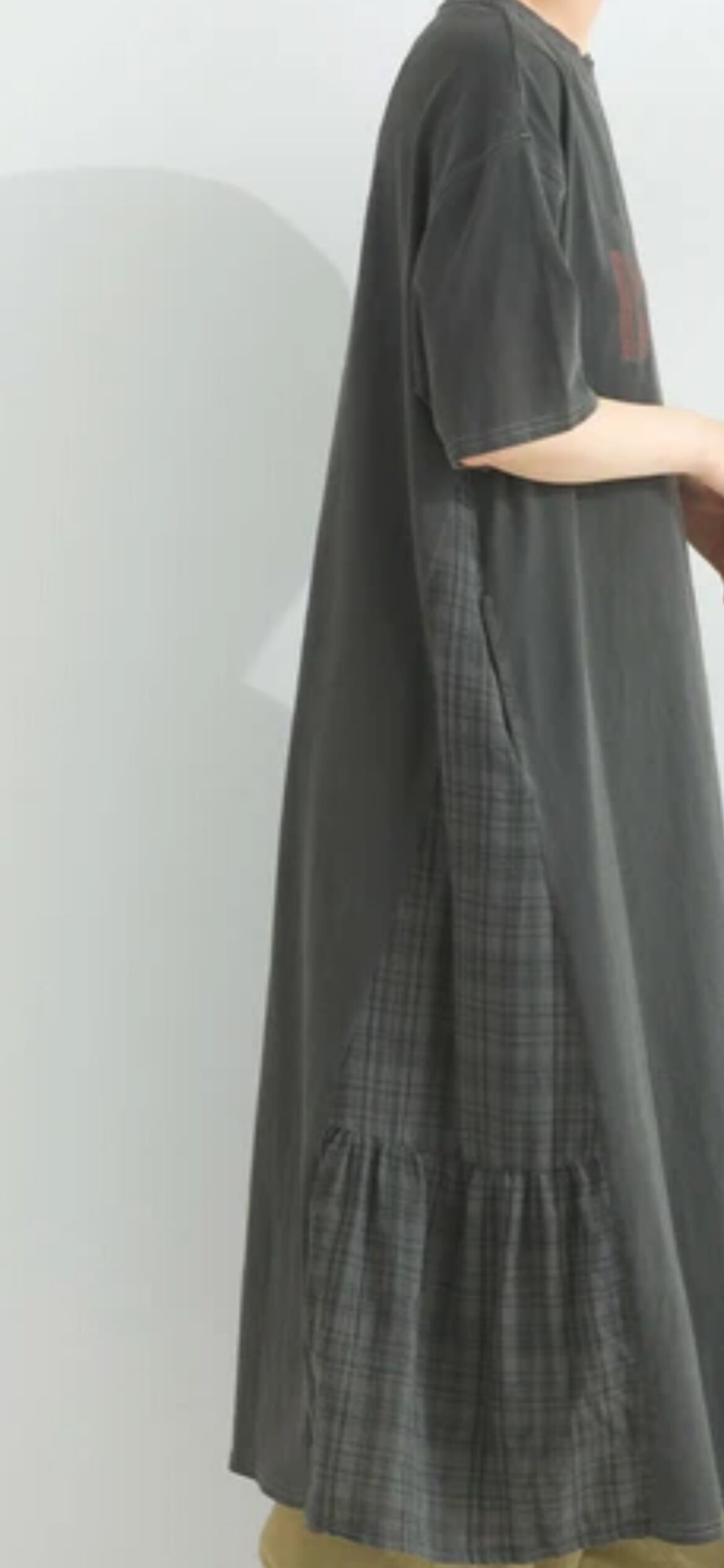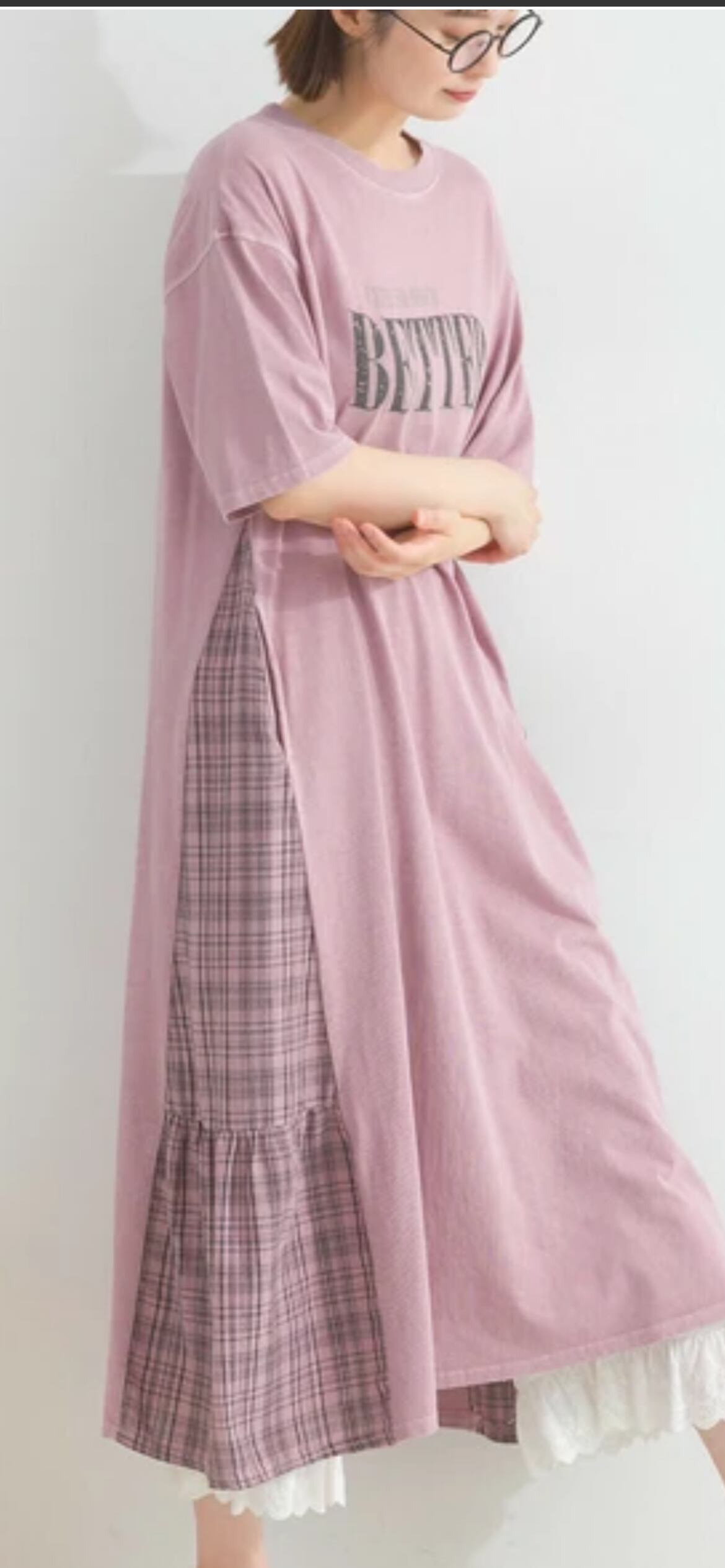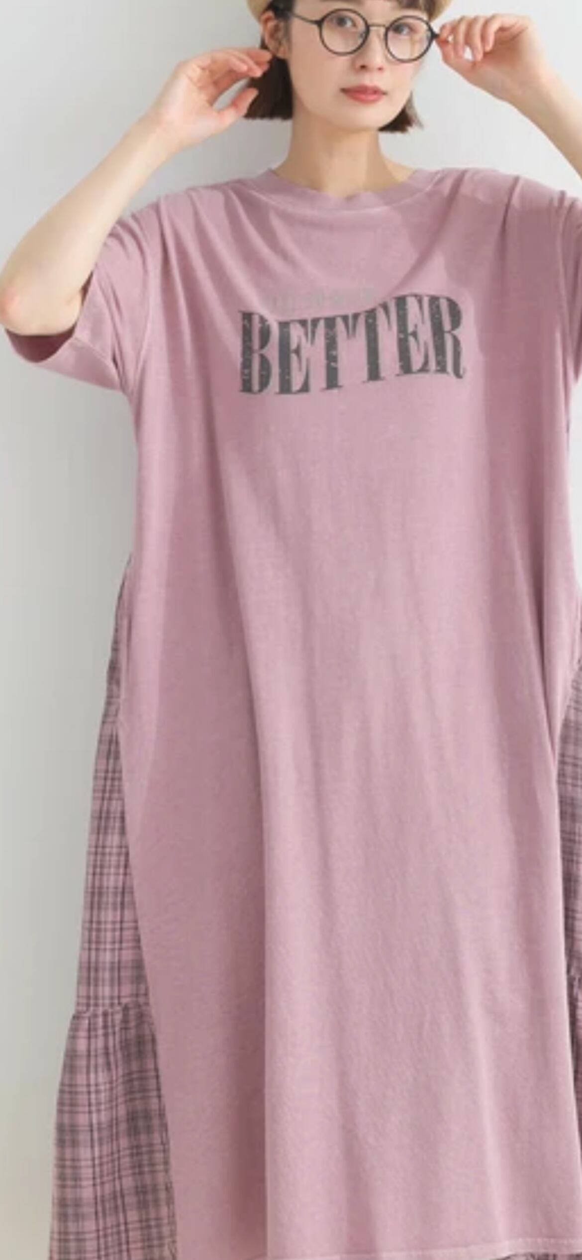 18S天竺ピグメント 布帛切替 ロゴプリント ワンピース