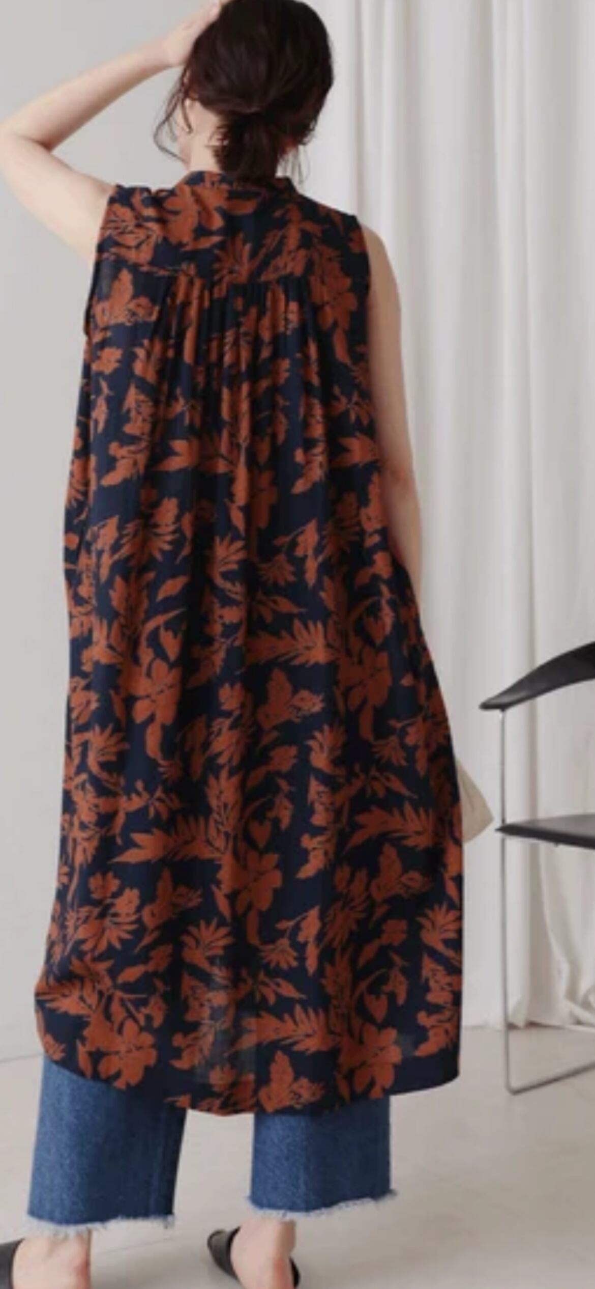 (大人気の為再入荷)麻レーヨンボタニカルシャツワンピース