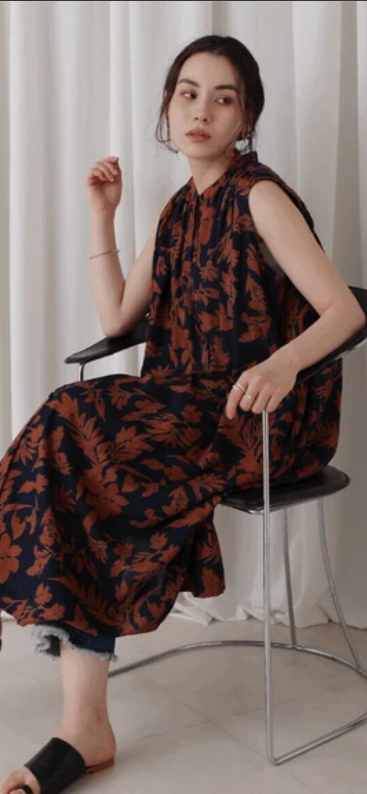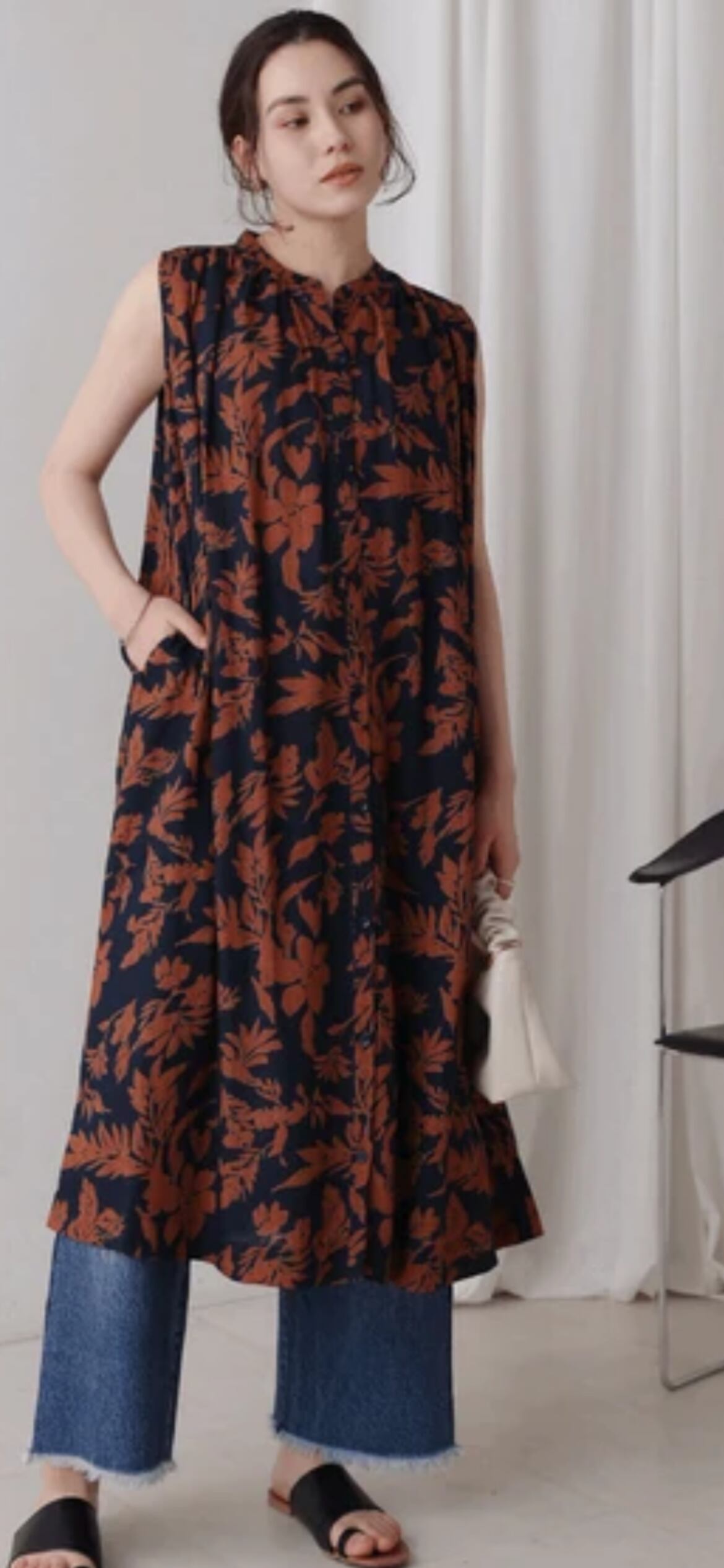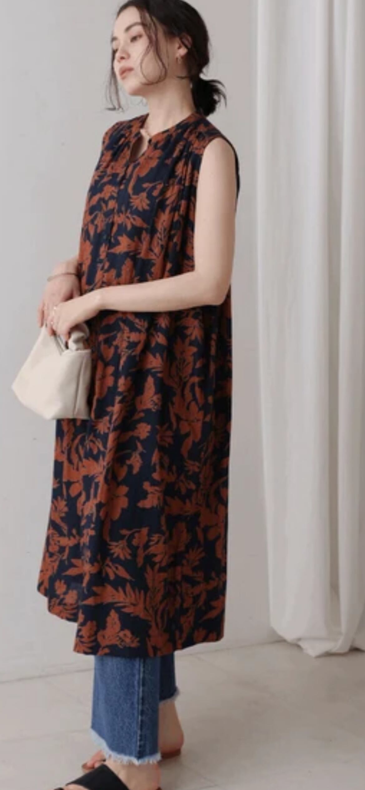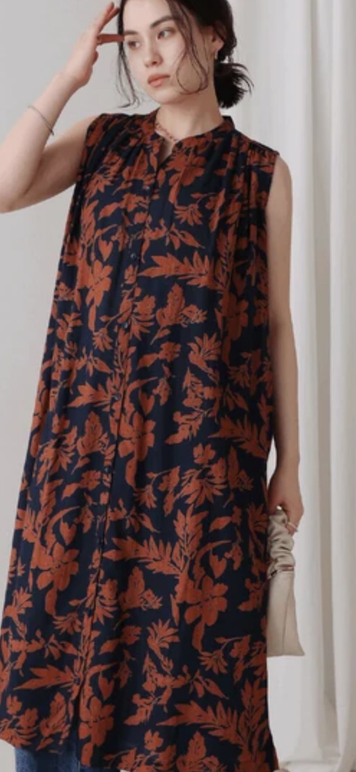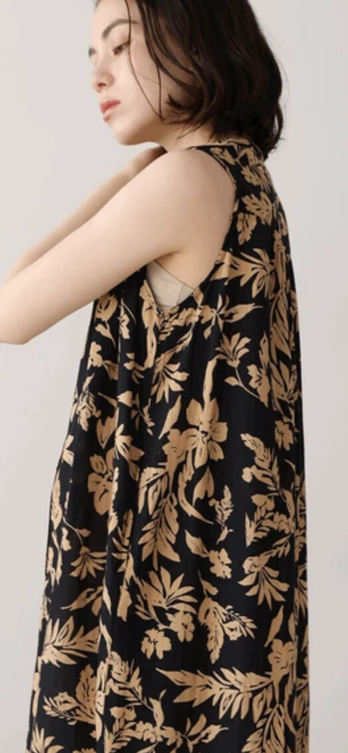 夏の定番ボタニカル柄でリラックス感のあるワンピースに仕上げました。
