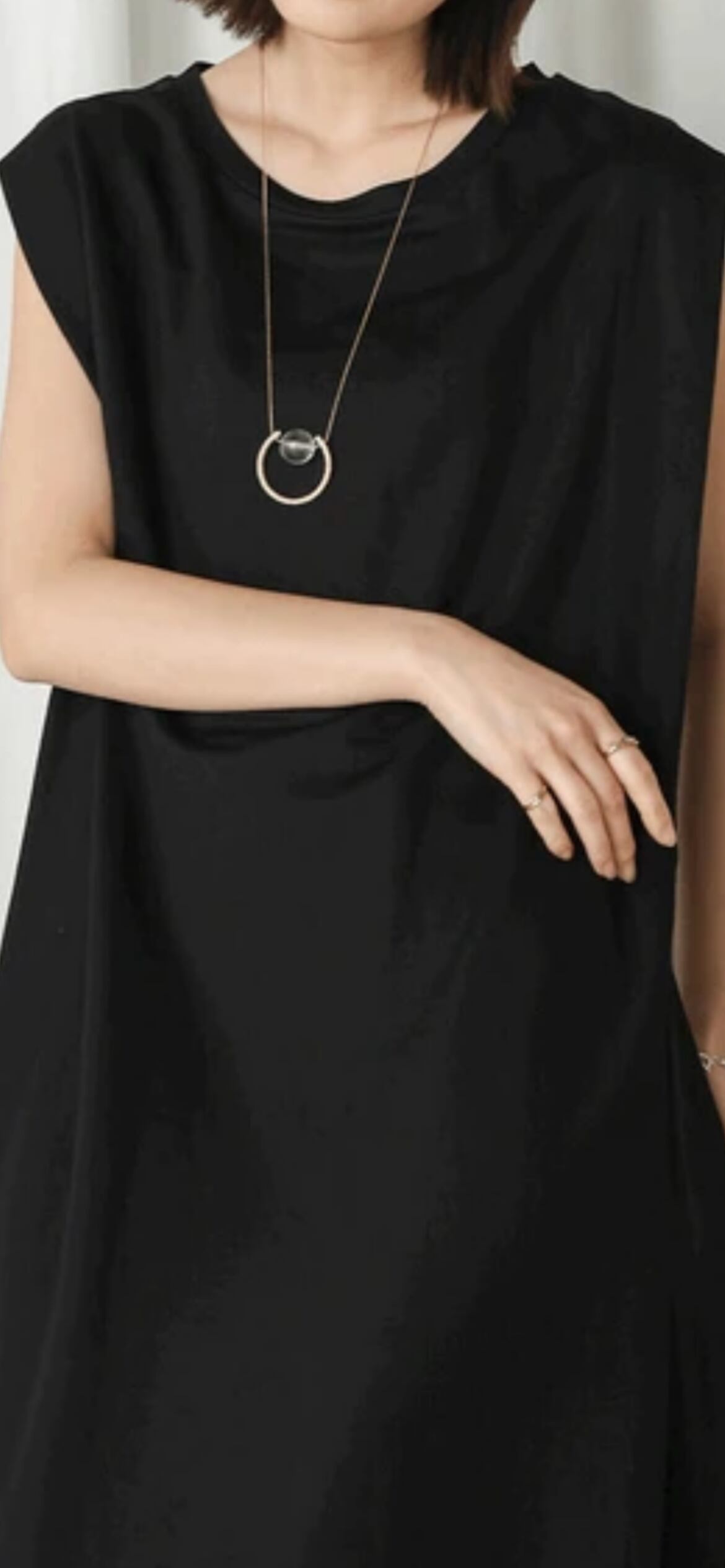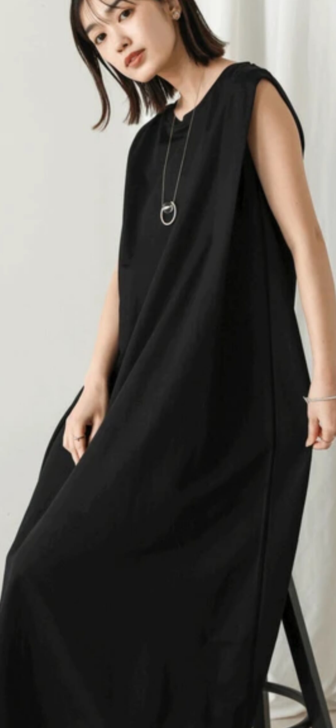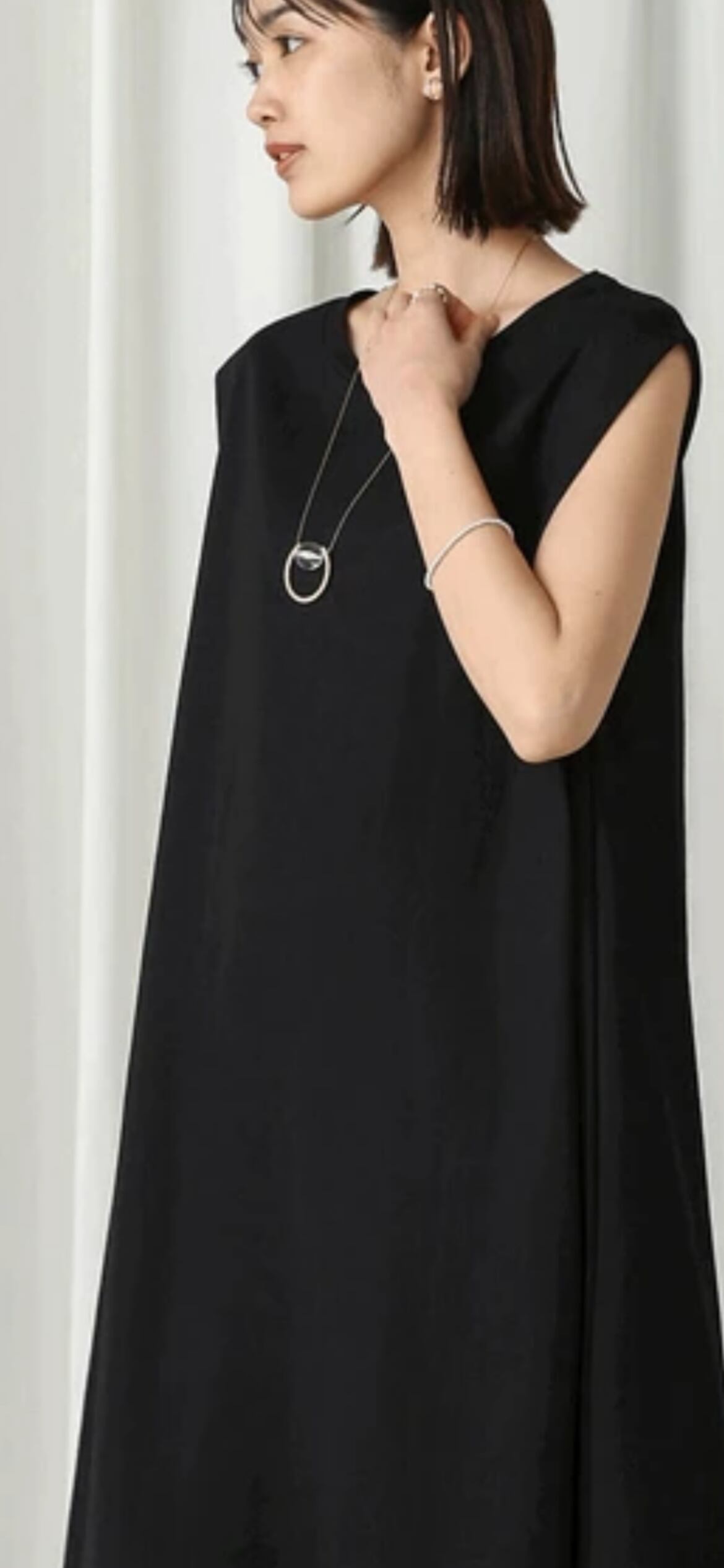 Aラインシルエットで女性らしくカジュアルになりすぎないシンプルワンピ。