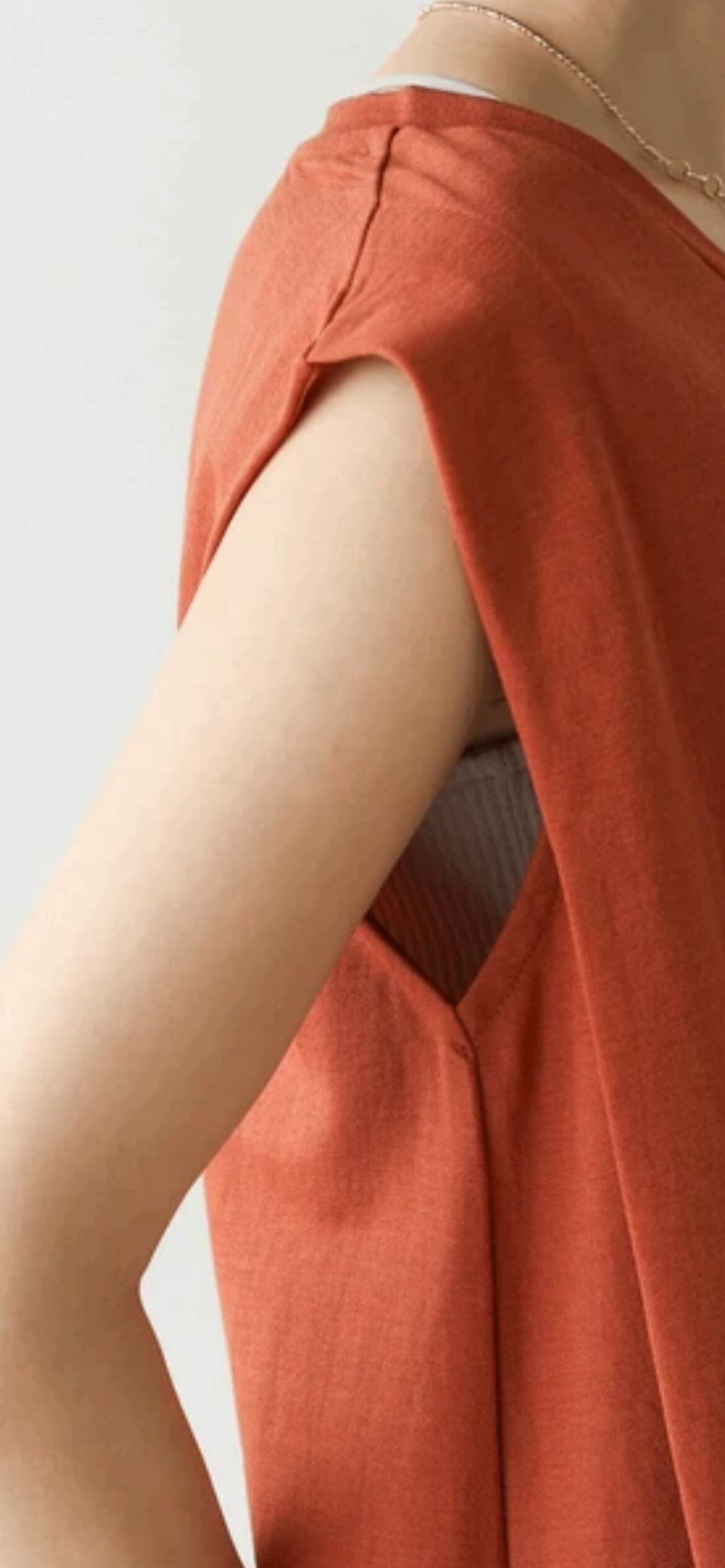 身頃AH側のタックが立体感があり、シンプルながらサマになるデザイン。