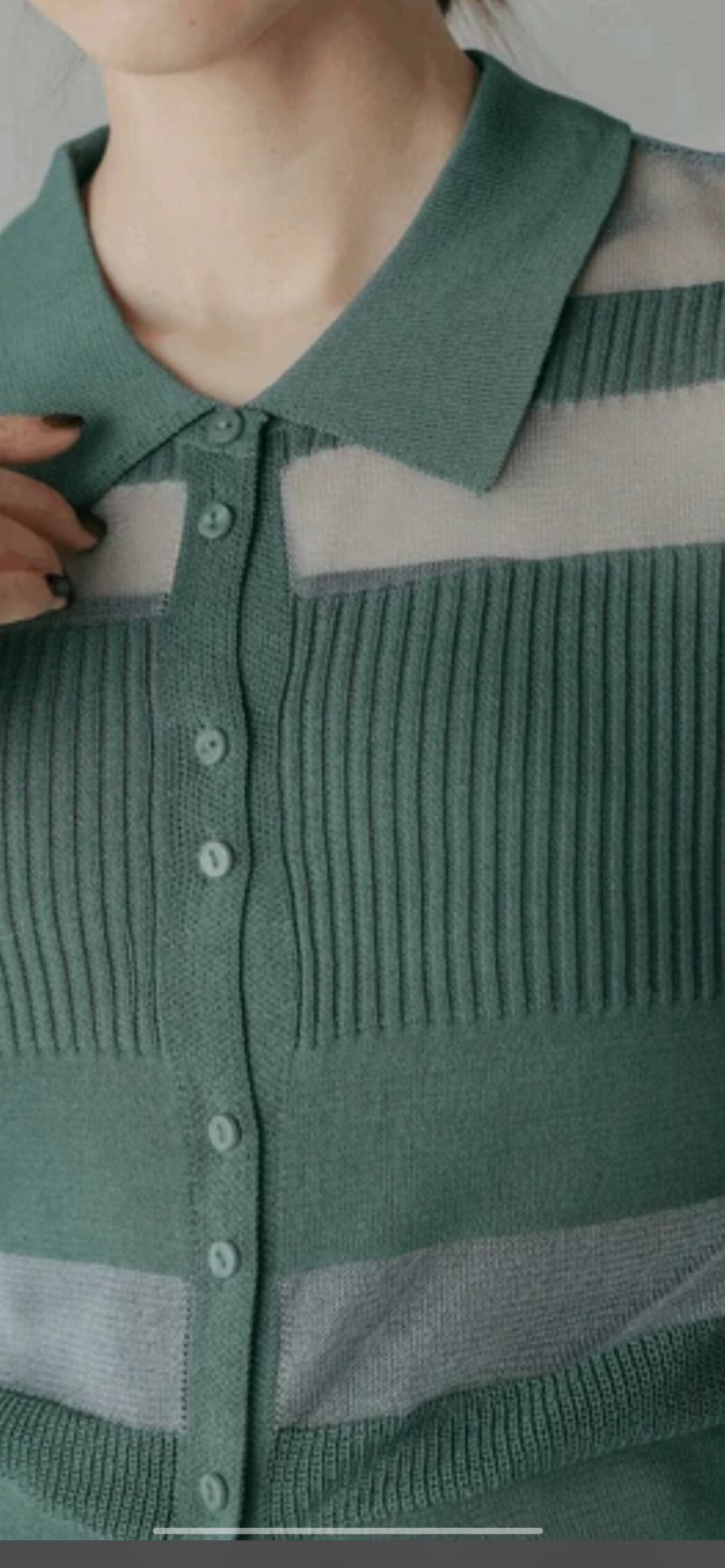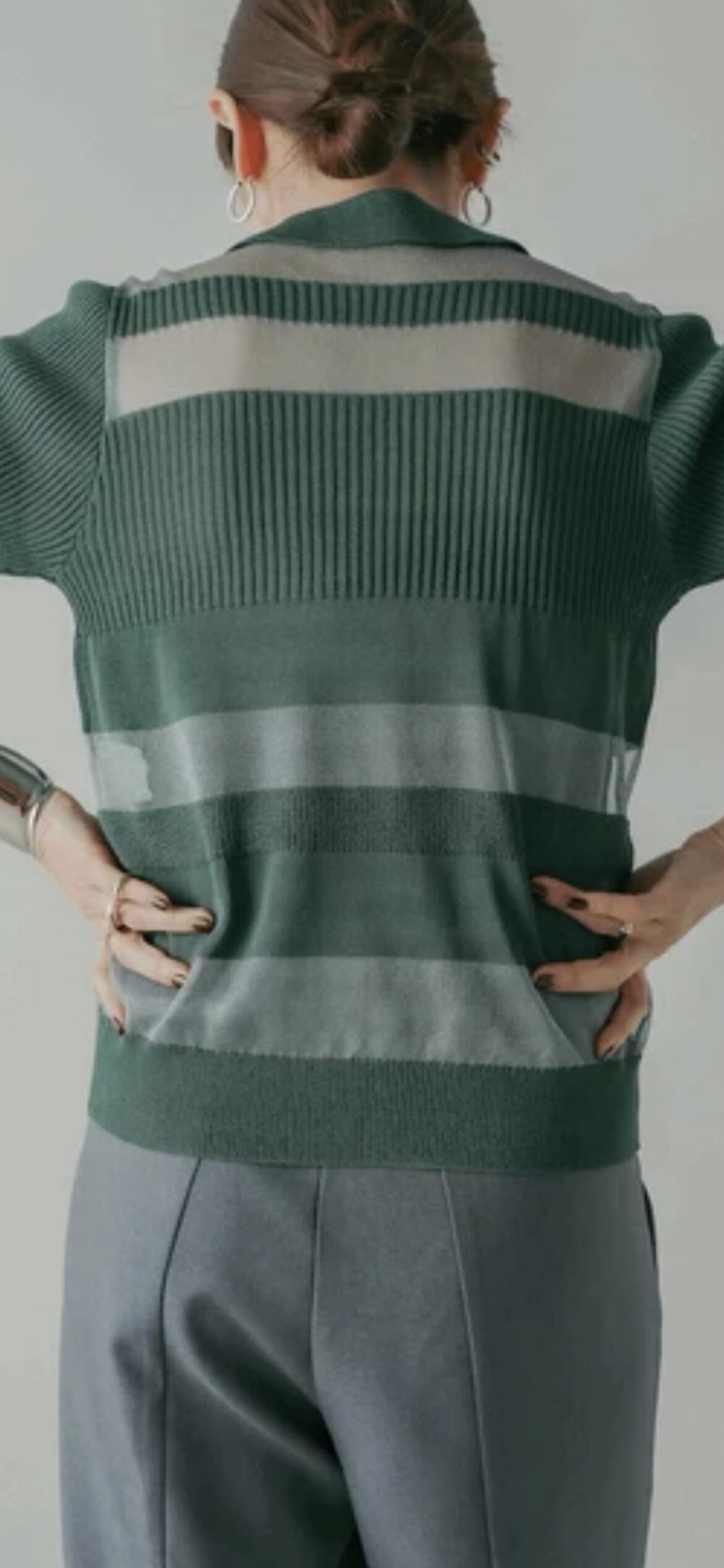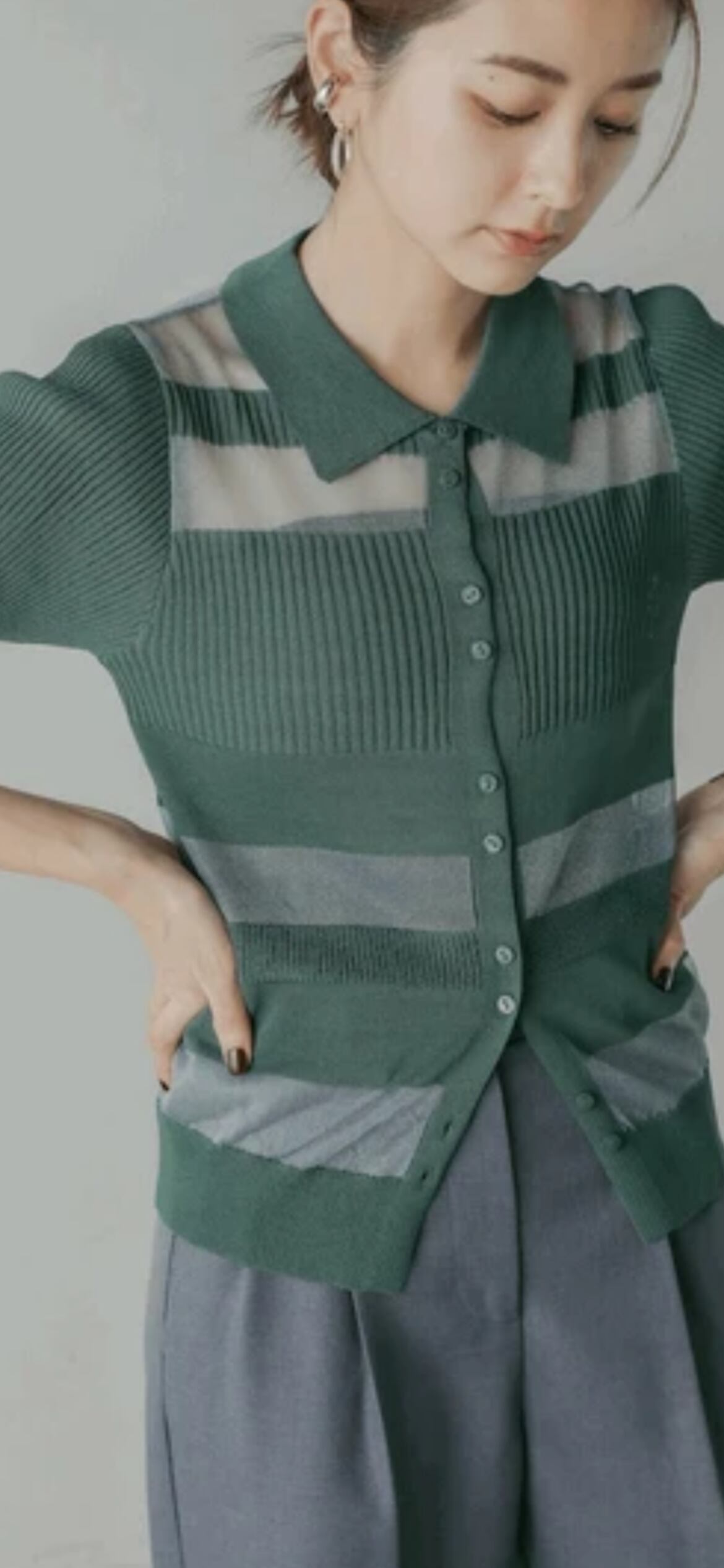 コンパクトなサイズ感が女性らしい印象に。透け感があるので、インナーを合わせていただくことをおすすめします。
