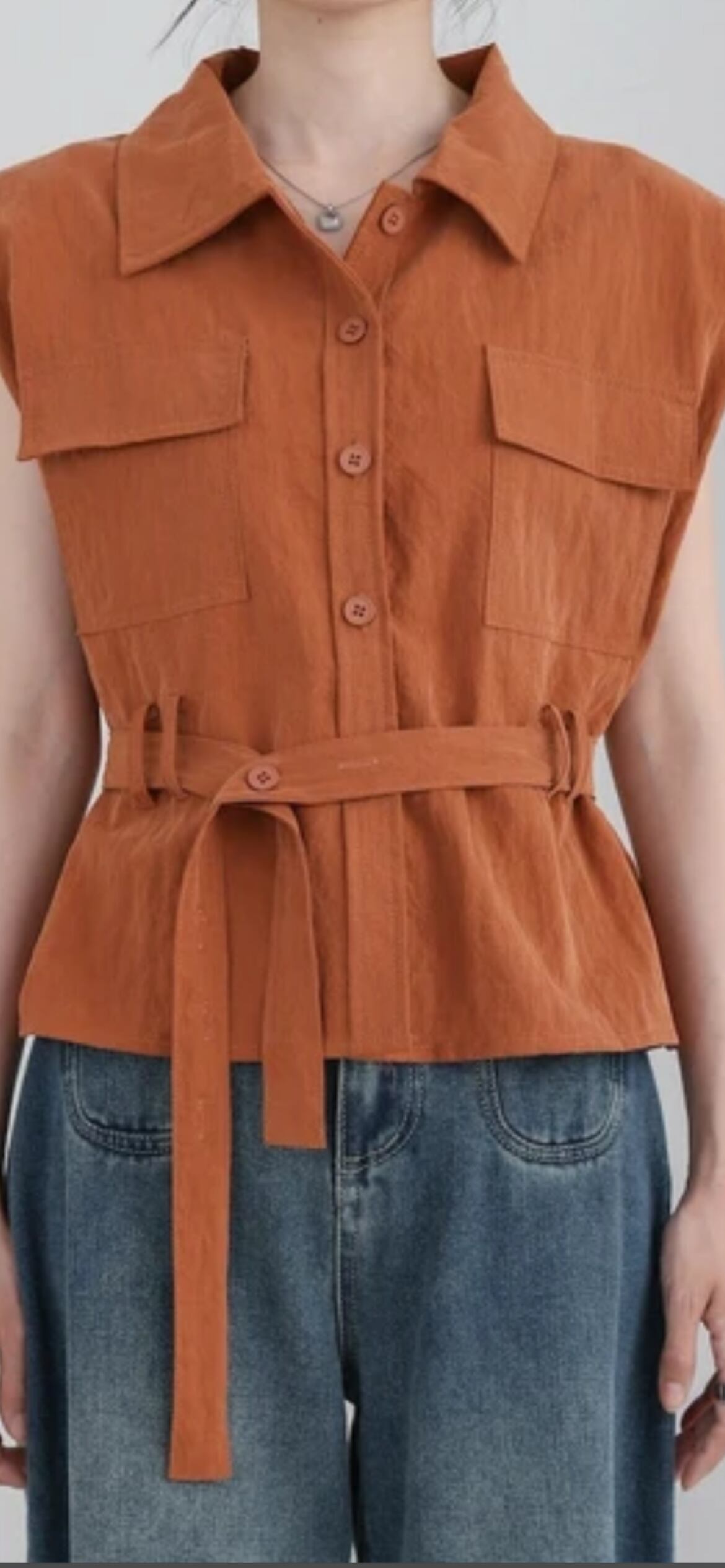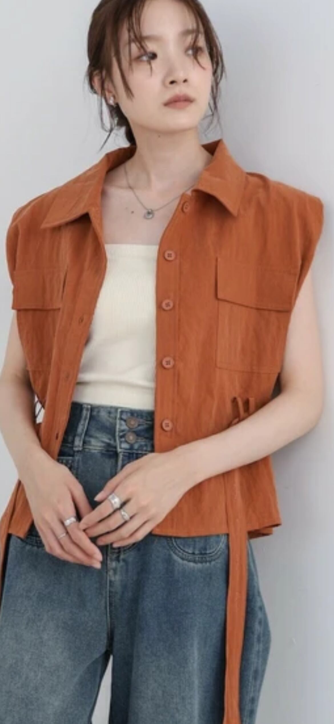 モード感漂うショルダーラインが魅力の、肩パッド入りベストトップス。構築的なシルエットで、いつものコーデにプラスするだけでぐっと洗練された印象になります。ウエスト位置にあるリボンがガーリーさをプラスし、甘辛MIXなベストになっています。