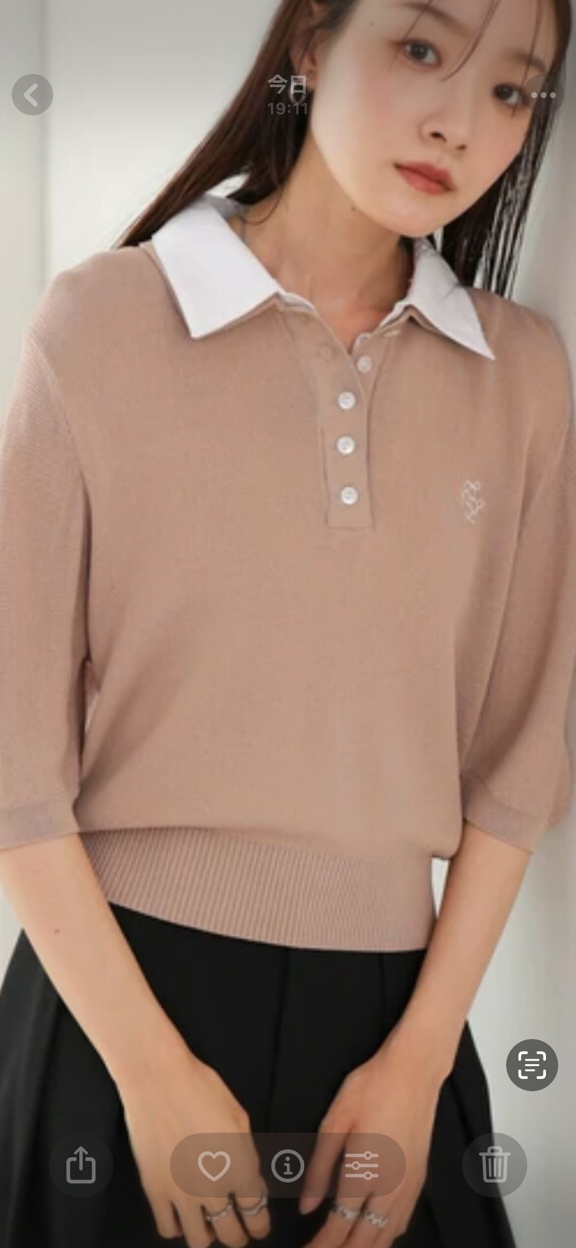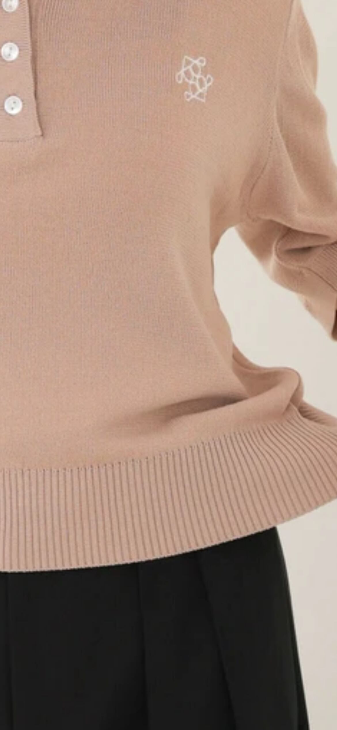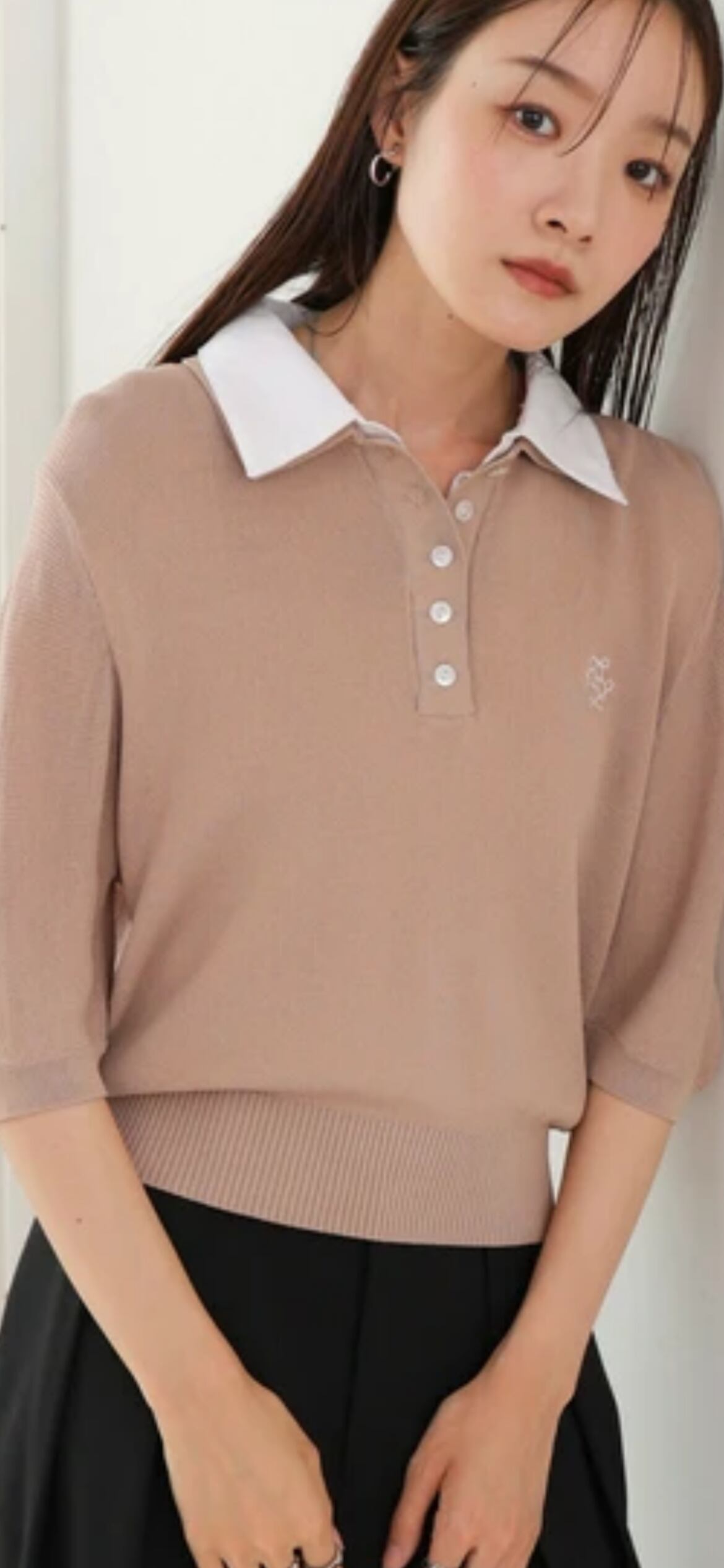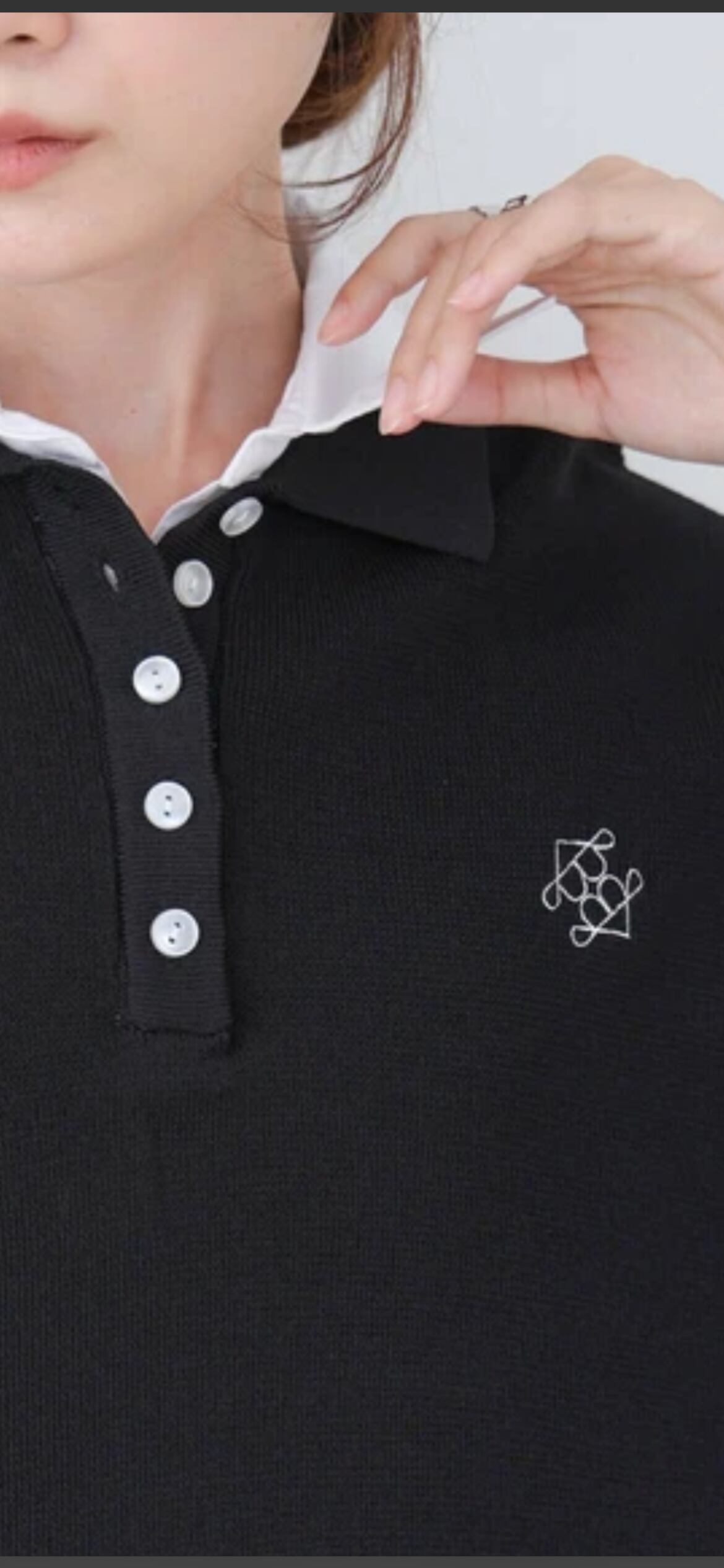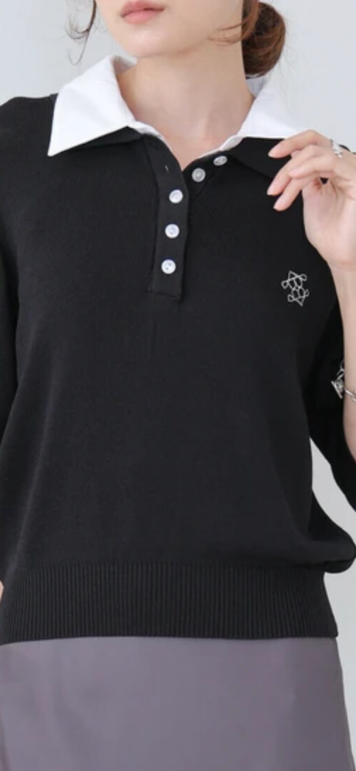 胸元のワンポイントが可愛いポロニットが登場です!襟部分とニット部分の配色を変えることによりトレンドライクなスクールニットのように仕上がりました。フロント部分んボタンで空き具合を調節することが可能になっています。袖部分も半端丈になっているので秋まで使っていただけます。