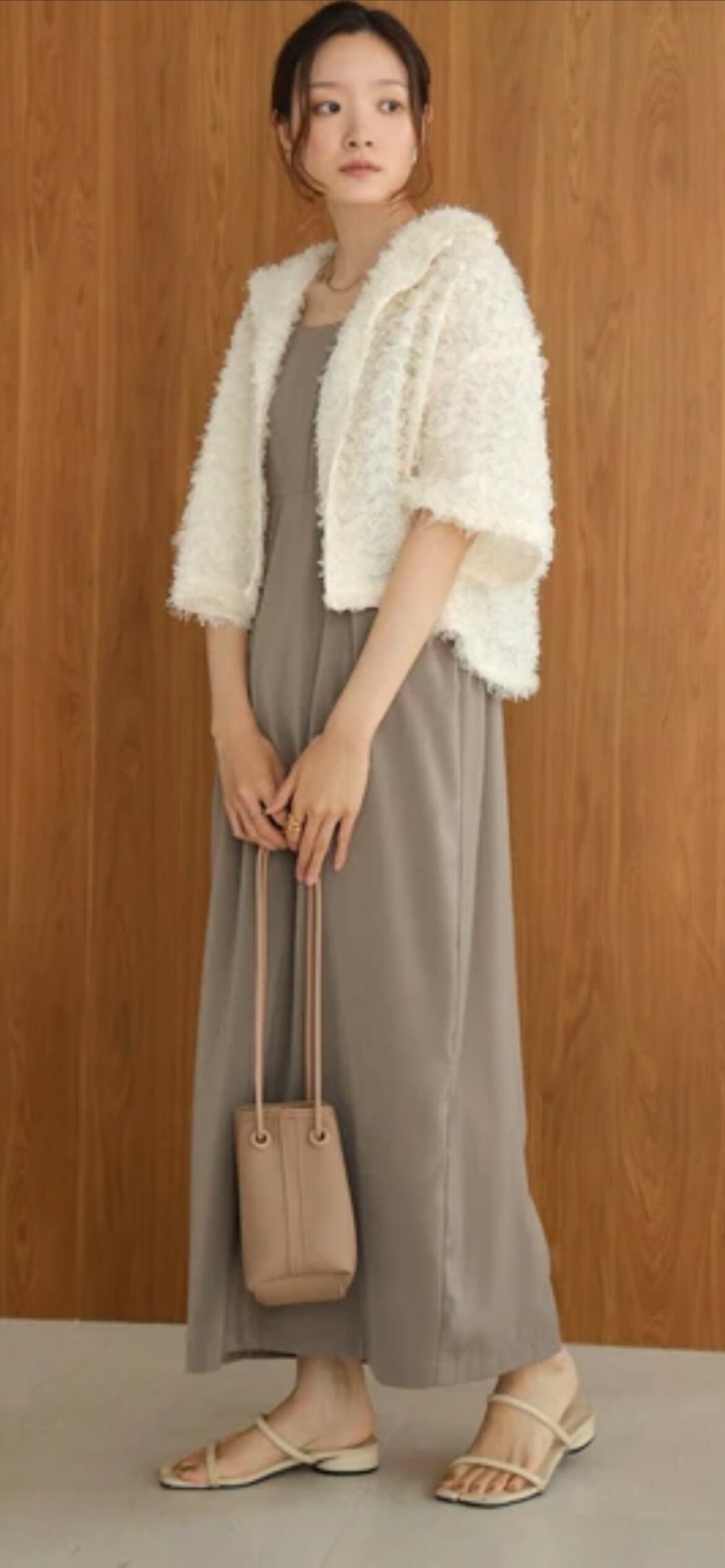 透け過ぎない大人なシアー加減で品がよく、ふわっと軽量かつ裏地が無いので気軽にお召し頂けるところも魅力的です。