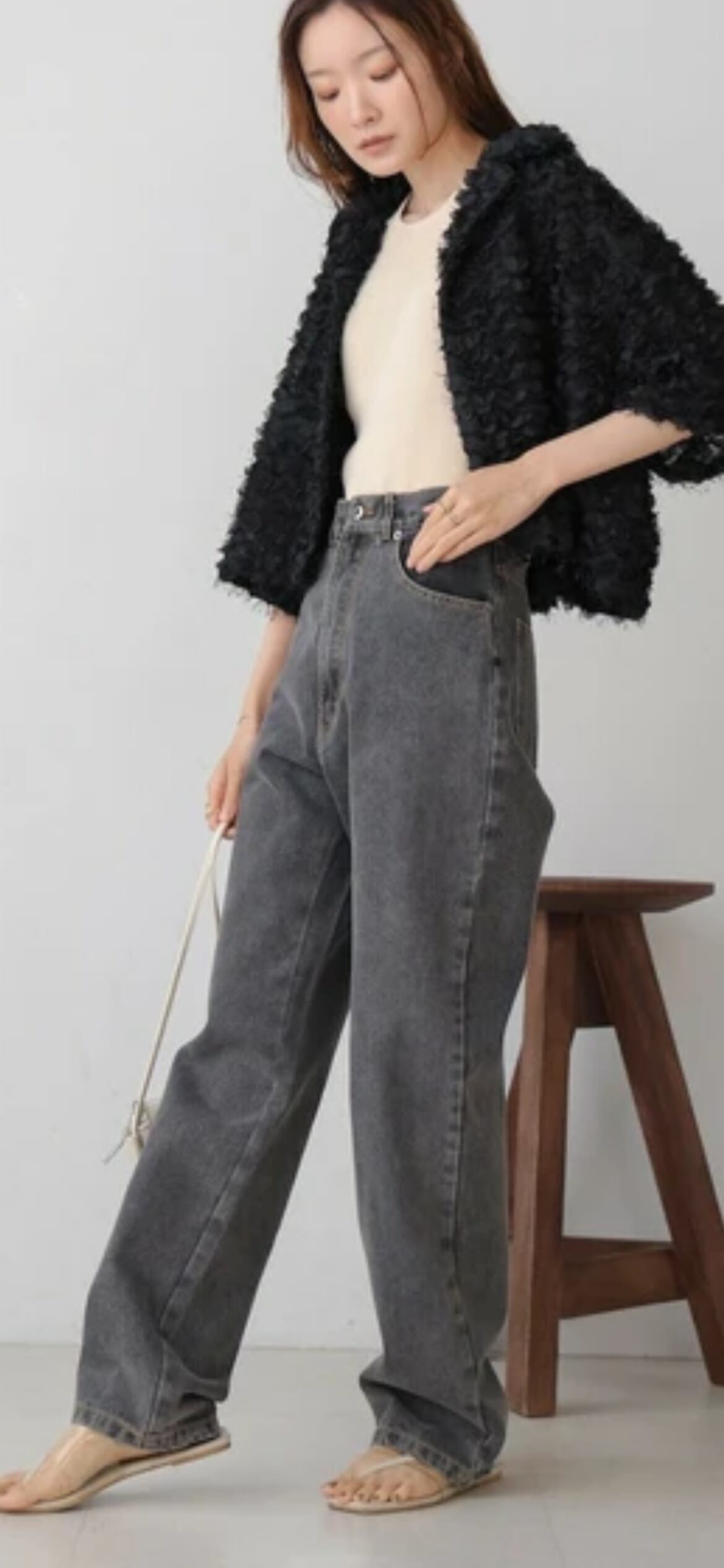 ボリューミーなシルエットでゴージャスな印象のショートアウター。