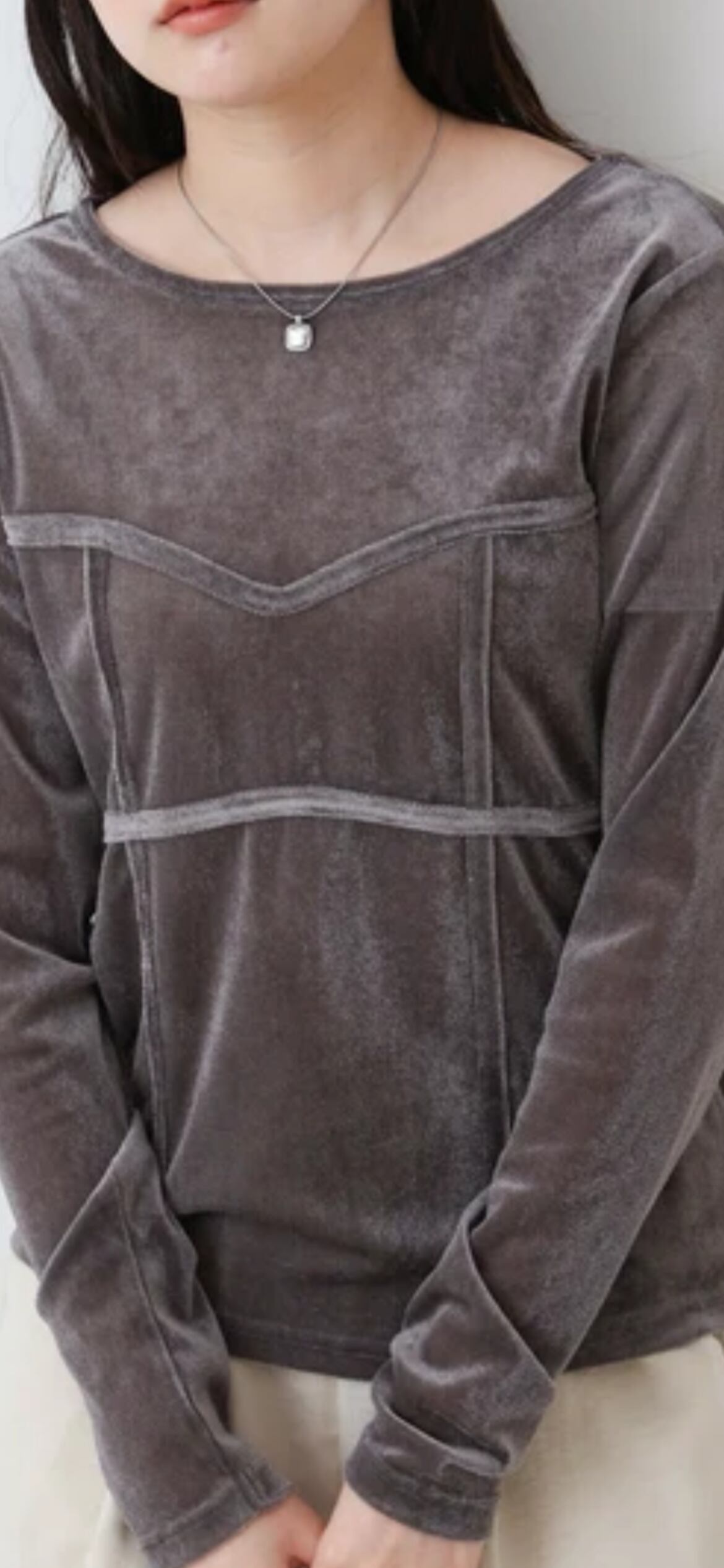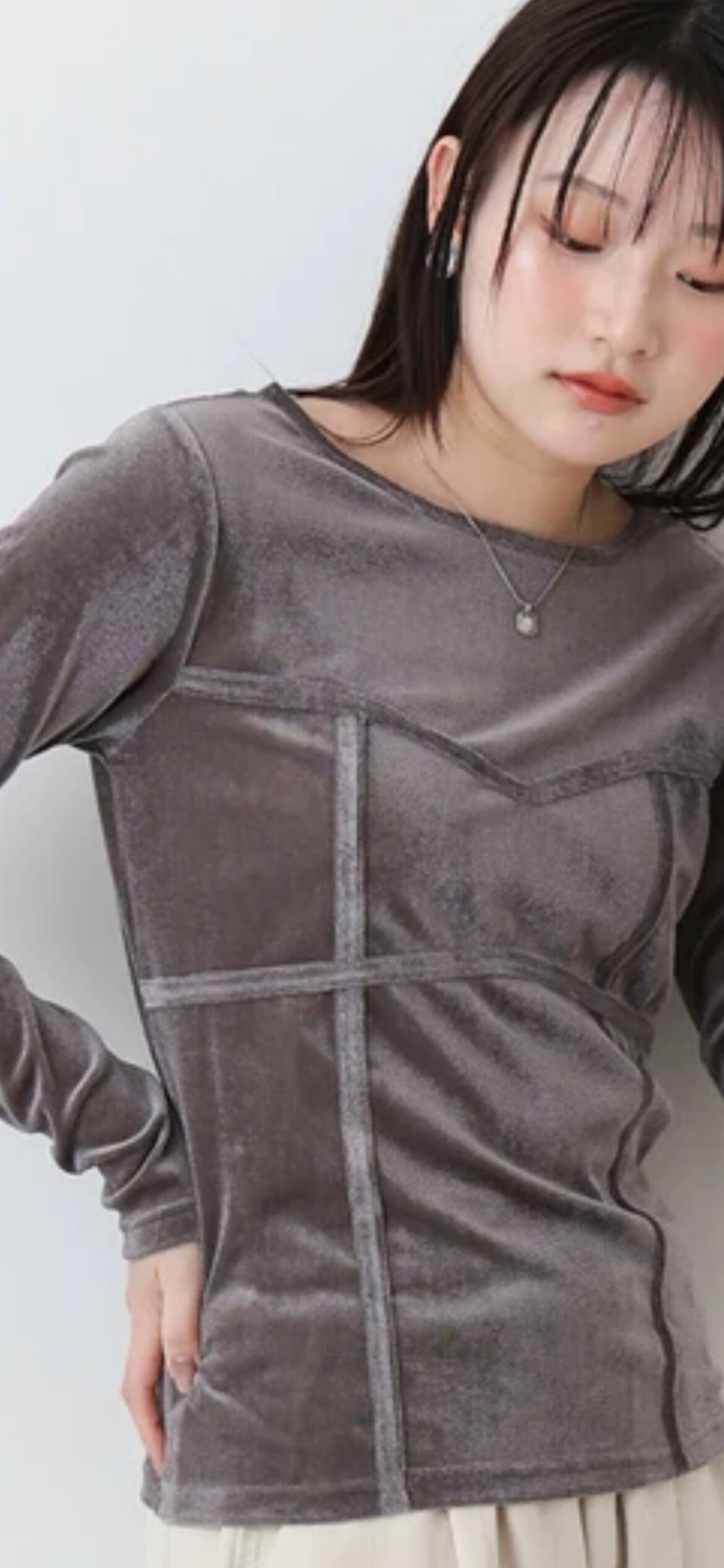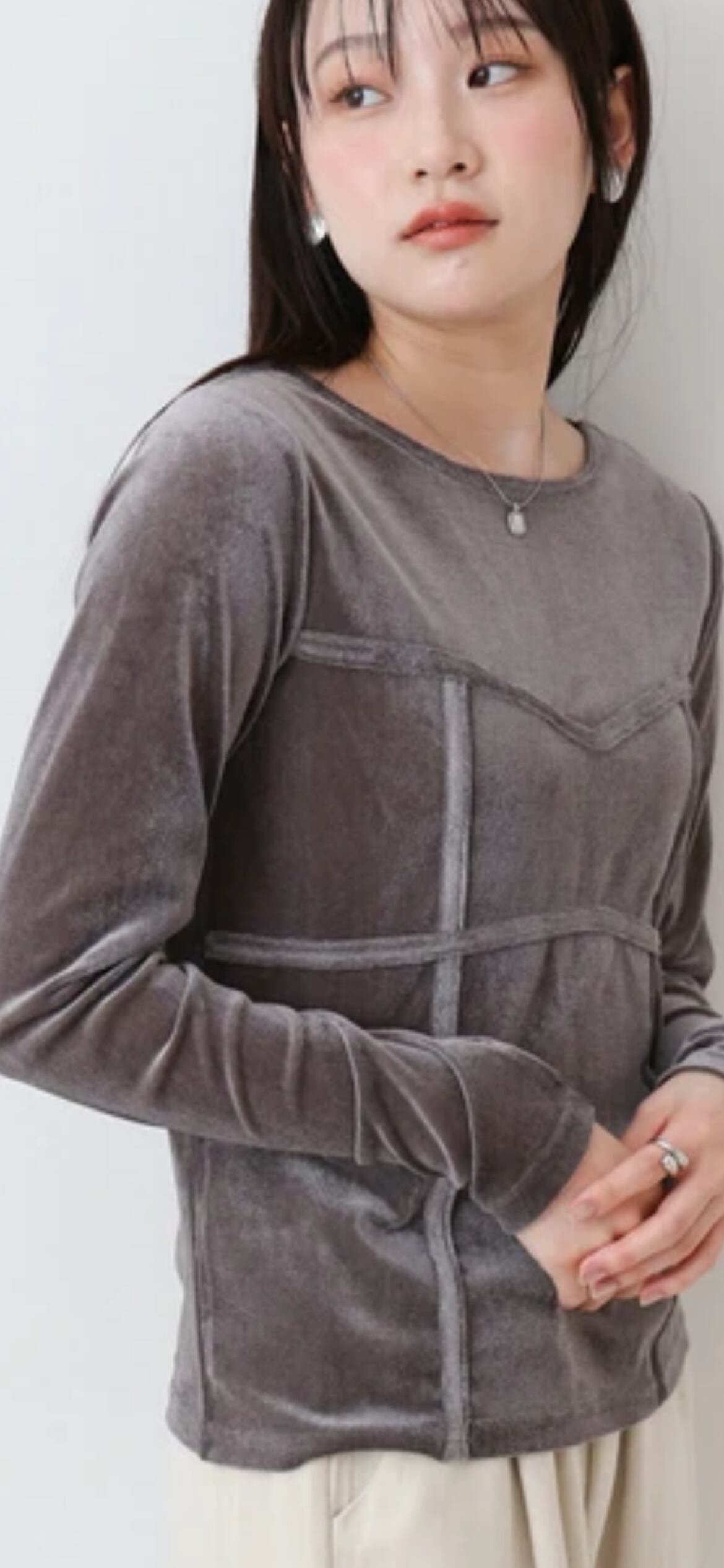 ストレッチ性のある素材で着心地よくご着用いただけます。ベロアもチクチク感がない柔らかめな質感になっています。