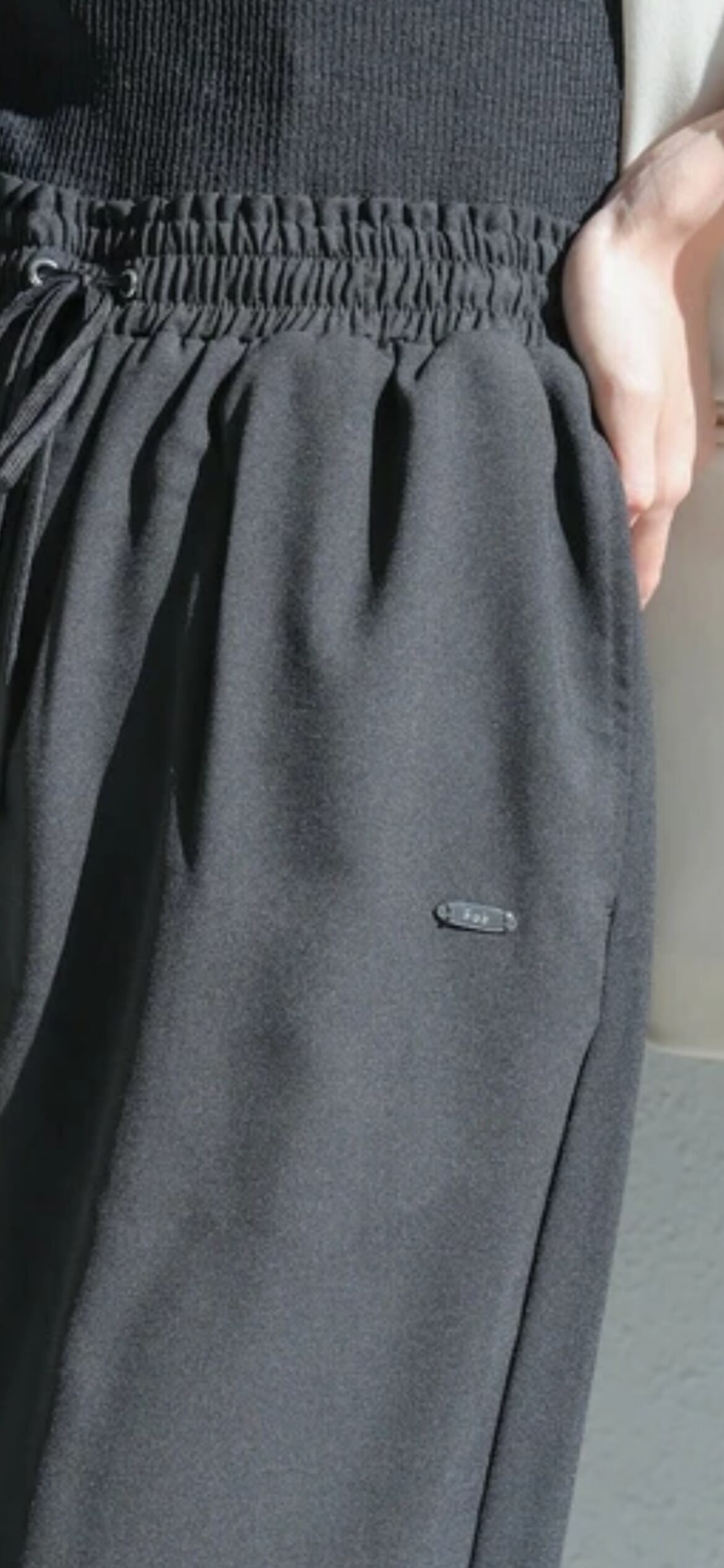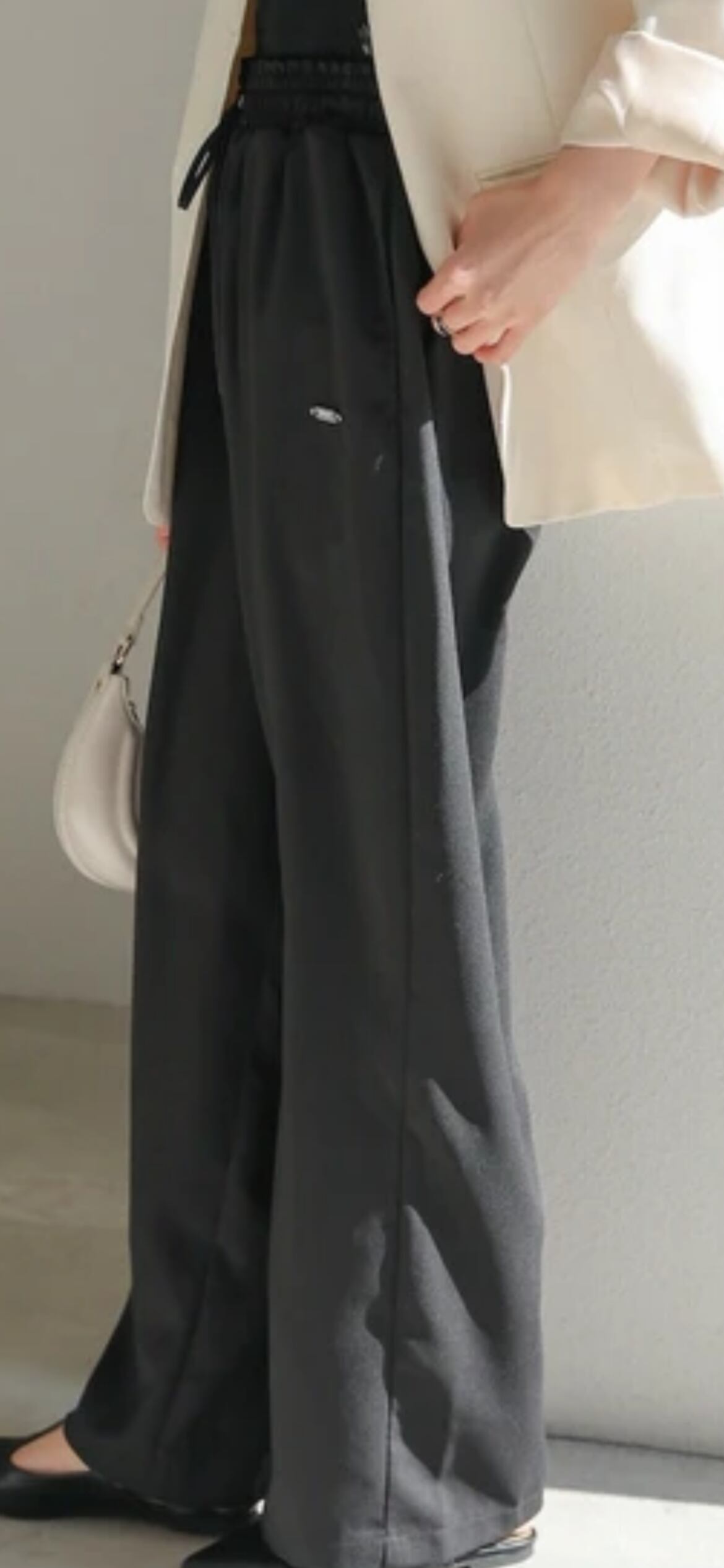 すっきりきちんと見えを叶えながらリラックスして履けるパンツが登場しました!見た目はスラックスのような素材シルエットですが、ウエストは一周ゴム仕様という何とも嬉しいパンツ。丈感も様々な方に合うように数cm単位で微調整しサイズもS・M・Lサイズでの展開にしています。ウエストはゴム+紐で調整しながら穿いていただけるのでサイズに迷ったときは丈感メインで選んでいただいてもいいかもしれないですね♪フロントにはBabオリジナルのプレートも付いていてトップスと合わせたときにちらりと見えるシルバーロゴもポイントです!