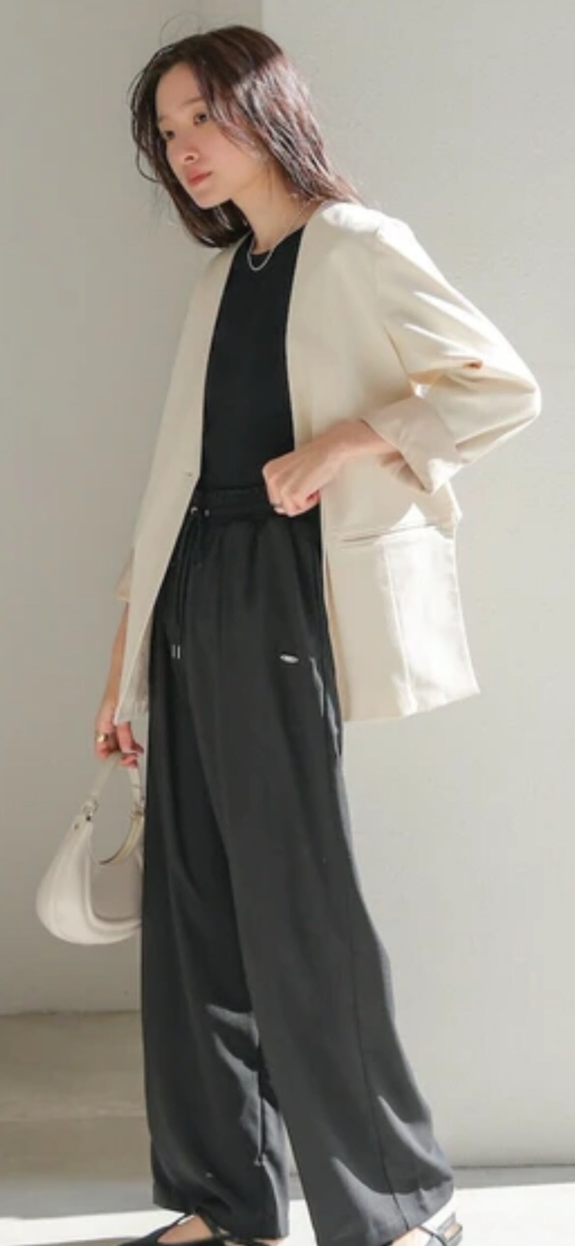 ブラウスと合わせたきちんとスタイルはもちろん、オーバーサイズのスウェットやTシャツなどと合わせてカジュアルダウンしたコーディネートにも合うパンツです。ストレートなシルエットはスラックス見えしてくれるのでオフィスカジュアルにもぴったりなボトムです。