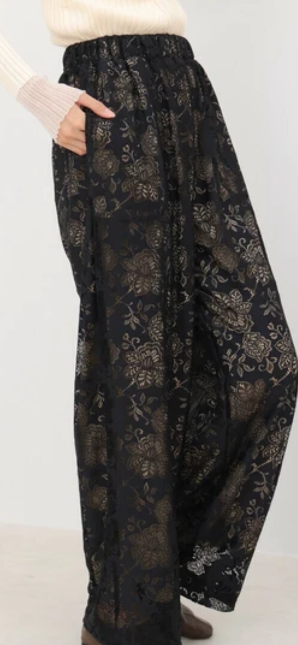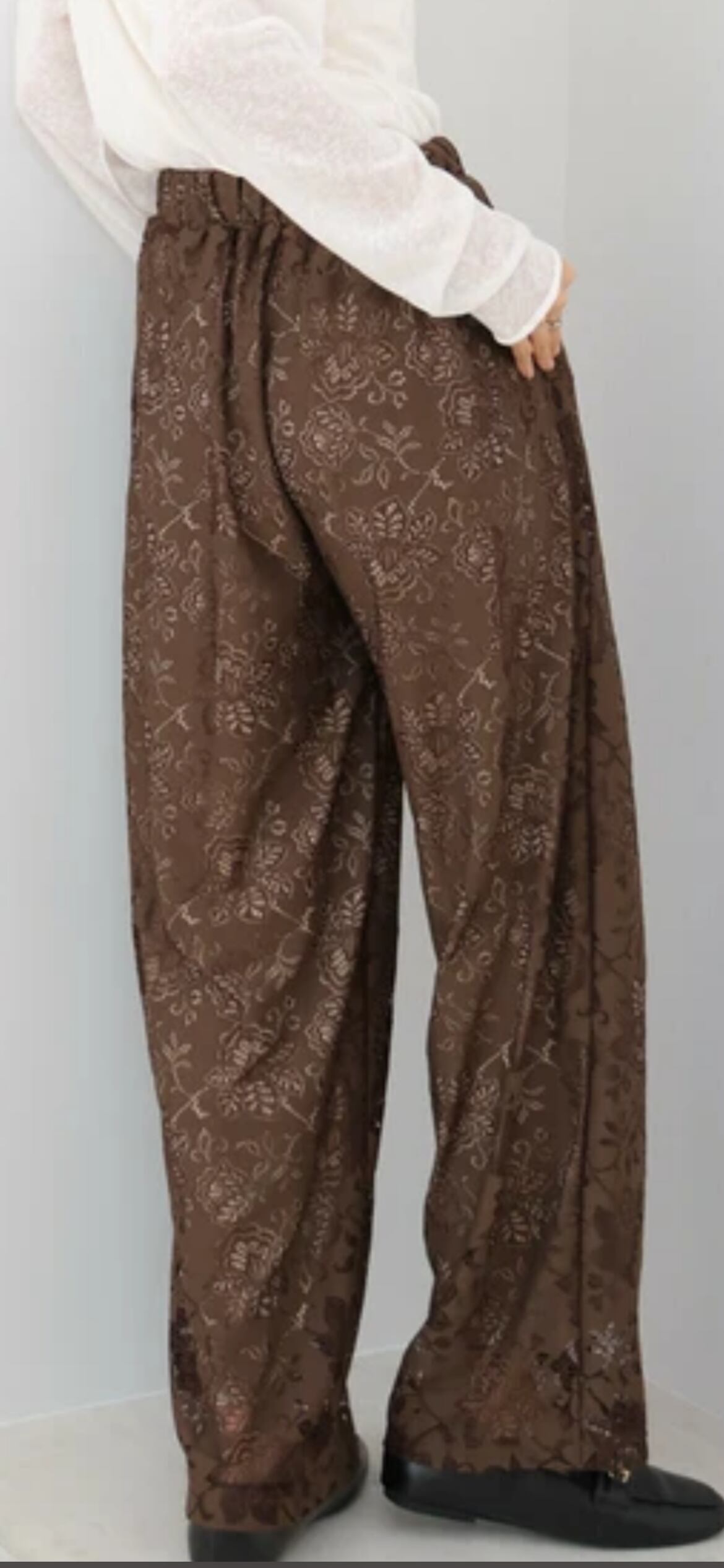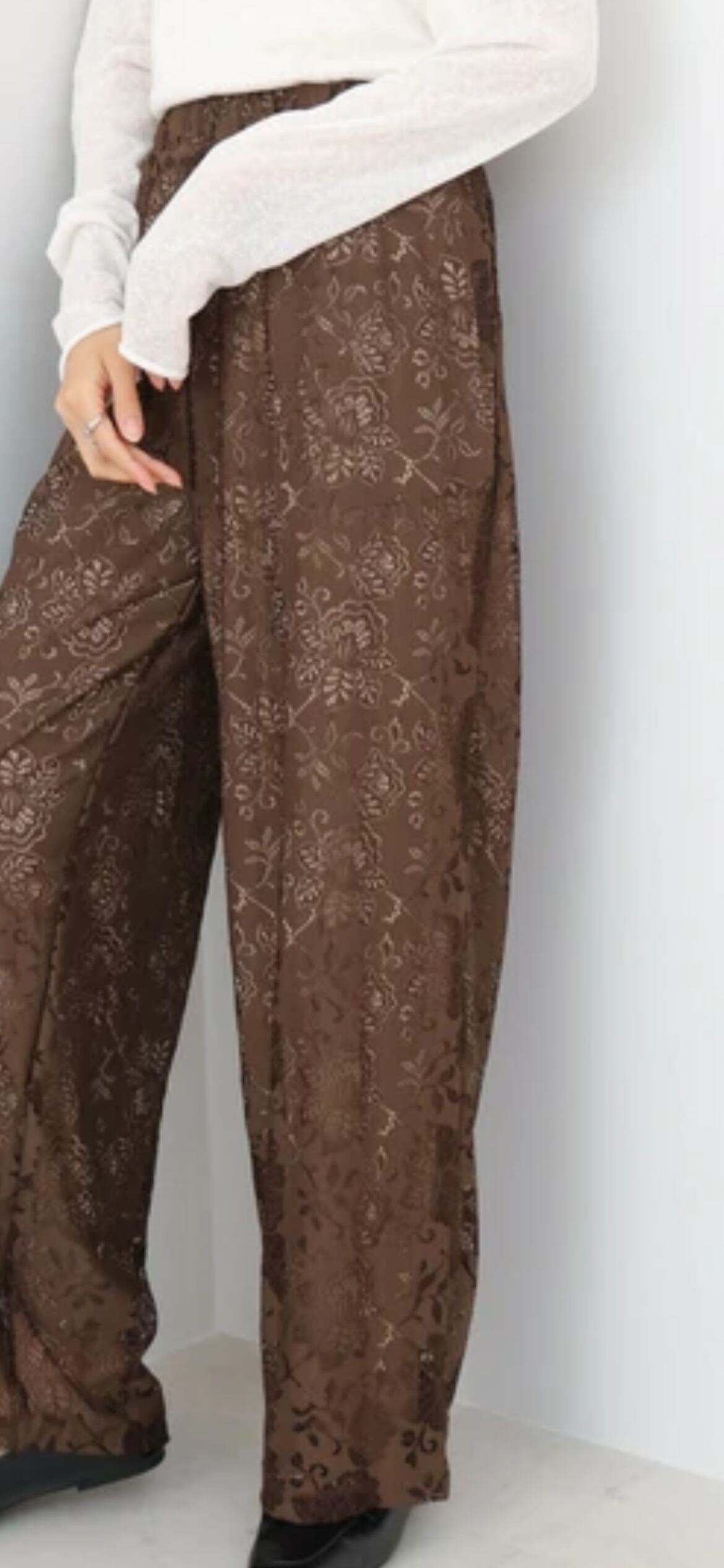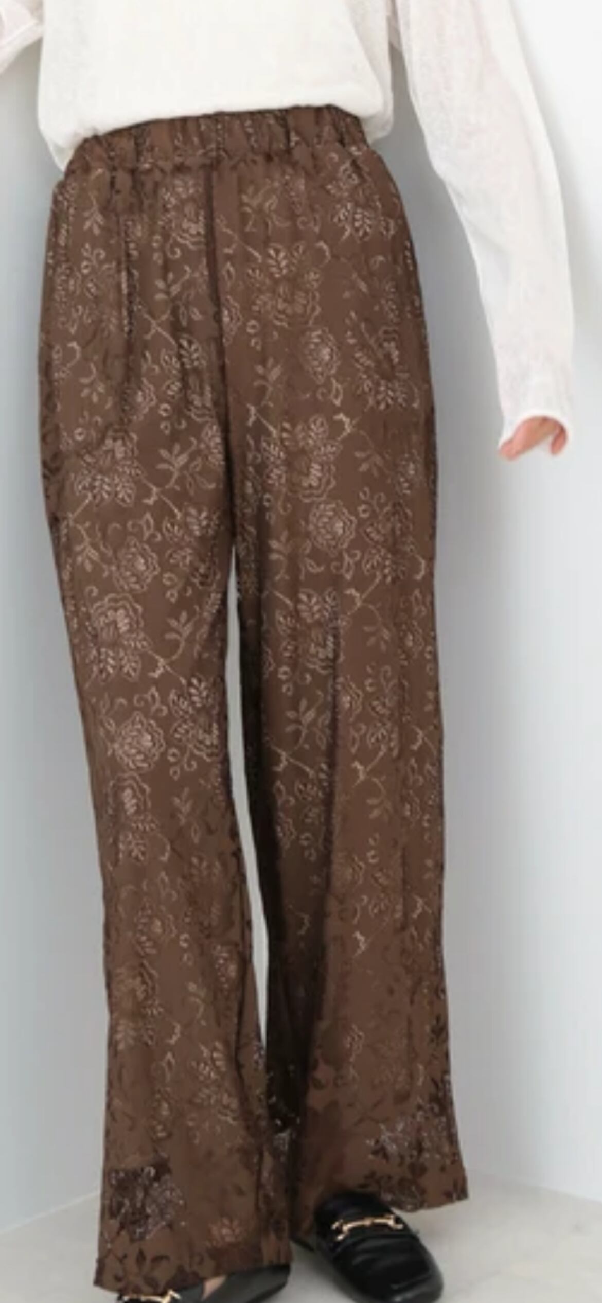 フラワーレース柄が魅力的なリラックスパンツが登場しました。デザイン性があるのでリラックスパンツには見えず、履くだけでこなれ感がでるパンツに仕上がっています。カジュアルながらもレースが上品な印象を与え、様々なシーンでお使いいただけます。