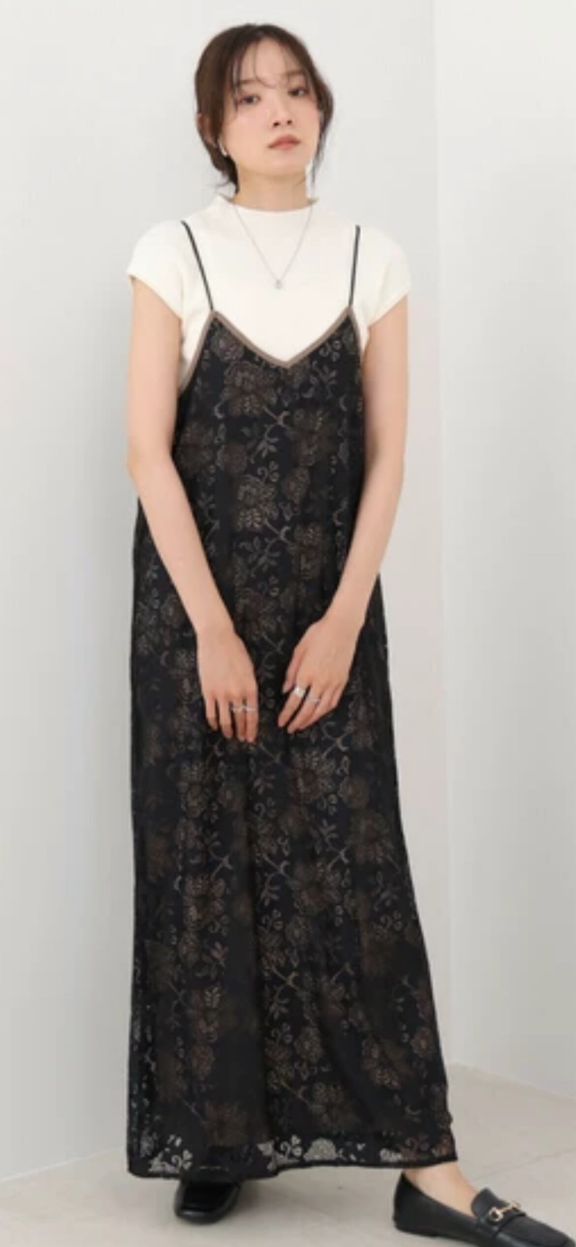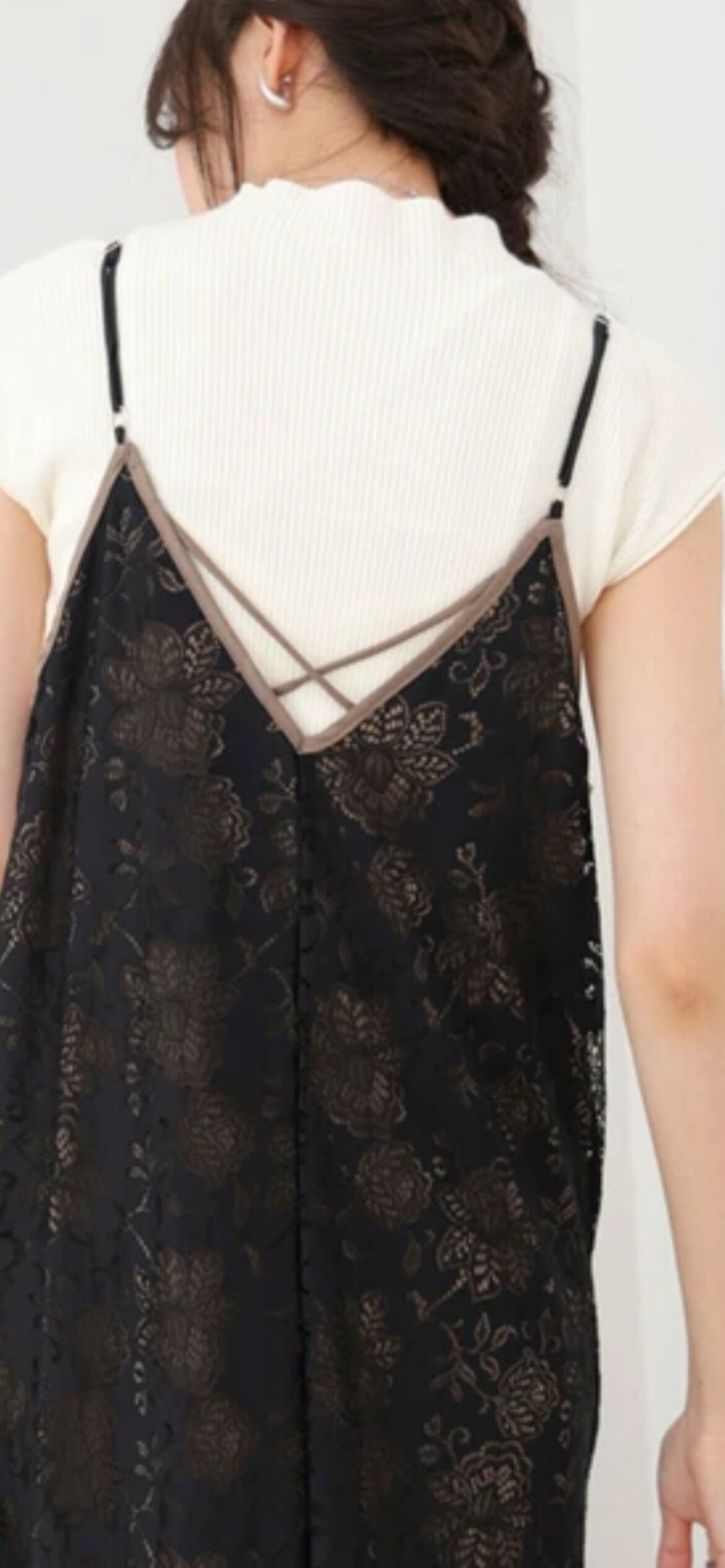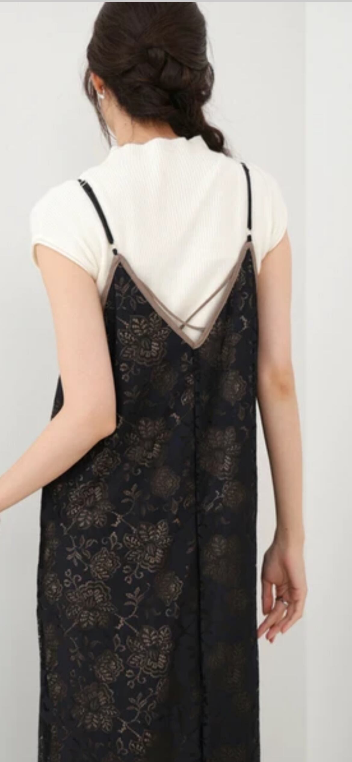 大好評なフラワー柄のワンピースがレースワンピとして登場しました!繊細なお花柄がポイントのキャミワンピになっています。バックデザインはひも部分がクロスされていて一癖あるデザインになっています。裏地部分は滑らかな肌触りにすることで着心地よく仕上げました。トレンドに捉われないフェミニンなフラワー柄のキャミワンピはタイムレスな一着です。