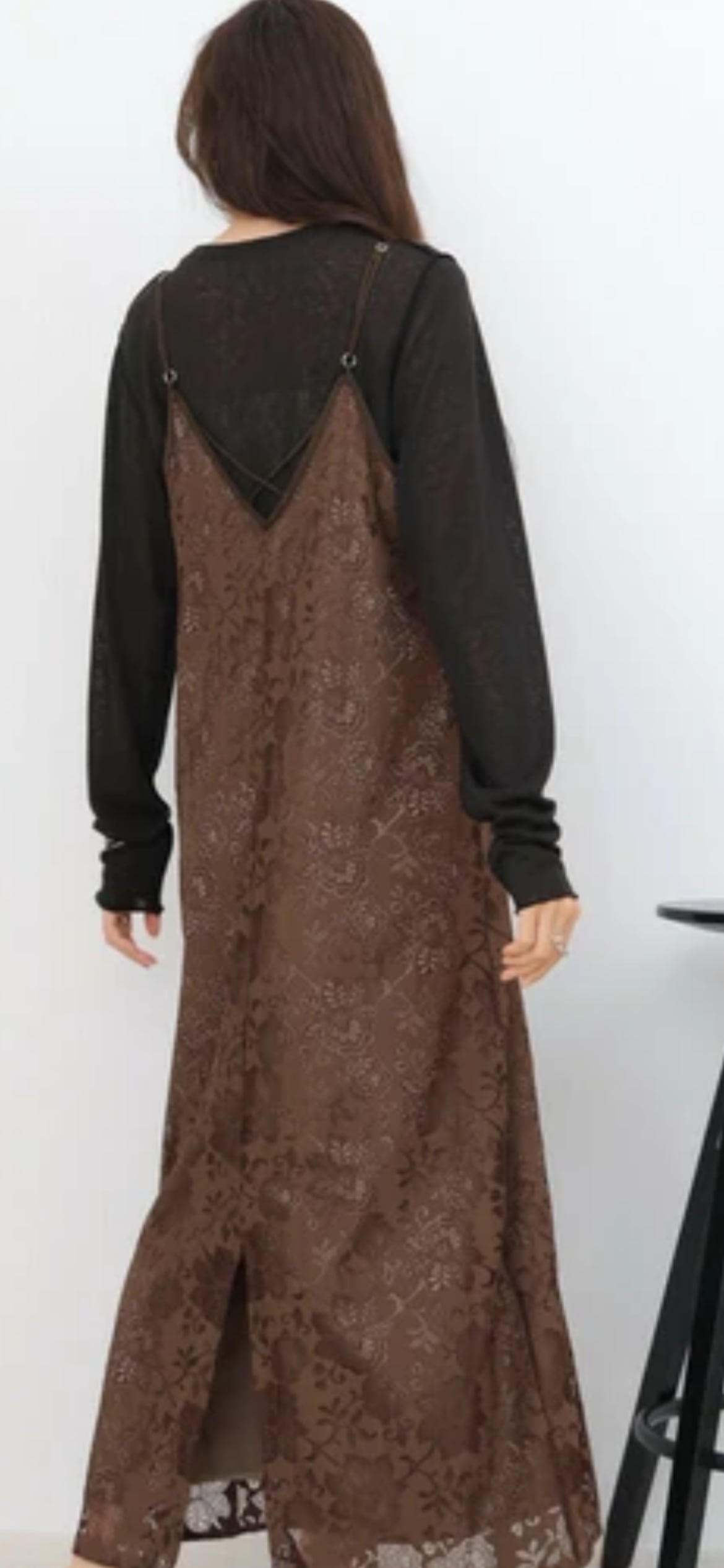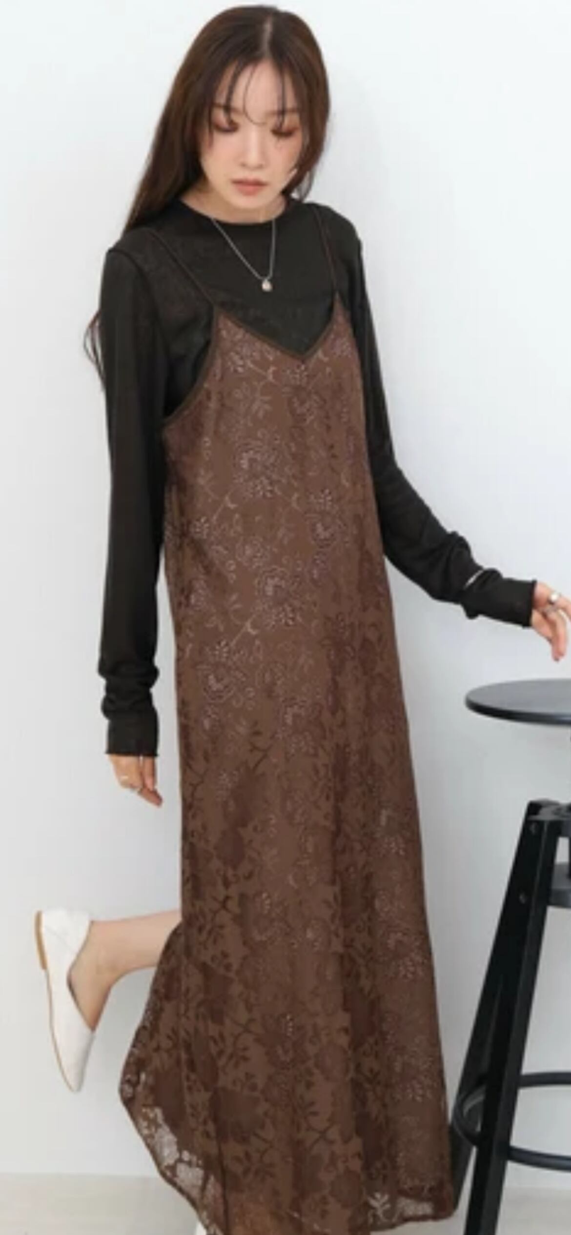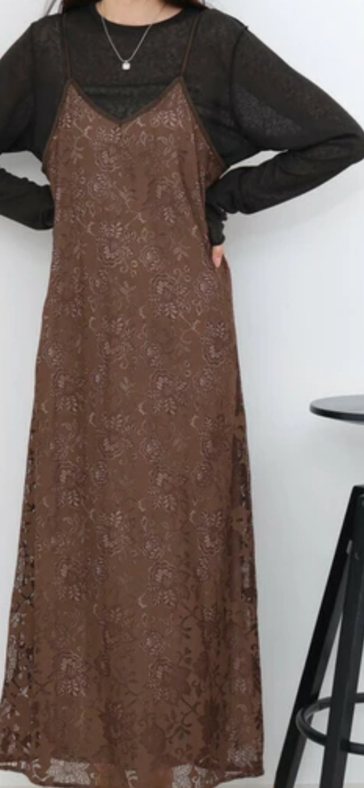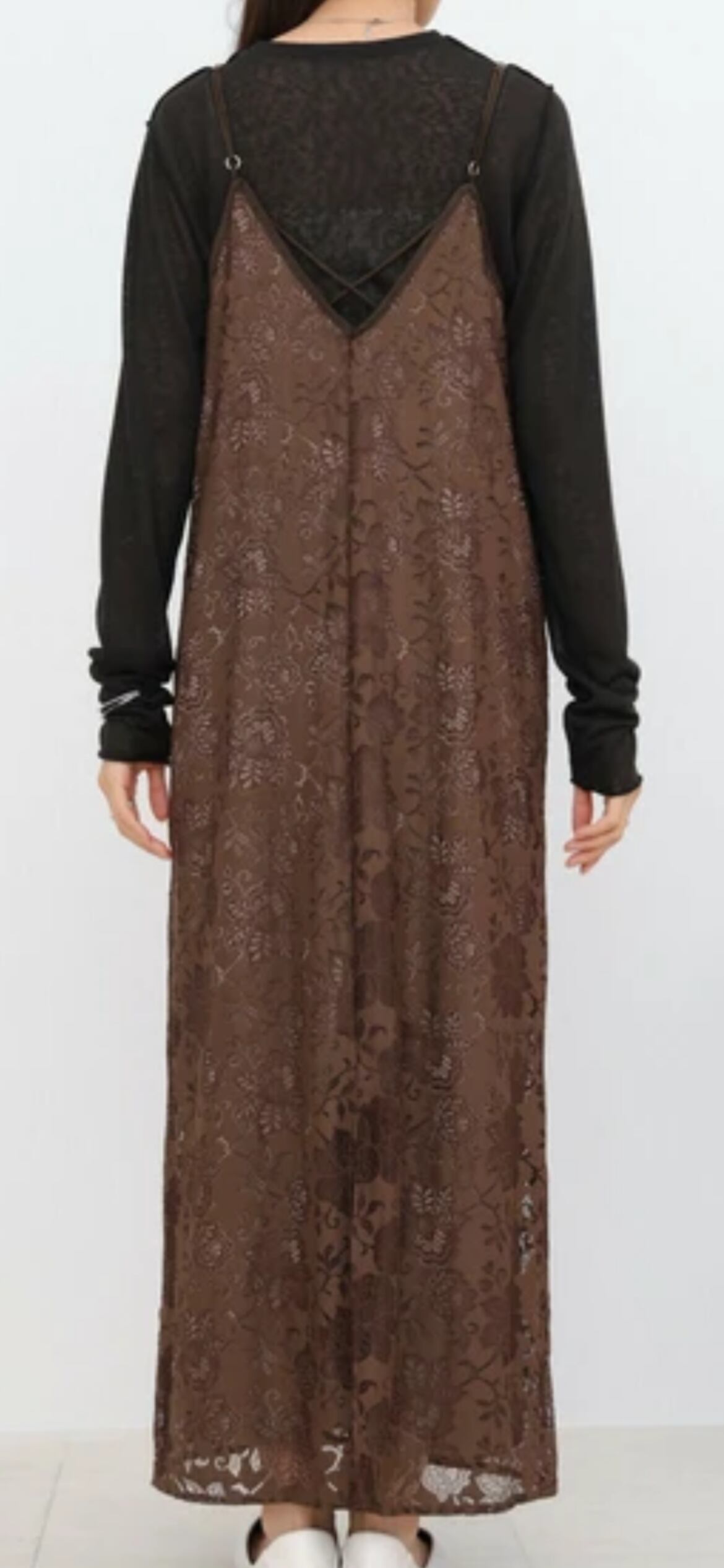 大好評なフラワー柄のワンピースがレースワンピとして登場しました!繊細なお花柄がポイントのキャミワンピになっています。バックデザインはひも部分がクロスされていて一癖あるデザインになっています。裏地部分は滑らかな肌触りにすることで着心地よく仕上げました。トレンドに捉われないフェミニンなフラワー柄のキャミワンピはタイムレスな一着です。