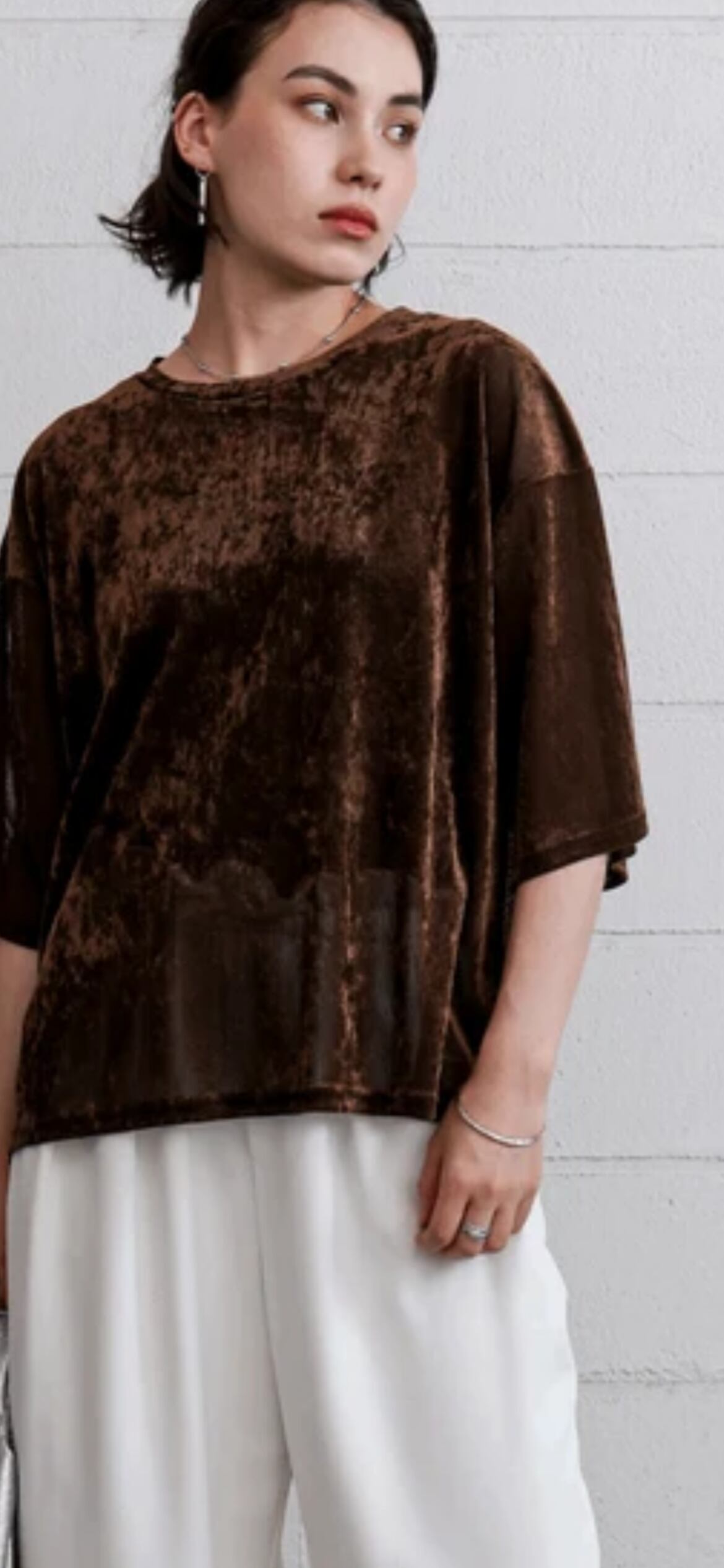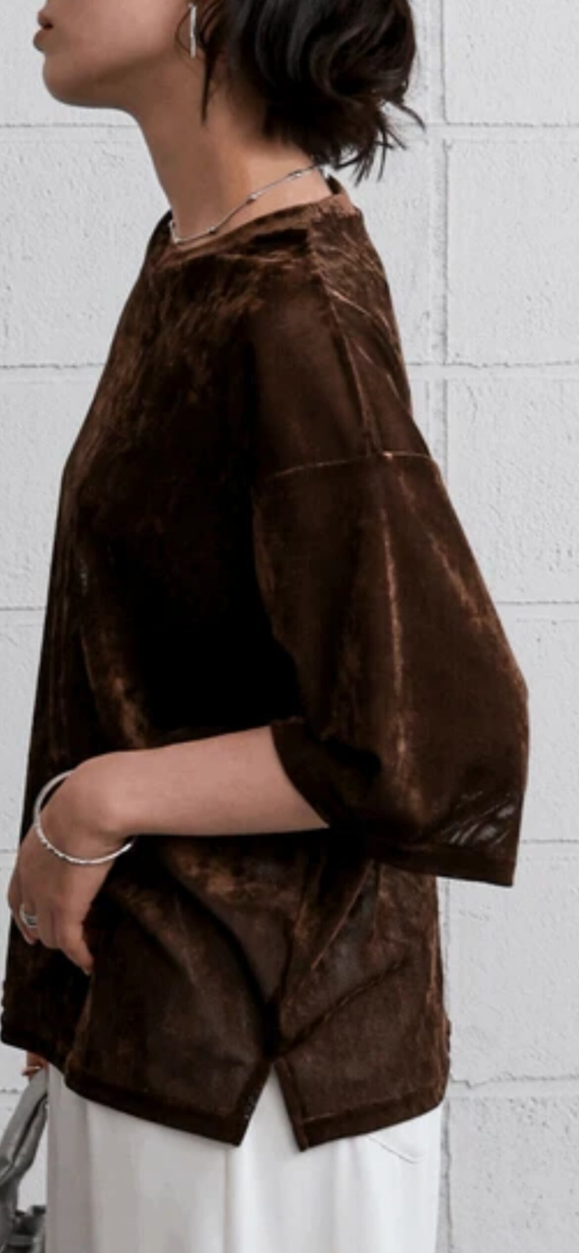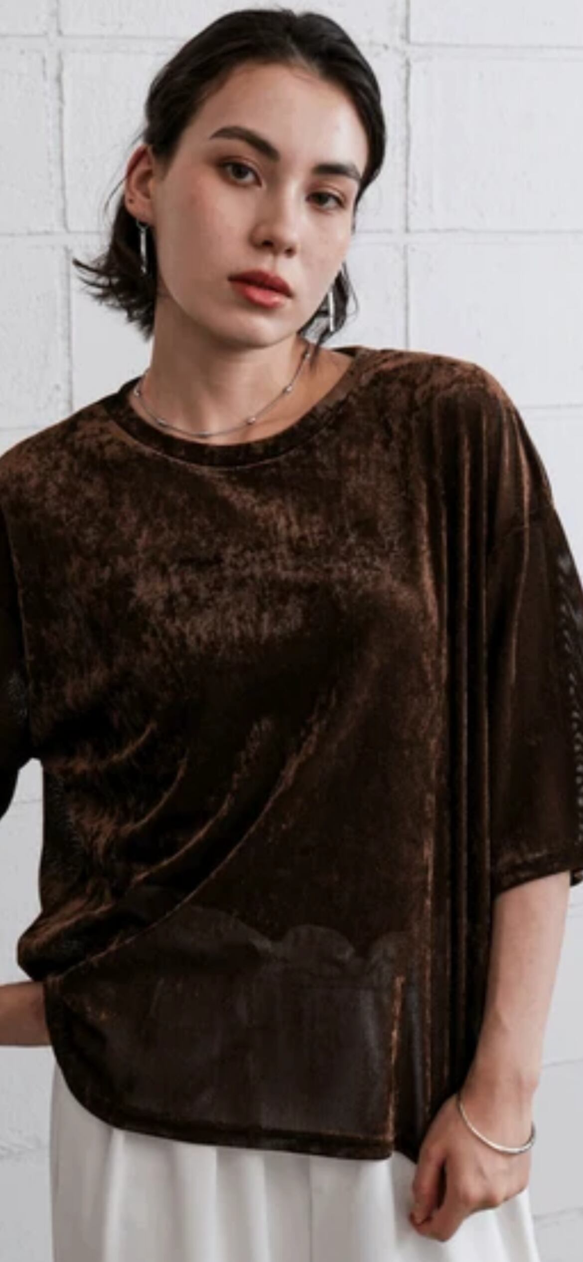 ほんのり透け感のあるシアーベロア素材が、上品な艶と抜け感を演出。