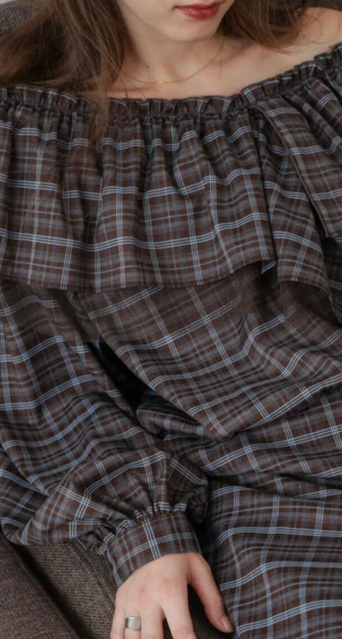 ■素材・成分:チェック:本体:ポリエステル65% レーヨン33% ポリウレタン2% チュール部分:ナイロン100%