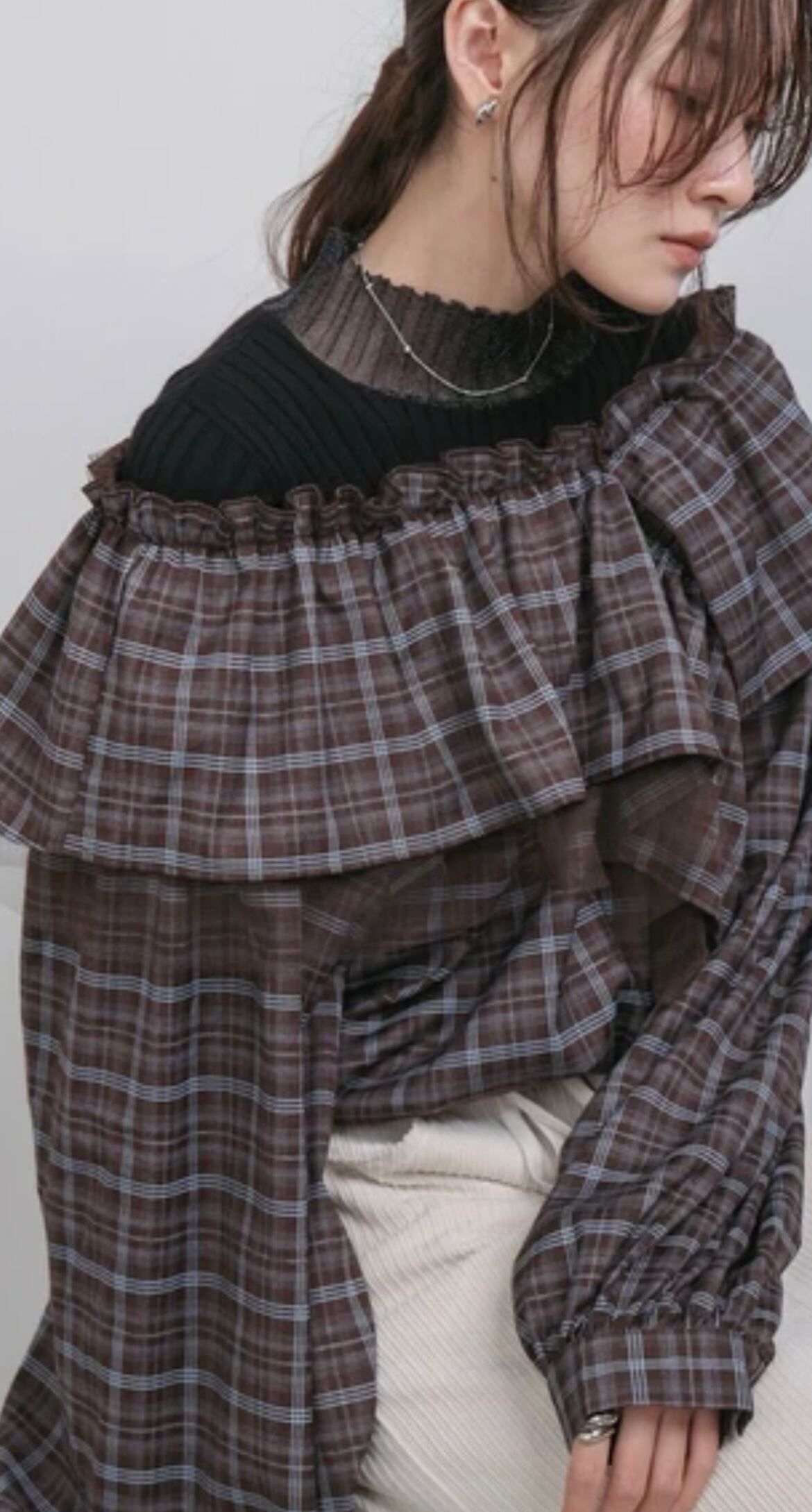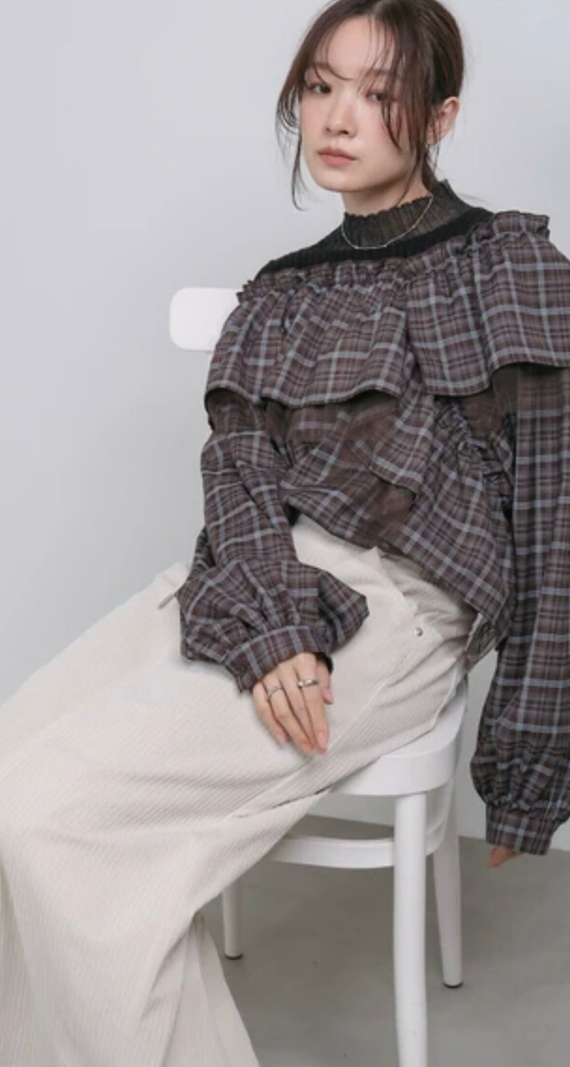 柔らかい質感となめらかな触り心地のフリルブラウスになっています。