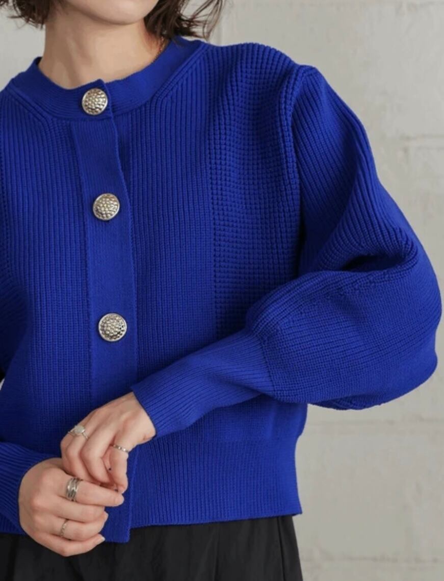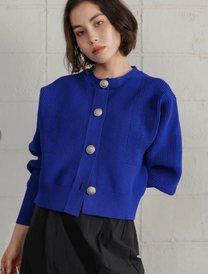 大きめのゴールドボタンが目を惹き、ざっくりとした着やすさでリラックス感を演出。