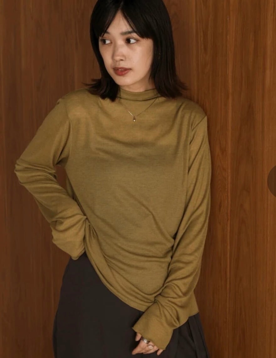 トレンド感のあるボトルネックが、首元に上品さをプラス◎