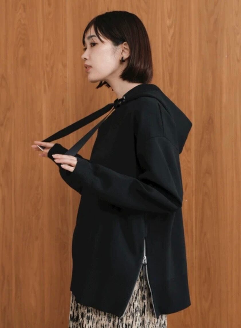 キレイな見ためのニット編み地なので、パーカーデザインでもカジュアルになり過ぎずにキレイめMIXした着こなしに仕上がります。