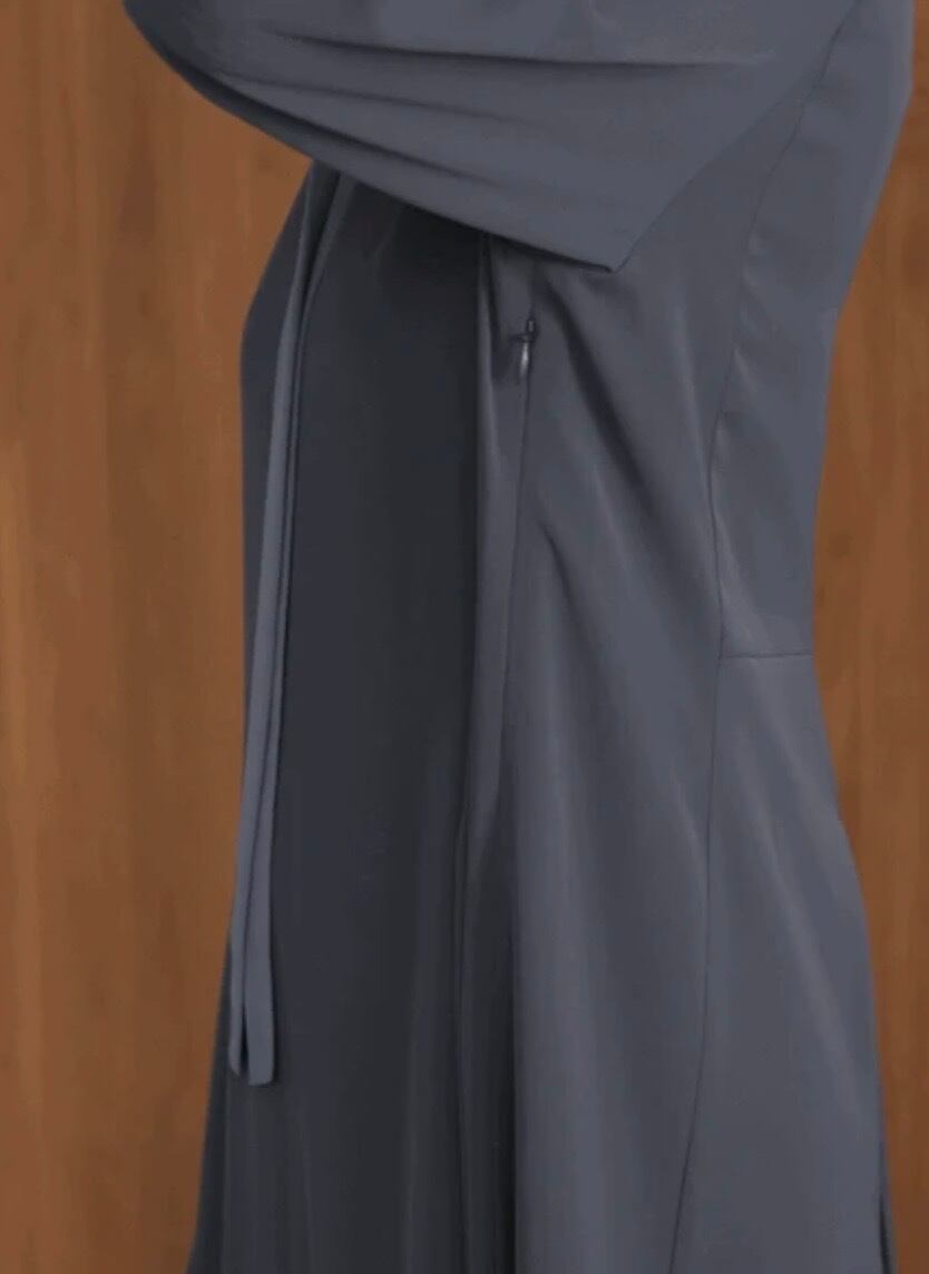 着脱は、前のボタン一つに左脇下コンシールファスナーで、左脇のコンシールを開けて腕を通してから着用してください。
