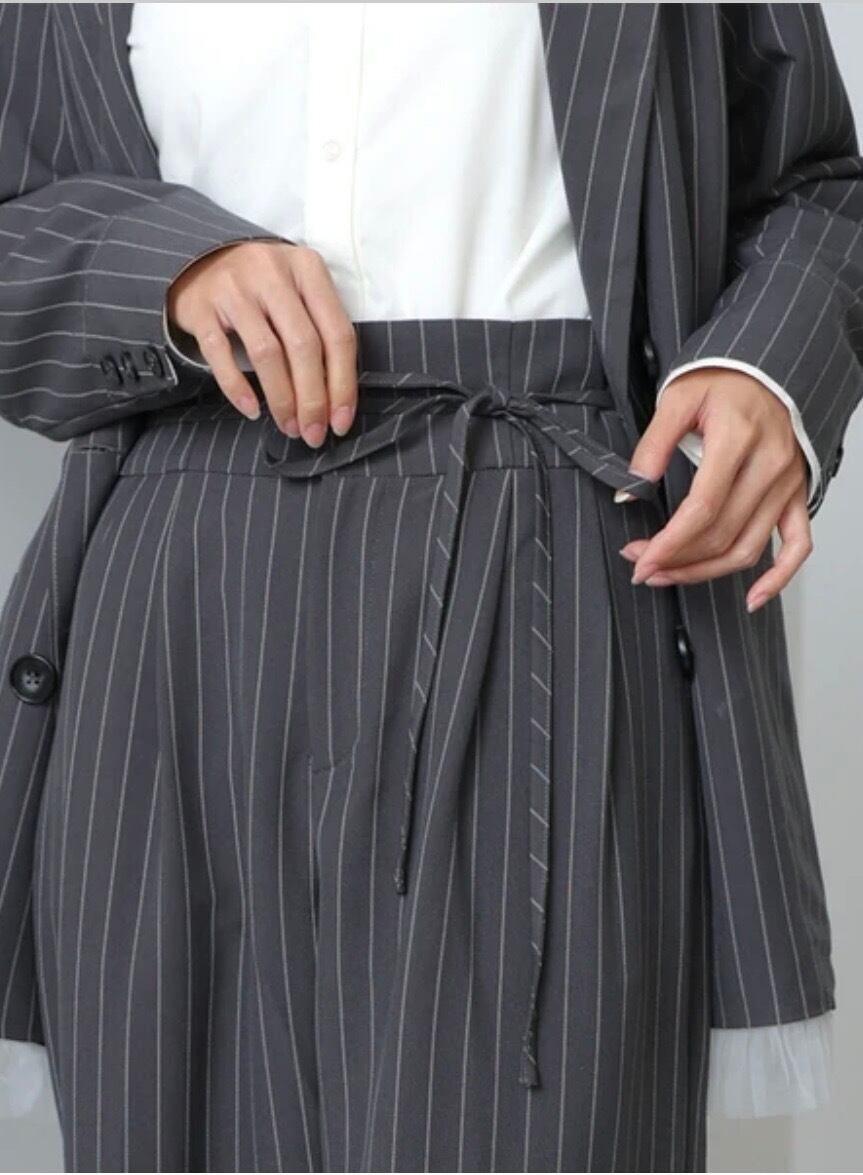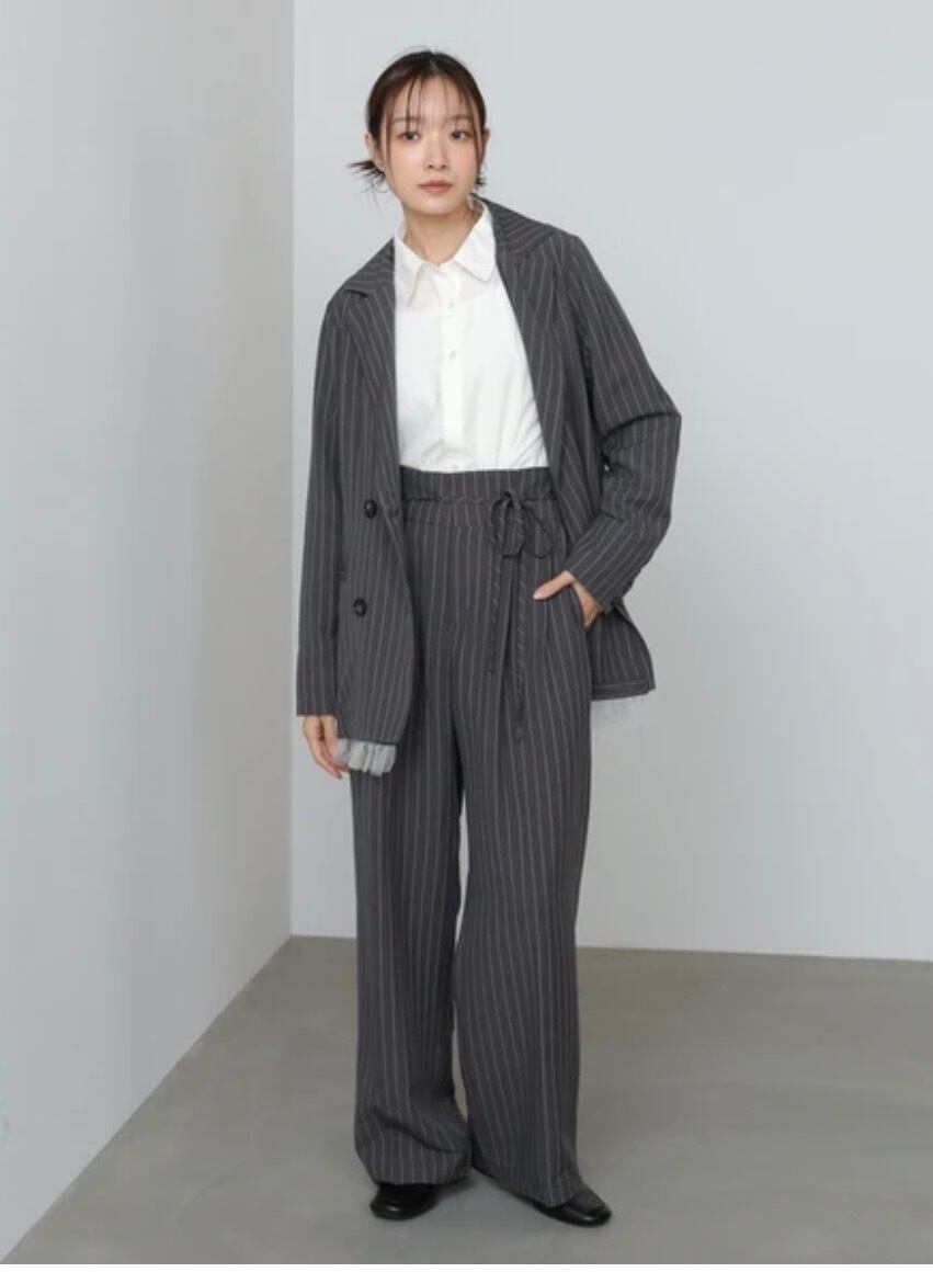 新作 ハイウエストリボン付きストレートパンツ