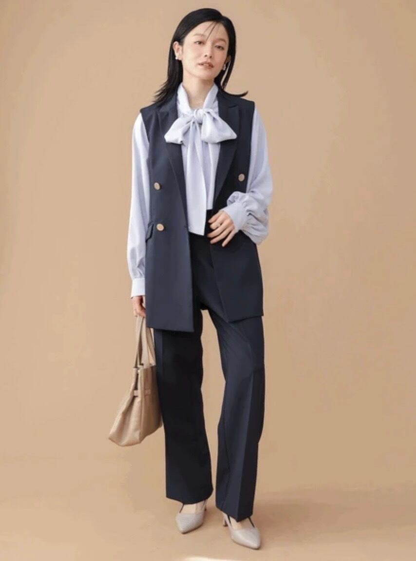 ブラウスやカットソー、ワンピースなど合わせるアイテム次第で印象を変えられ、セレモニーシーンから通勤、きれいめなデイリースタイルまで幅広く活躍。