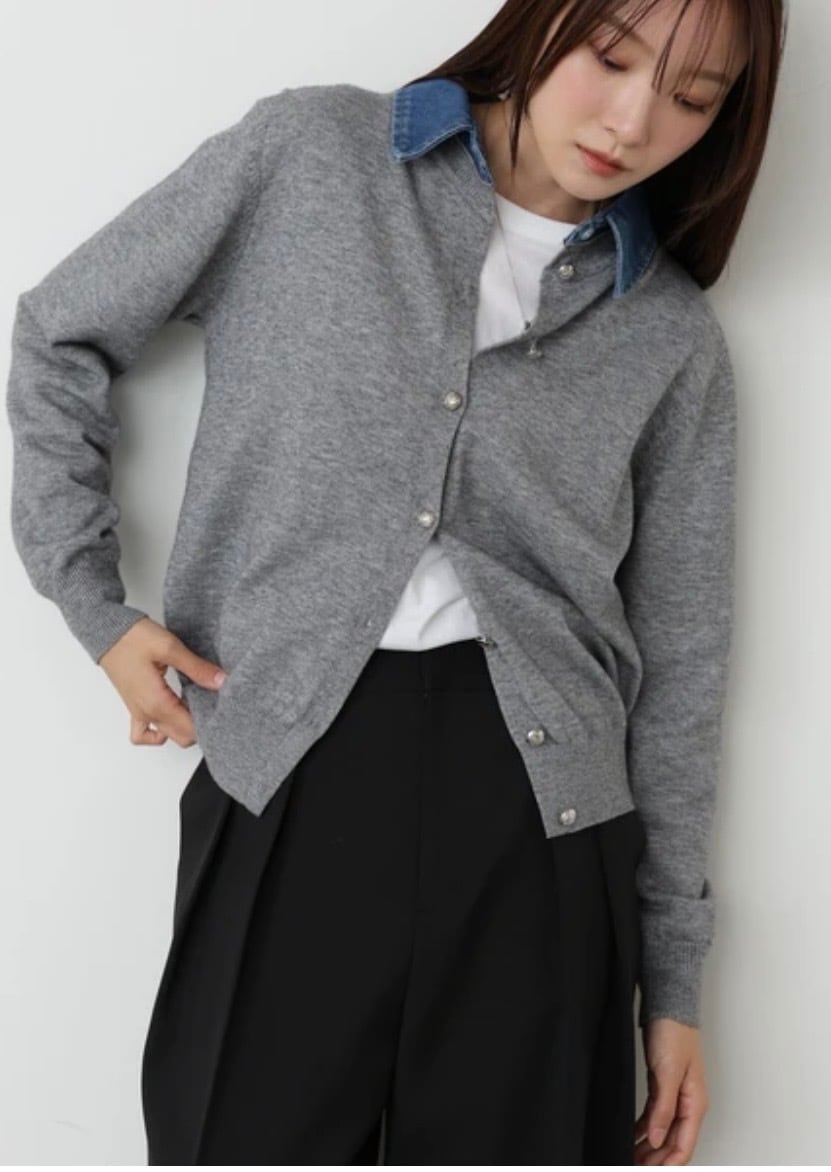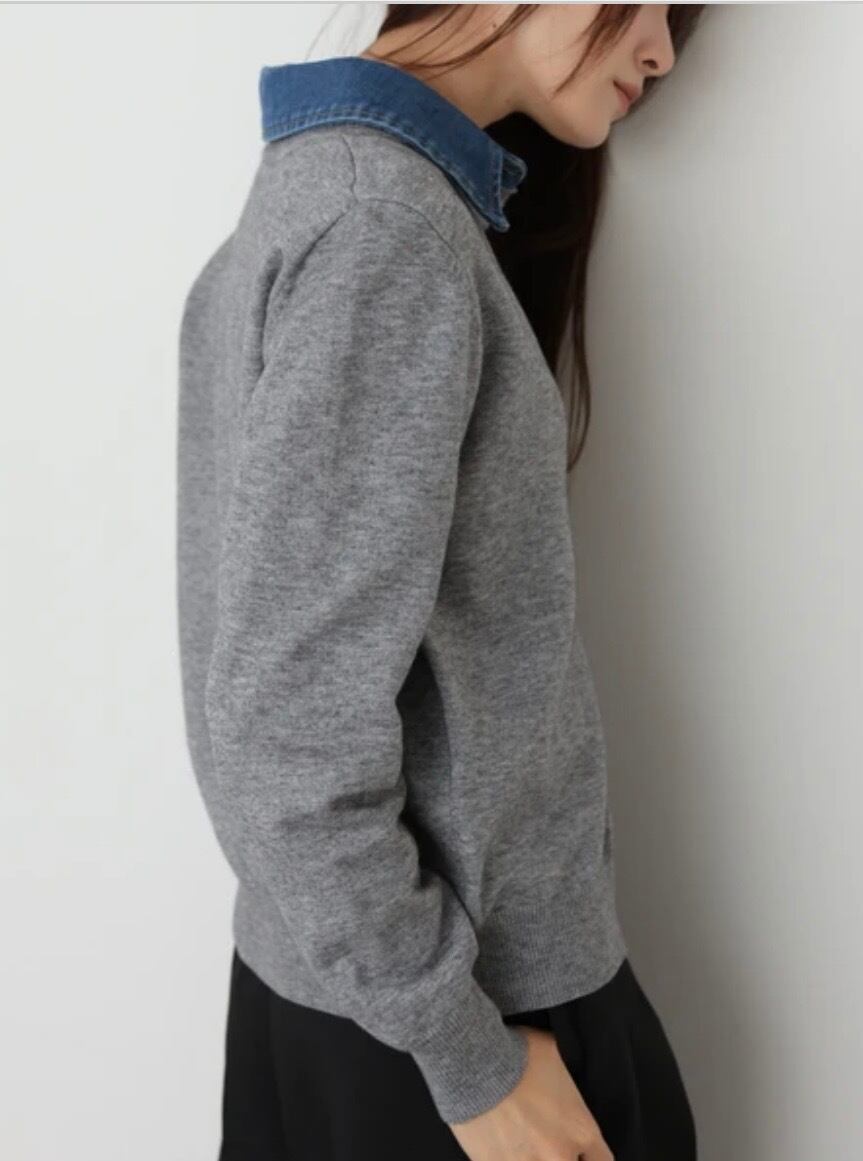 大人気の為再入荷 新作襟デニムドッキングニットカー ディガン