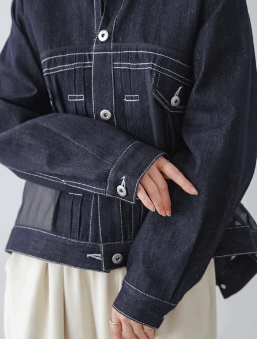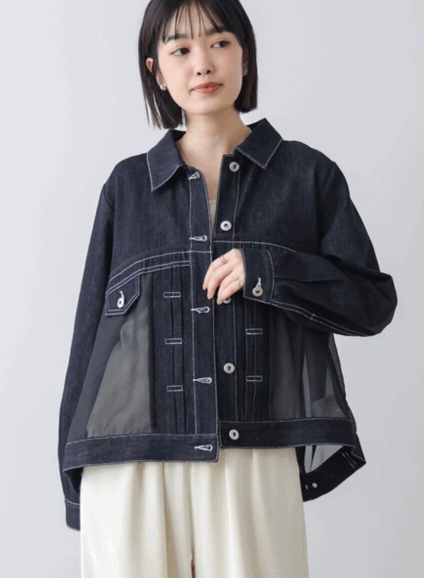 デニムとメッシュ生地のコンビネーションが今期イチオシのトレンド感のあるデニムジャケットです。