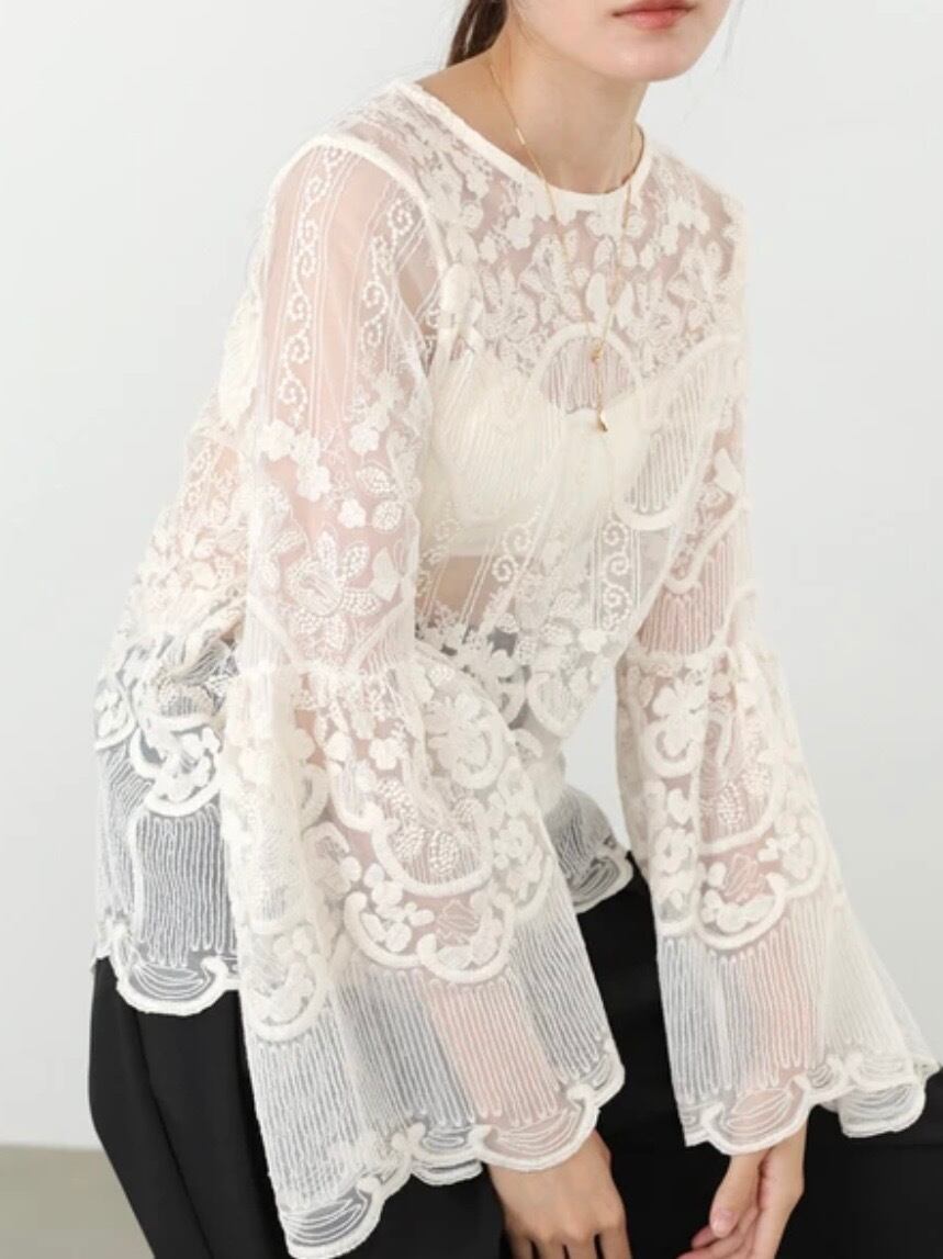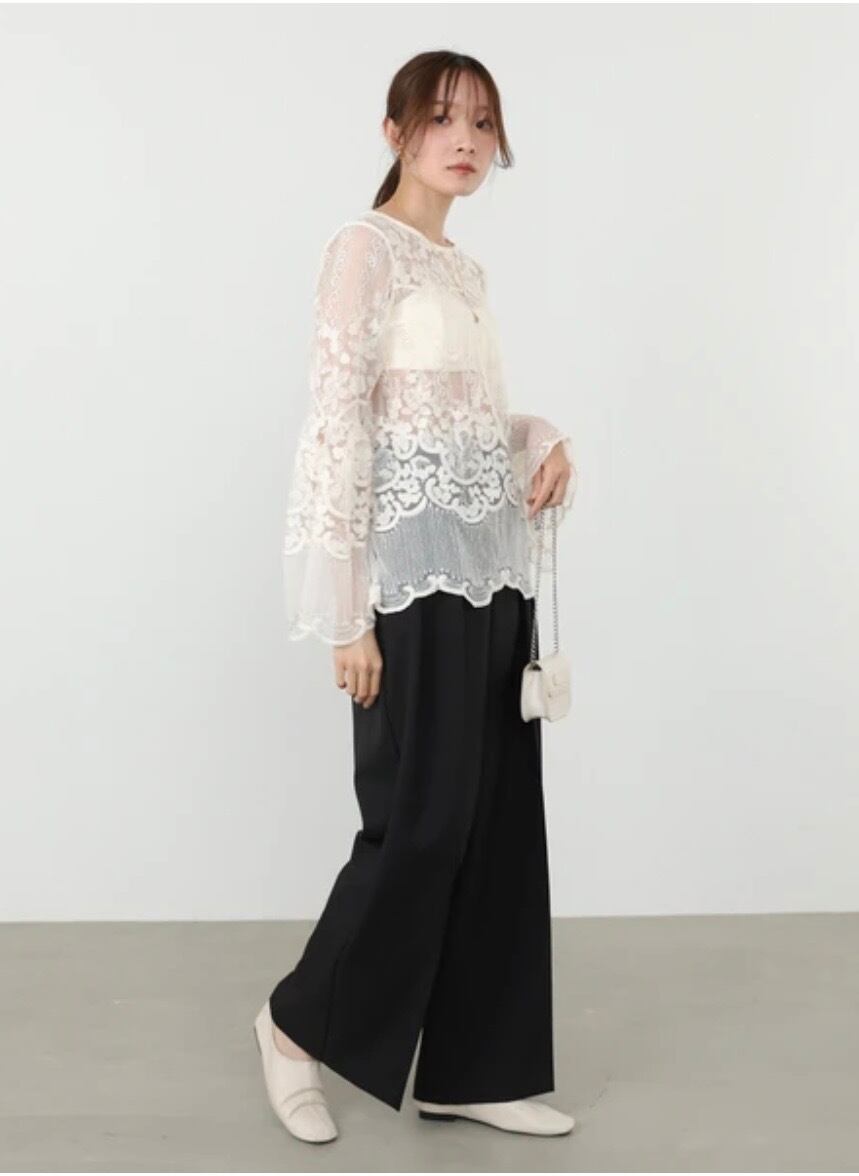 やわらかな肌触りと軽やかさを兼ね備えた素材感。通気性も良く、ロングシーズン着用しやすいのが魅力です。インナー次第で表情が変わるのもレースならでは。