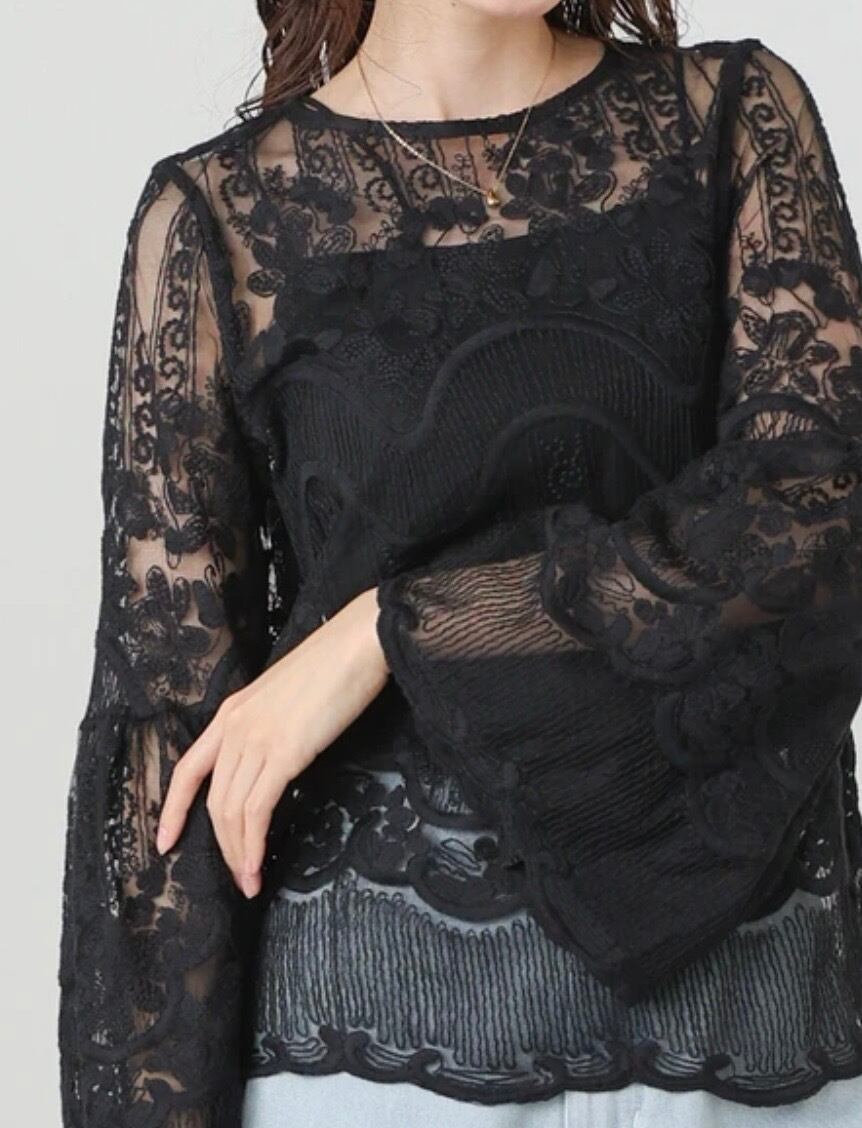 繊細なレースが目を惹く、華やぎトップス。立体感のある柄とスカラップデザインが、女性らしさを引き立ててくれる1枚です。程よくゆとりのあるシルエットで、甘くなりすぎず大人っぽく着られるのもポイント。アイボリーは柔らかな印象に、ブラックはシックで上品な雰囲気に仕上がります。