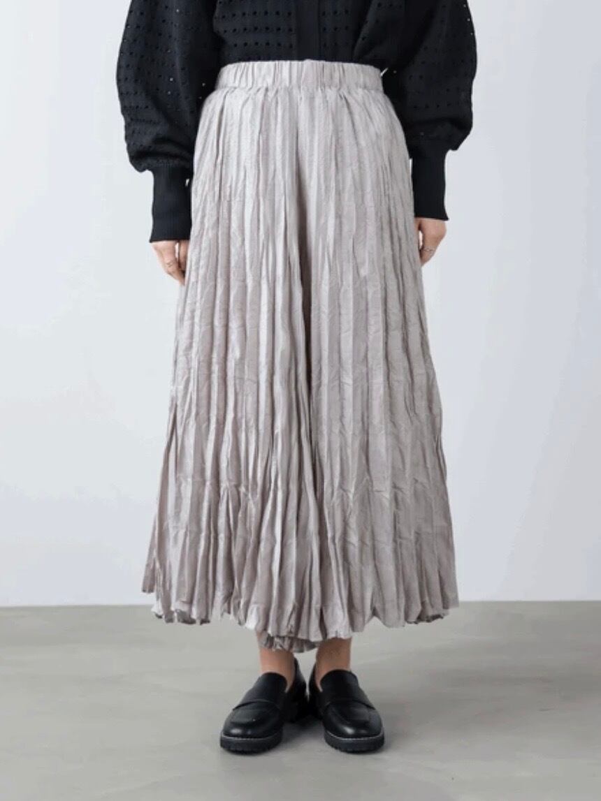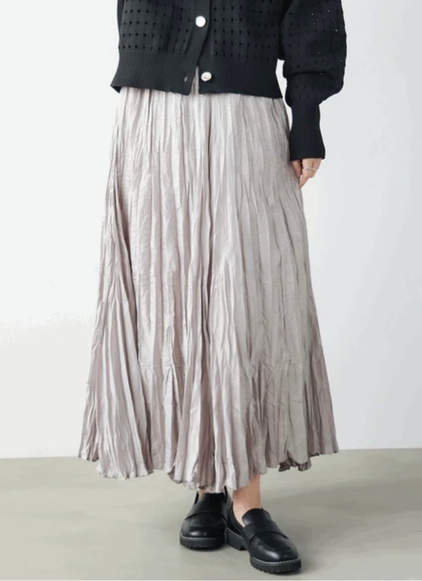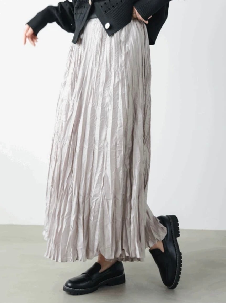 動くたびに揺れる分量感と落ち感のある素材で、広がりすぎず大人っぽく仕上げました。