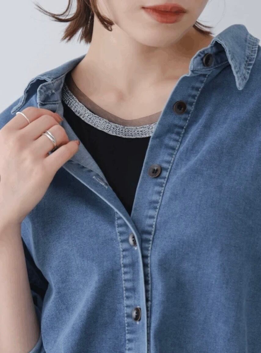 一枚インナーに入れるだけで、ネックレスいらずで顔まわりを明るく見せてくれます。