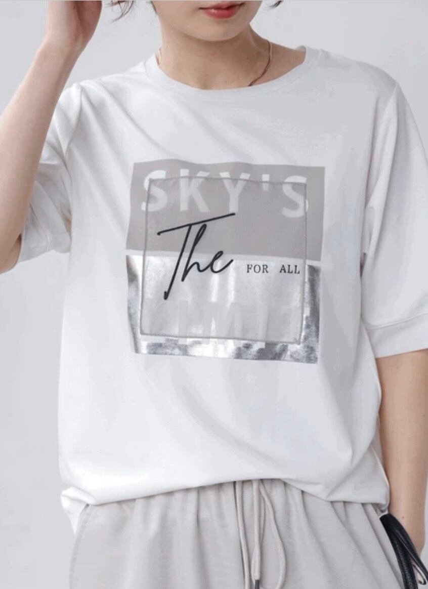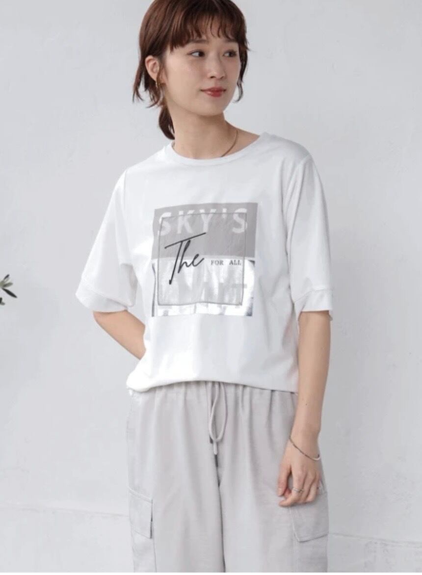 ロゴの上からオーガンジーを重ねることでカジュアル過ぎず、デザイン物が好きな方にもオススメのロゴTシャツです。