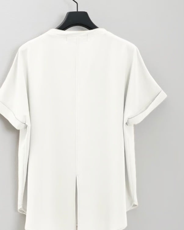 ストレッチジョーゼットのしなやかな落ち感が美しい、布仕立てのドルマンTシャツ。