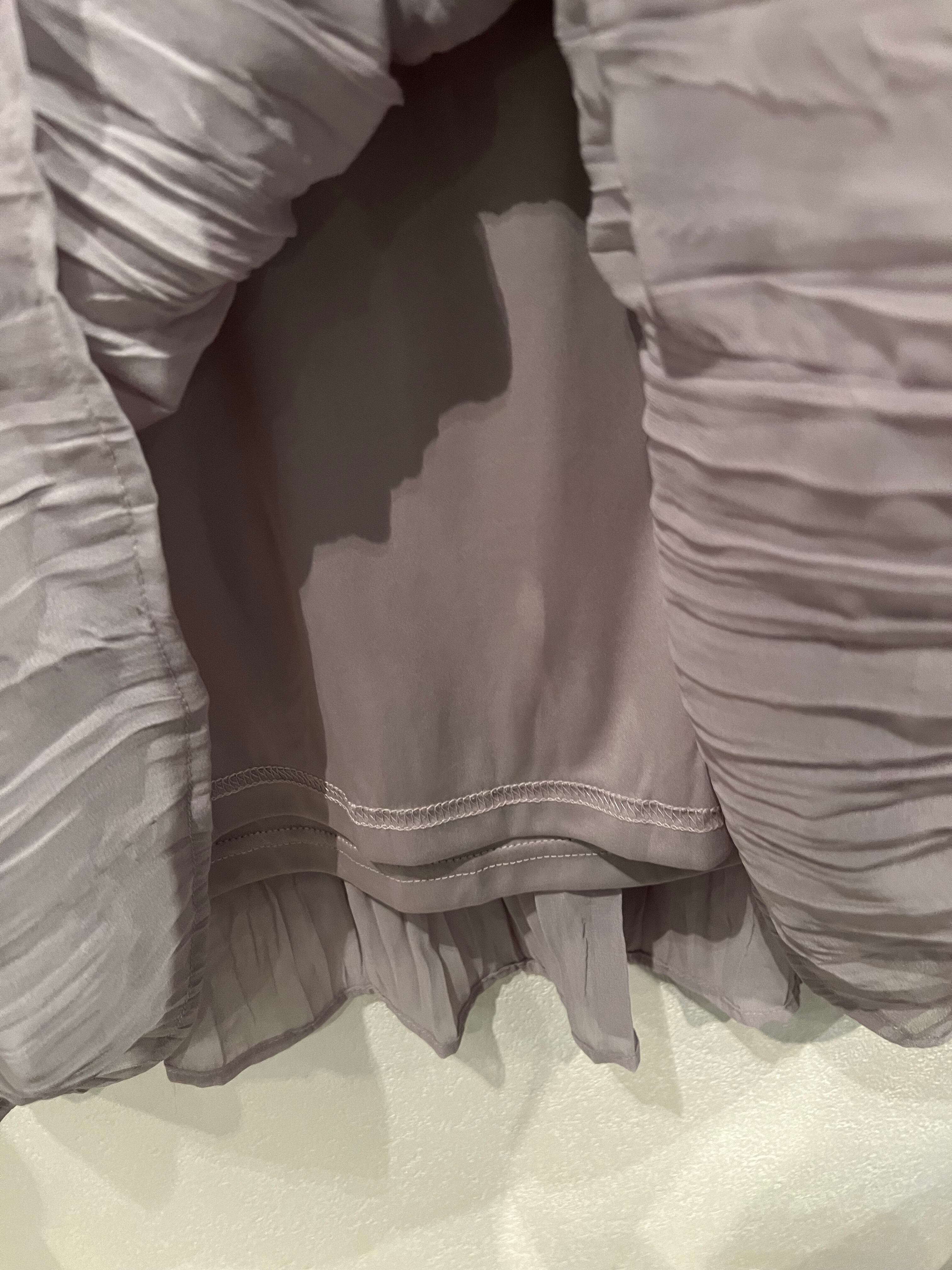 大切なお知らせです。サイズに関しましては、実際の商品と多少の誤差が生じる場合がございますので、予めご了承ください。また、モニターやディスプレイの設定により、色味が異なって見えることがございます。あらかじめご了承くださいませ。どうぞ、素敵な一日に彩りを添えるシフォンプリーツ風ワンピースをお楽しみください。
